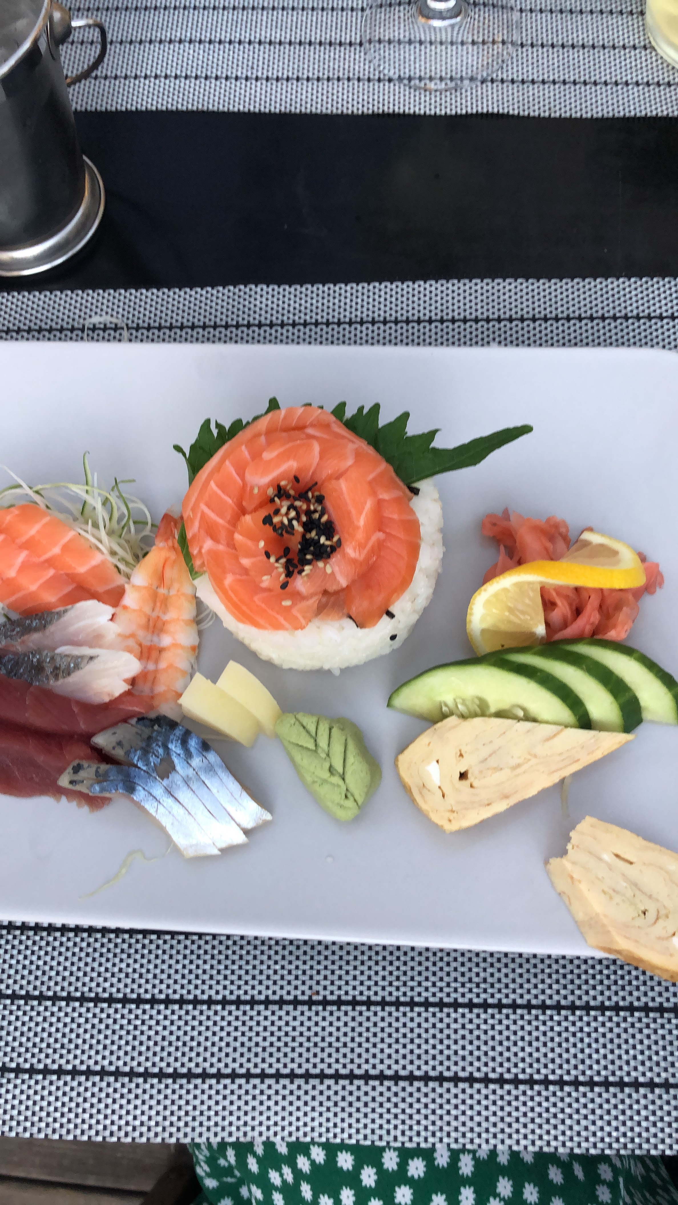 Accueil et serveurs sympa , l'emplacement est calme, pas de bruit en extérieur. sushis trop bon. Je recommande , tout est frais.