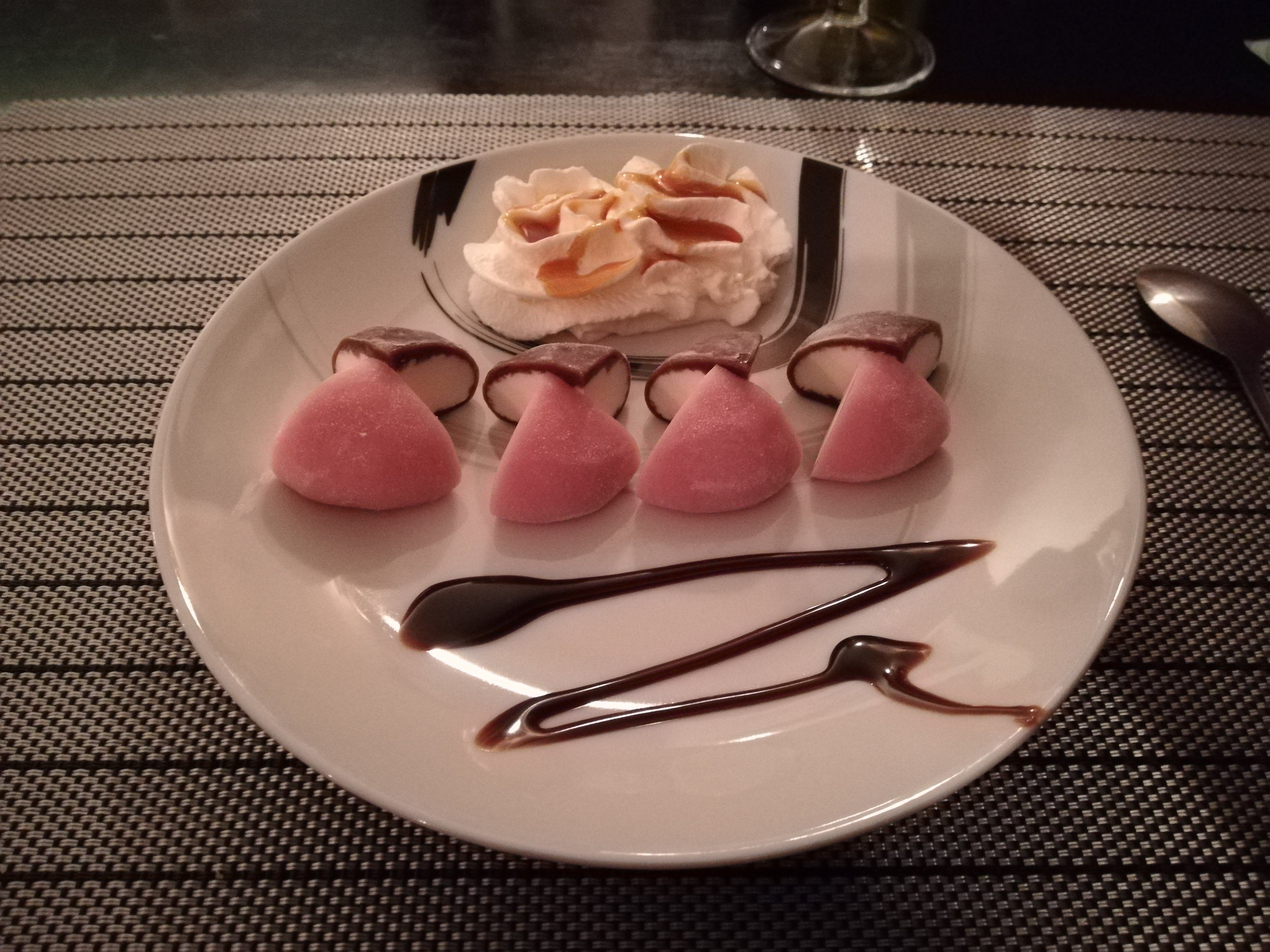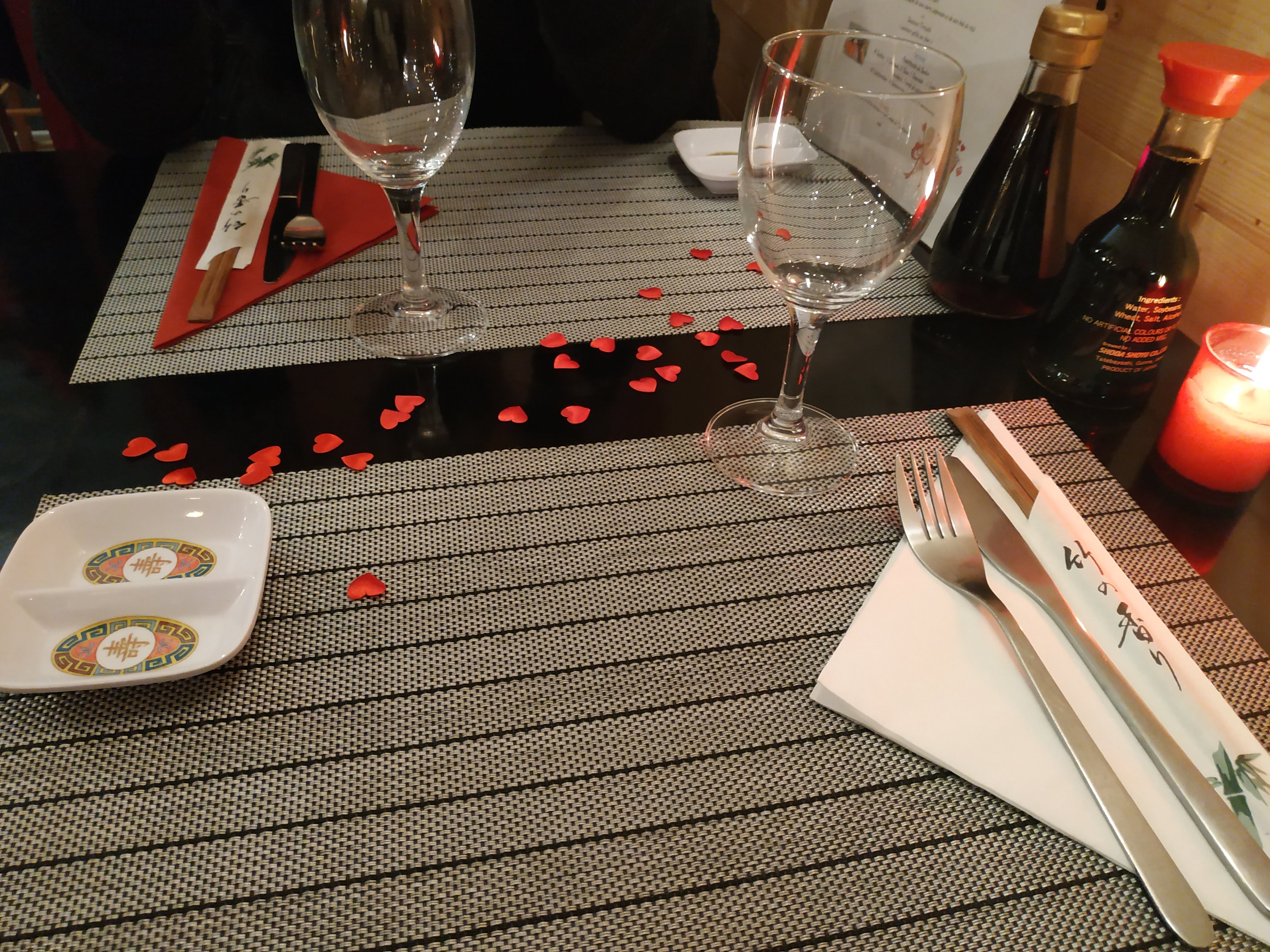 Pour 2 personnes nous avons mangé samedi soir pour 50€ : - 2 Vins de prune (toujours aussi bon mais un peu noyé dans les glaçons) - 2 assortiment de sushi maki (parfait) - un gâteau Nutella (pas extraordinaire, je ne sans pas suffisamment le Nutella et les biscuits ne sont pas suffisamment imbibé) et un tiramissu (sublime) Pour résumer je recommande ce restaurant pour sa cuisine asiatique. :-) Bon appétit !