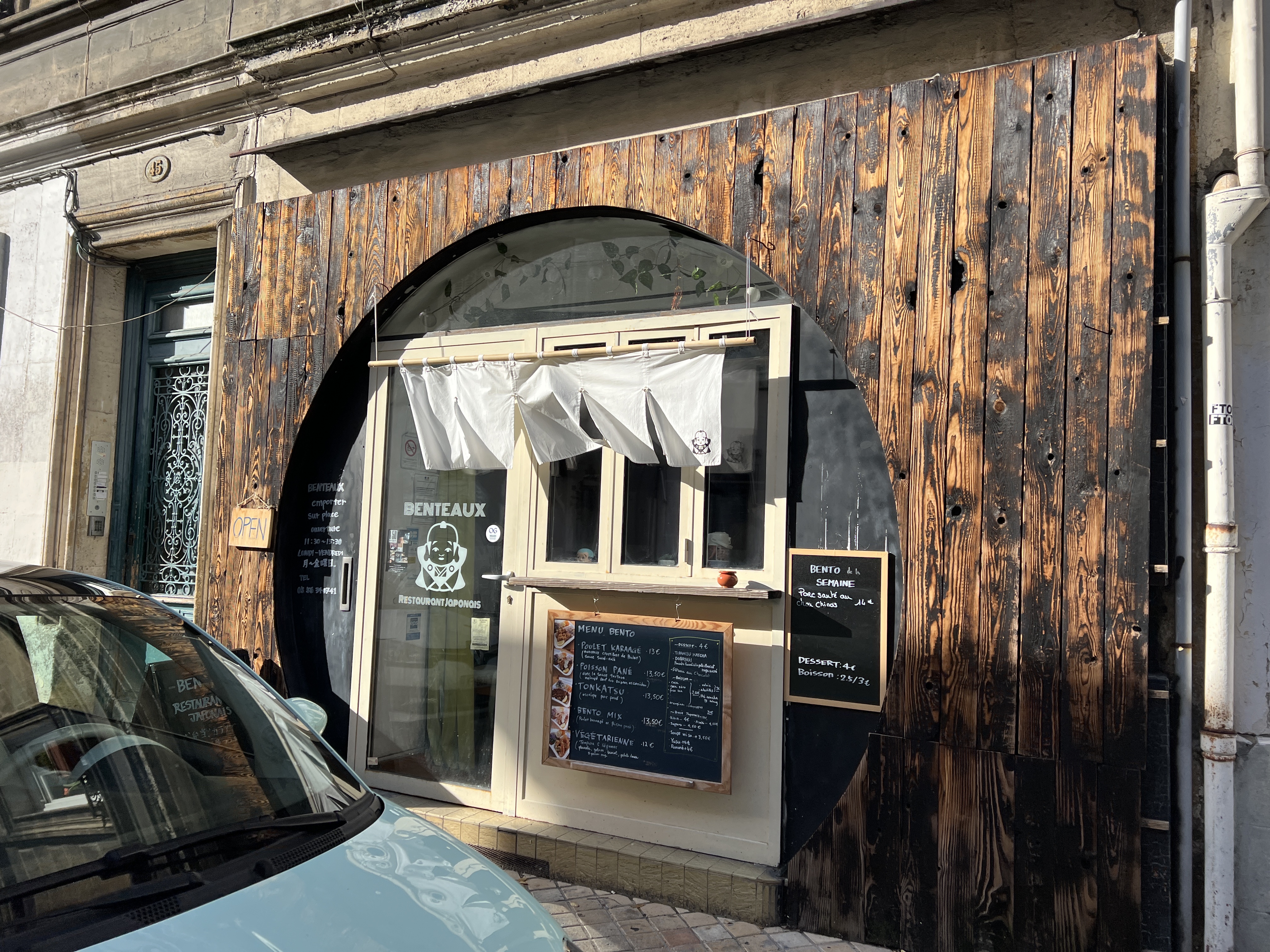 Mon amie et moi-même avons eu le plaisir de partager un déjeuner réalisé par vos soins. Votre poisson pané et ce qui l'accompagnait était tout simplement délicieux. Le Benteaux est véritablement une escale Japonaise à Bordeaux. Le lieu est agréable et accueillant, on s'y sent de suite à l'aise. La cuisine est artisanale, faite devant vous. Les plats sont copieux et pleins de saveurs. En regard du contexte sanitaire du moment, je précise que vous pouvez les emporter. Tarifs très abordables.