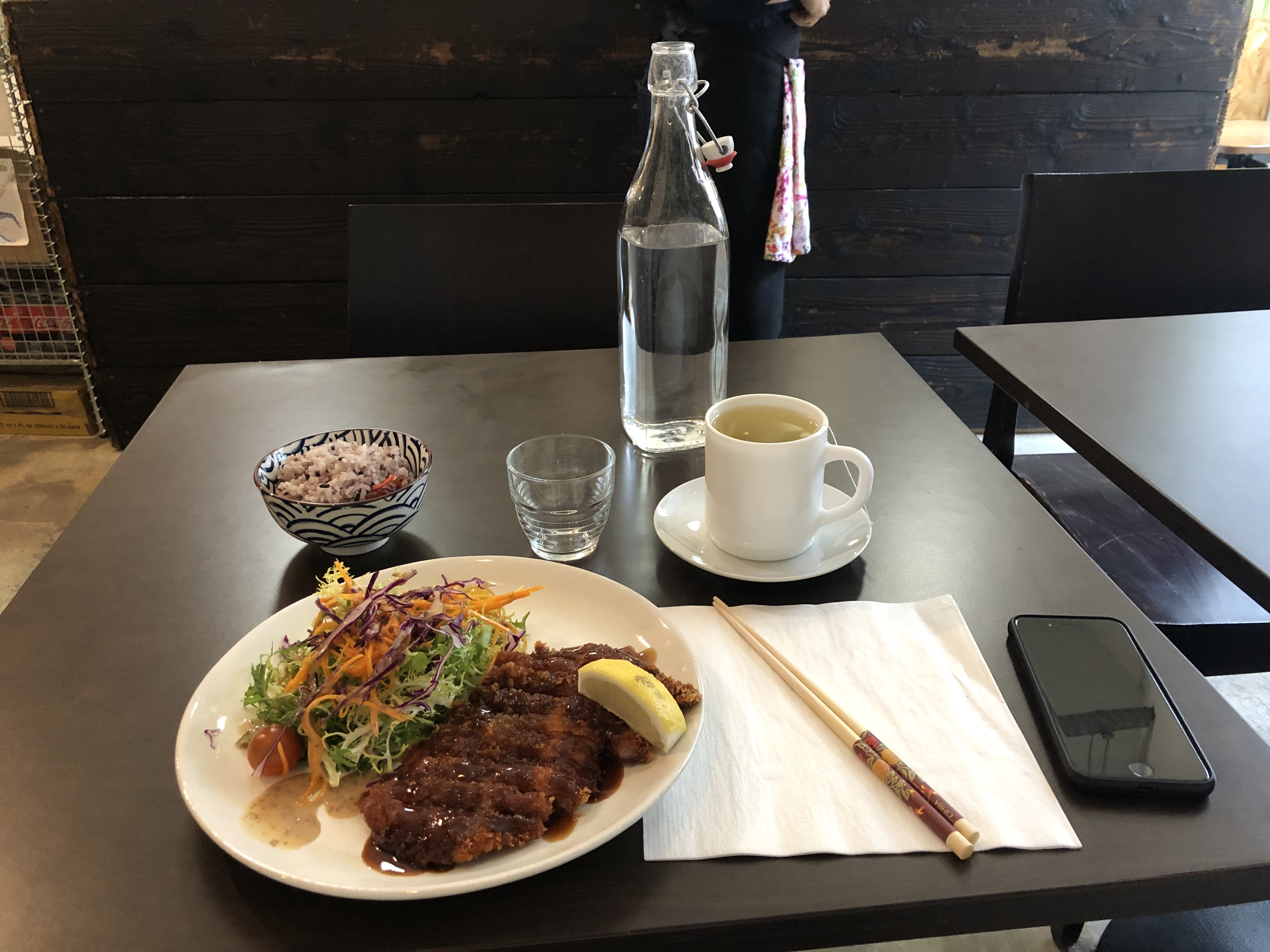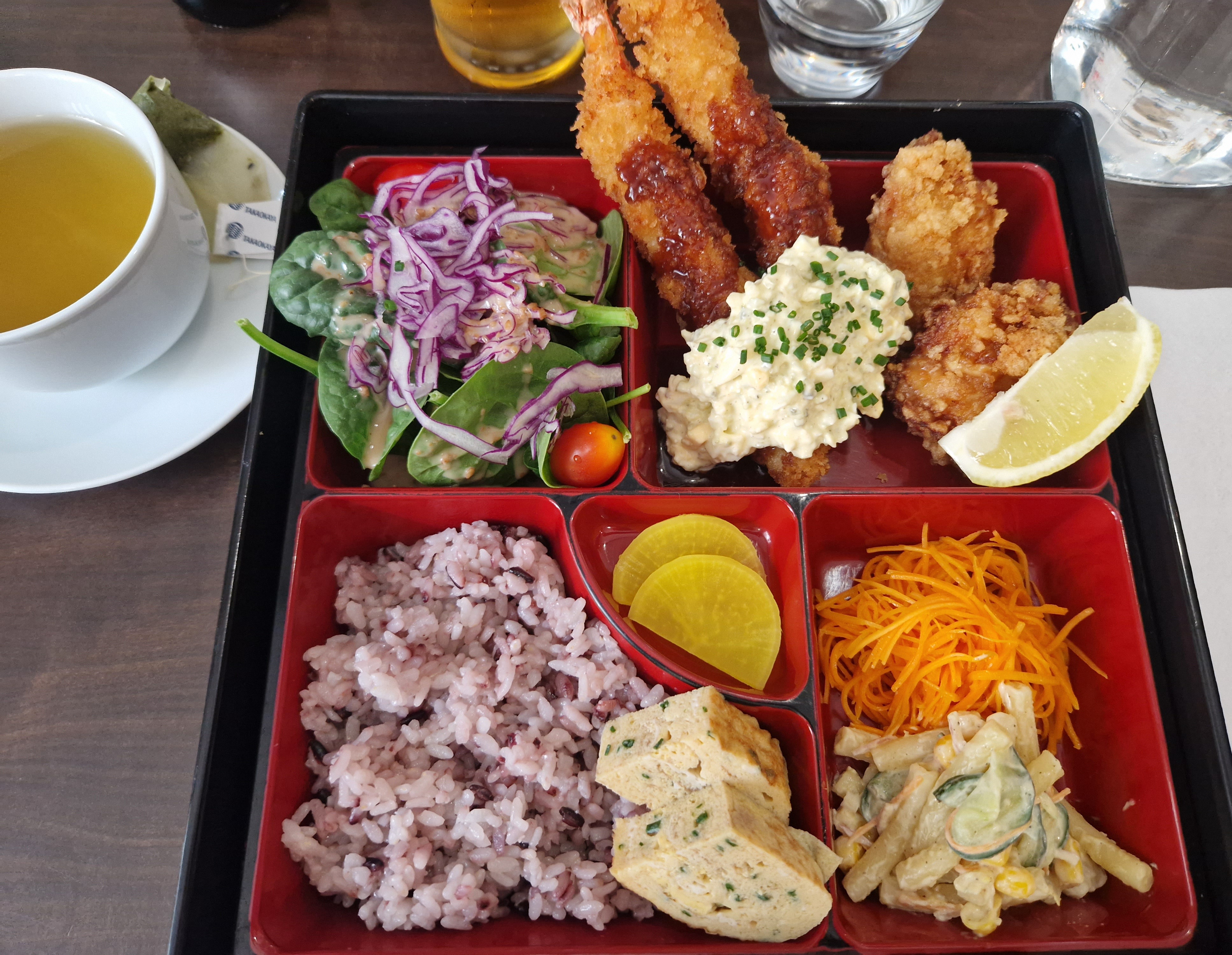 Un bento copieux et savoureux, l’accueil chaleureux ! J’ai adoré le thé d’orge à volonté.