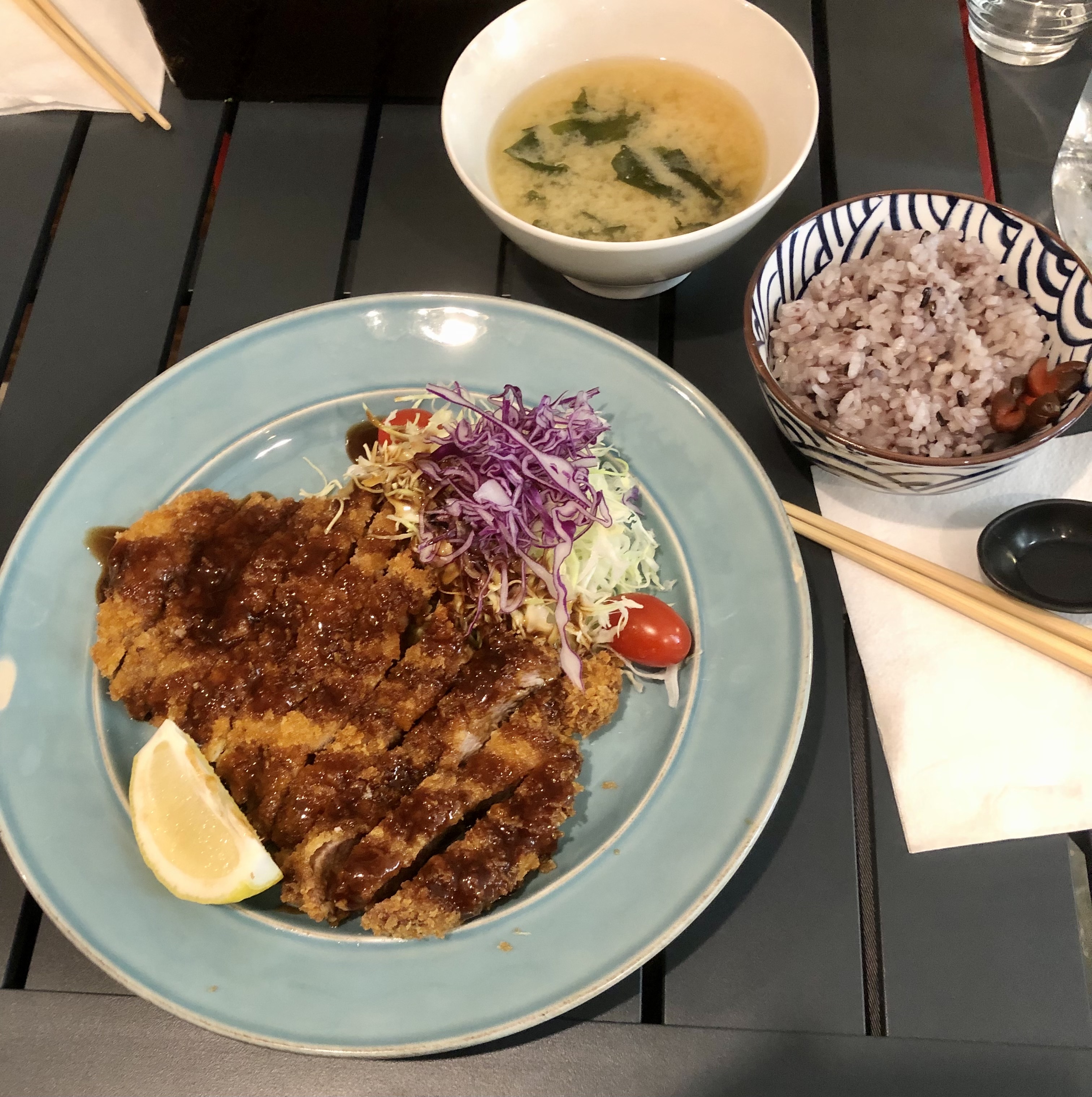 Fantastiques katsu et tempura servis avec de délicieux plats d'accompagnement, préparés avec amour par un excellent chef japonais. Simple et impeccable ! Hautement recommandé.