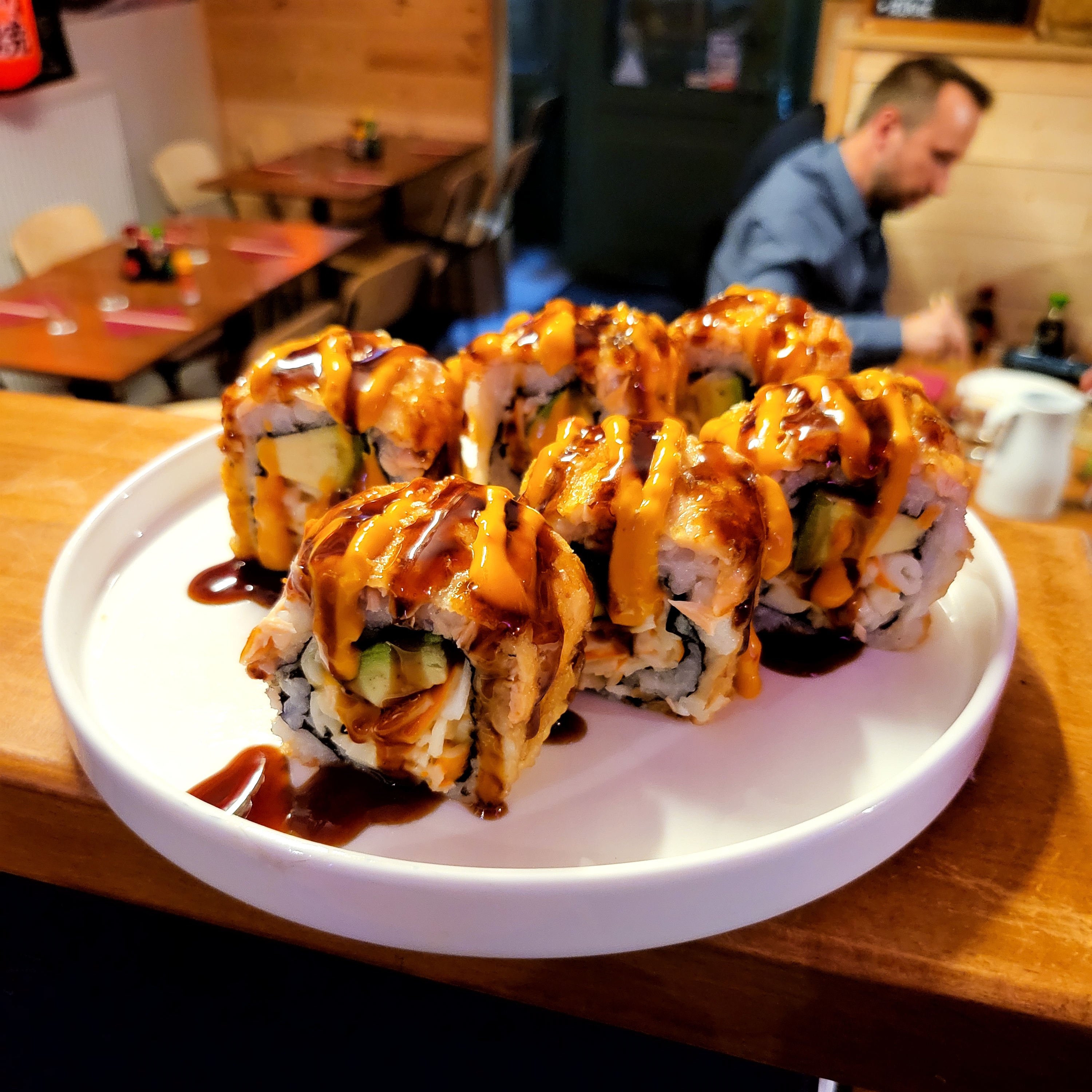 Il y a 2 ans, ça aurait été plus qu’un 5/5 de ma part ; les plats étaient atypiques et simplement excellents, okonomiyaki, spécialités panées de patate douce ou de riz, takoyaki, nouilles sautées etc. Aujourd’hui donc je revenais avec hâte à l’idée de remanger tout ça, et c’est vraiment déçu que je vois que le restaurant est simplement devenu un restaurant à sushi classique, pas très bons de plus, avec du riz sec et trop cuit et une soupe miso sans goût. La déco intérieure est adorable, par contre pour l’extérieur, la moitié des tables a droit à des chaises confortables et l’autre à des tabourets raides comme de la pierre… Vraiment pas agréable pour les personnes à mobilité réduite ou avec des problèmes de dos par exemple. Si le restaurant décide un jour de revenir à sa carte de base ça serait avec plaisir que je changerais ma note, mais là pour le prix une chaîne de fast food de sushi aurait été plus rentable/rapide/comfortable.