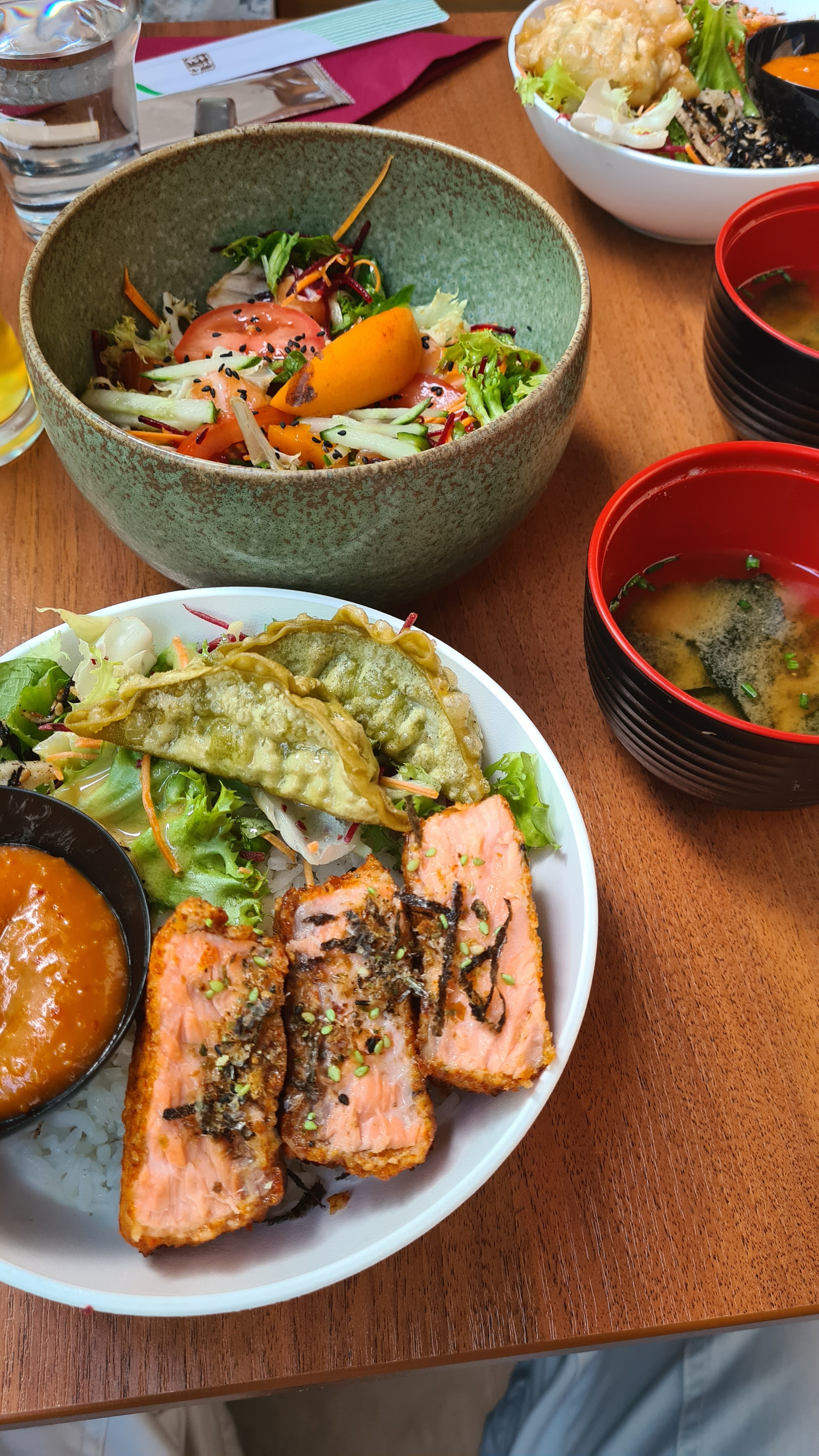 Accueil sympathique, la terrasse est super agréable. La décoration intérieur est bien mais paraissait plus impressionnante. Globalement c’est bon, les gyozas par exemple sont fait maison et délicieux. Par contre les sushis étaient moins bon je trouve. Le curry japonais est pas mal mais pas excellent.
