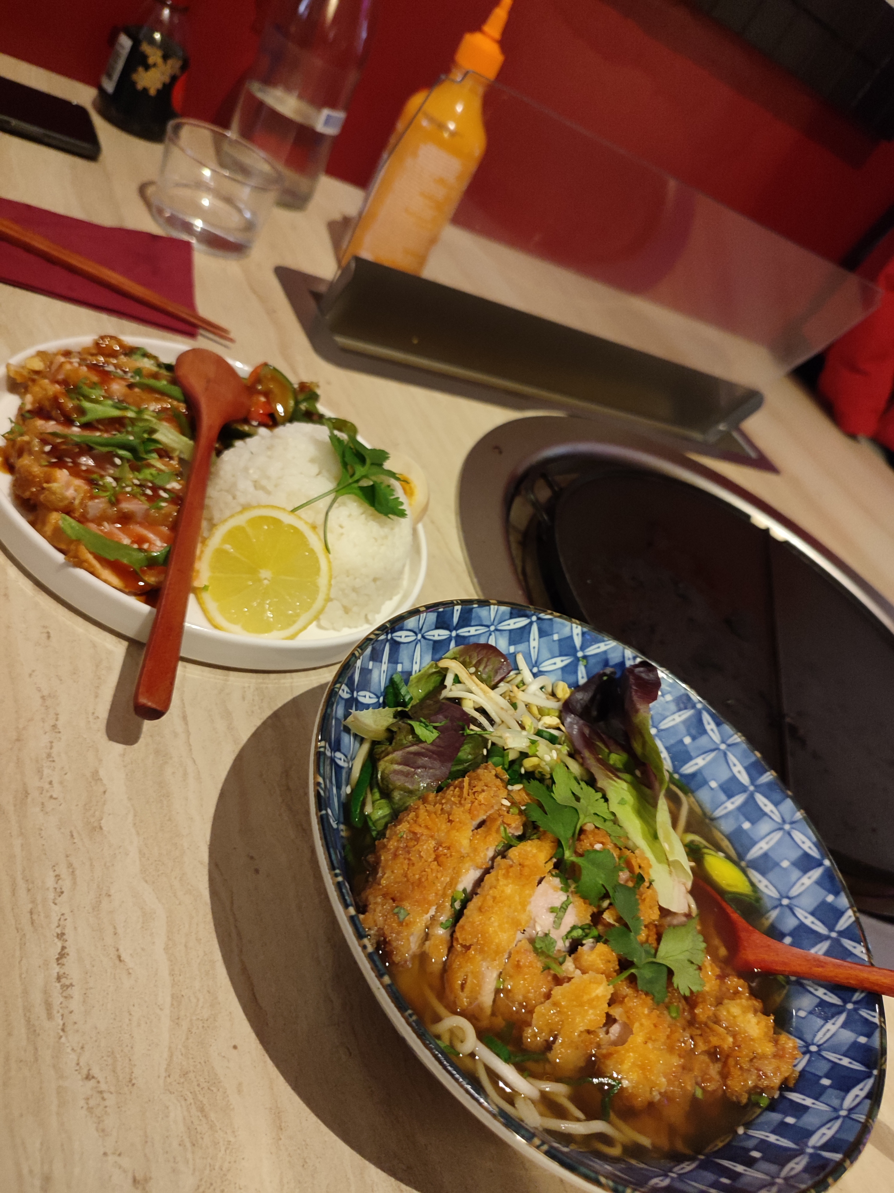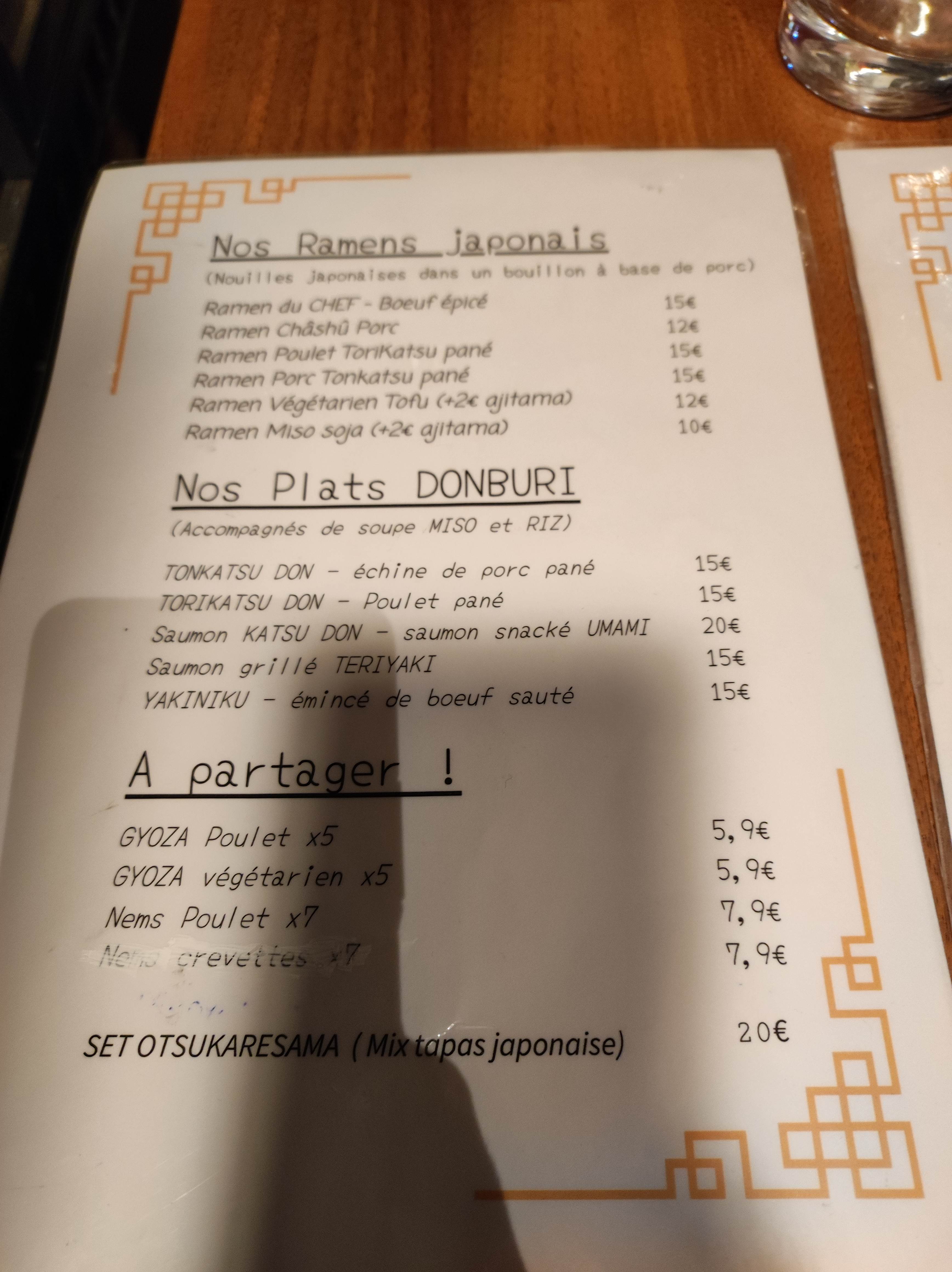 Très déçu par les ramens qui pour moi n’en sont pas du tout, bouillon sans goût,