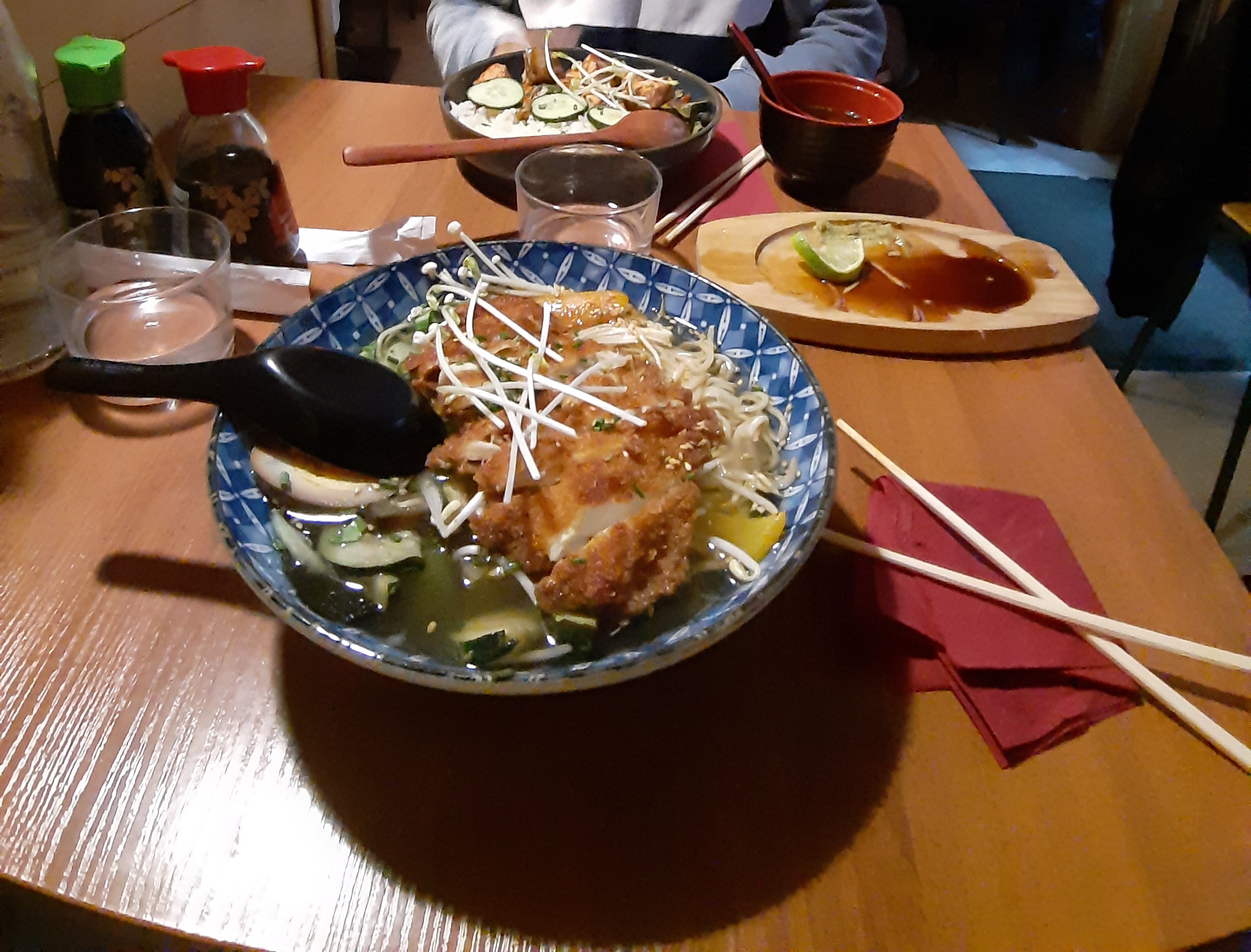 Très chouette deco pour ce restaurant japonais, on est dans l’ambiance recherchée et plutôt bon accueil. Les gyoza étaient vraiment bonne mais grosse déception avec les ramens vraiment fades.