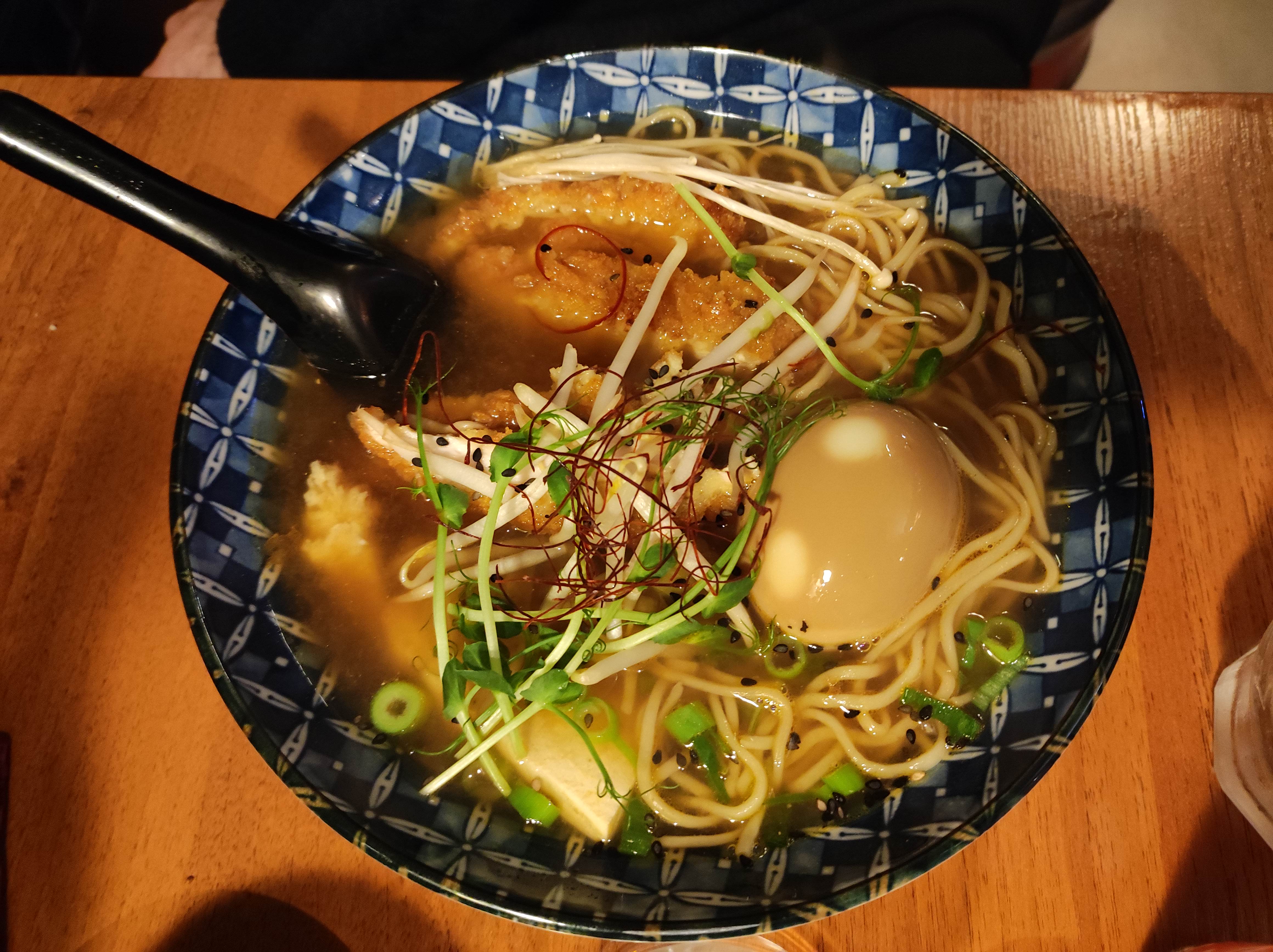 Plutôt déçue... j'apprécie l'effort, les nems aux crevettes étaient bon bien que gras (et la sauce soja n'est pas une sauce pour nem), le coca est très cher pour une canette en aluminium (une bouteille en verre aurait été appréciée comme dans beaucoup de restaurants), le verre à eau était sale malheureusement. Les ramen au poulet était très fade (sauf le poulet qui était vraiment bon), j'ai rajouté de la sauce soja pour essayer d'assaisonner et du coup j'avais de l'eau salée, c'est mieux que rien (mais tout de même 15 euros). Ceci dit, le personnel est très sympathique et accueillant ! Mais je ne reviendrais pas :/