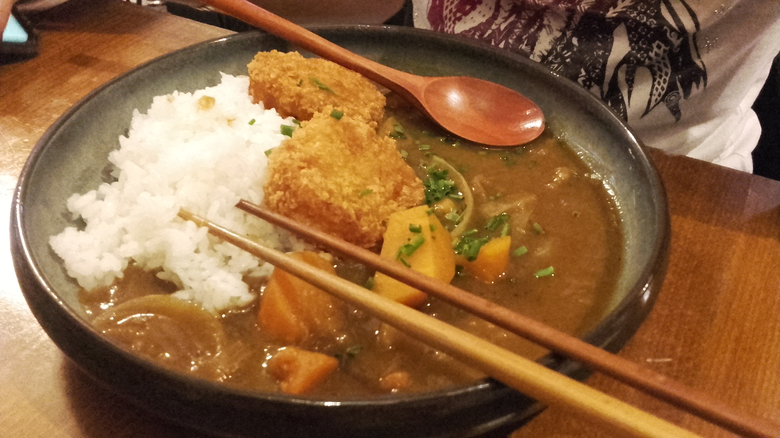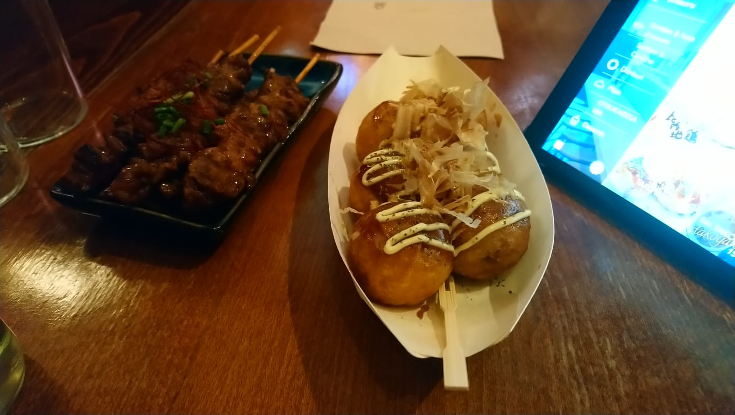 Concept sympa, personnel accueillant, commande sur tablettes, menu varié. Gyozas, Edamame, brioche vapeur, koloke de patates douces, takoyaki, tempura de crevettes au wasabi en entrée. Curry, donburi et yakisoba en plat. Bières japonaises, umeshu et saké en boissons. J’ai pour ma part testé les entrées, plutôt « average » dans l’ensemble. Les voisins avaient l’air ravis du curry en revanche !