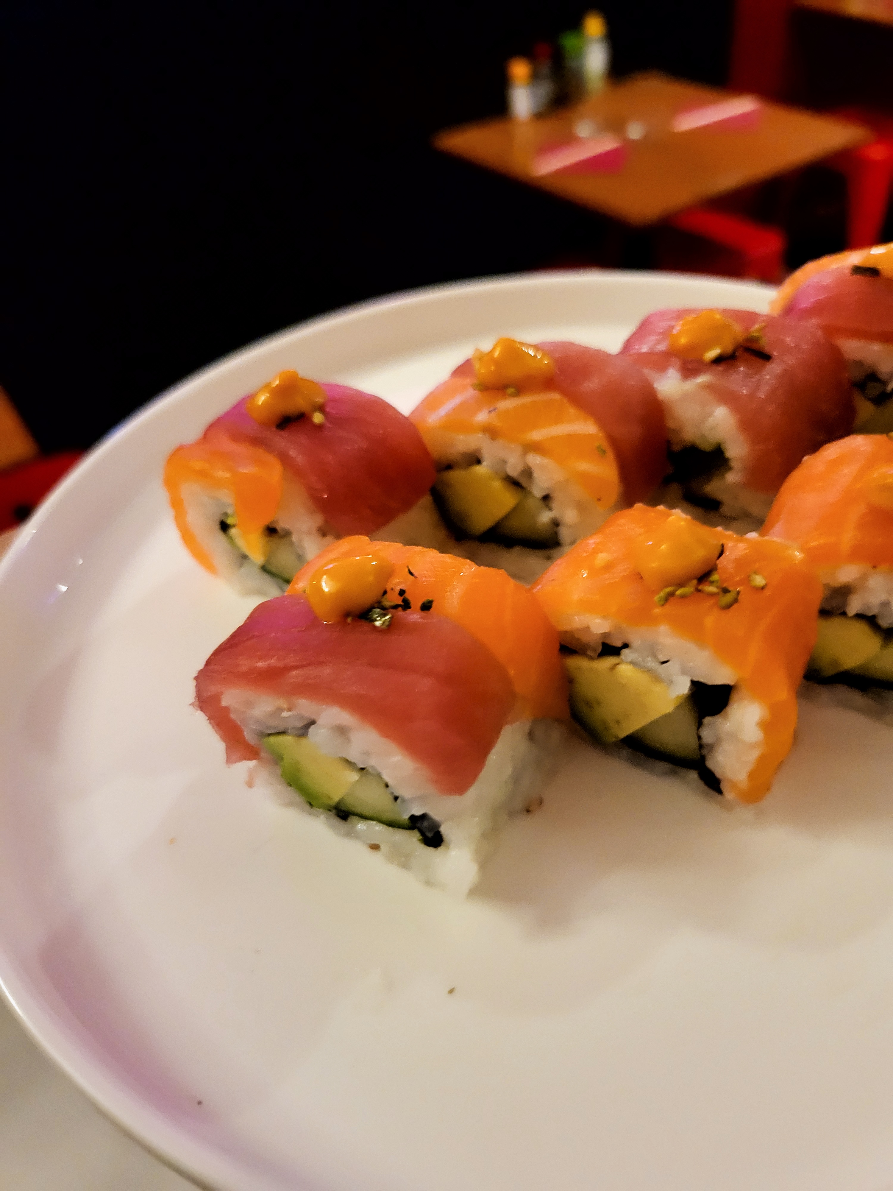 Je suis végétarien et je voulais essayer le donburi mais ils n'avaient pas d'option végétarienne au menu. Ils ont dit qu'ils pouvaient en faire un, et je m'attendais donc à ce qu'il contienne du tofu ou quelque chose du genre (tout comme leur option de ramen végétarien). J'ai donc été déçu lorsque mon plat est arrivé et c'était essentiellement l'option porc/saumon/poulet mais avec la viande retirée (je pouvais le dire d'après ce que les autres à ma table avaient commandé). En fait, le serveur qui l'a apporté a pensé que c'était une demi-portion. En plus de cela, le cocktail que j'avais commandé et qui en avait eu 27 avait un goût beaucoup trop fort et j'en avais le goût dans la bouche pendant des heures plus tard. J'ai probablement juste commandé les mauvaises choses car les autres avec qui j'étais ont apprécié leur repas, mais c'est triste de dire que j'ai été un peu déçu.