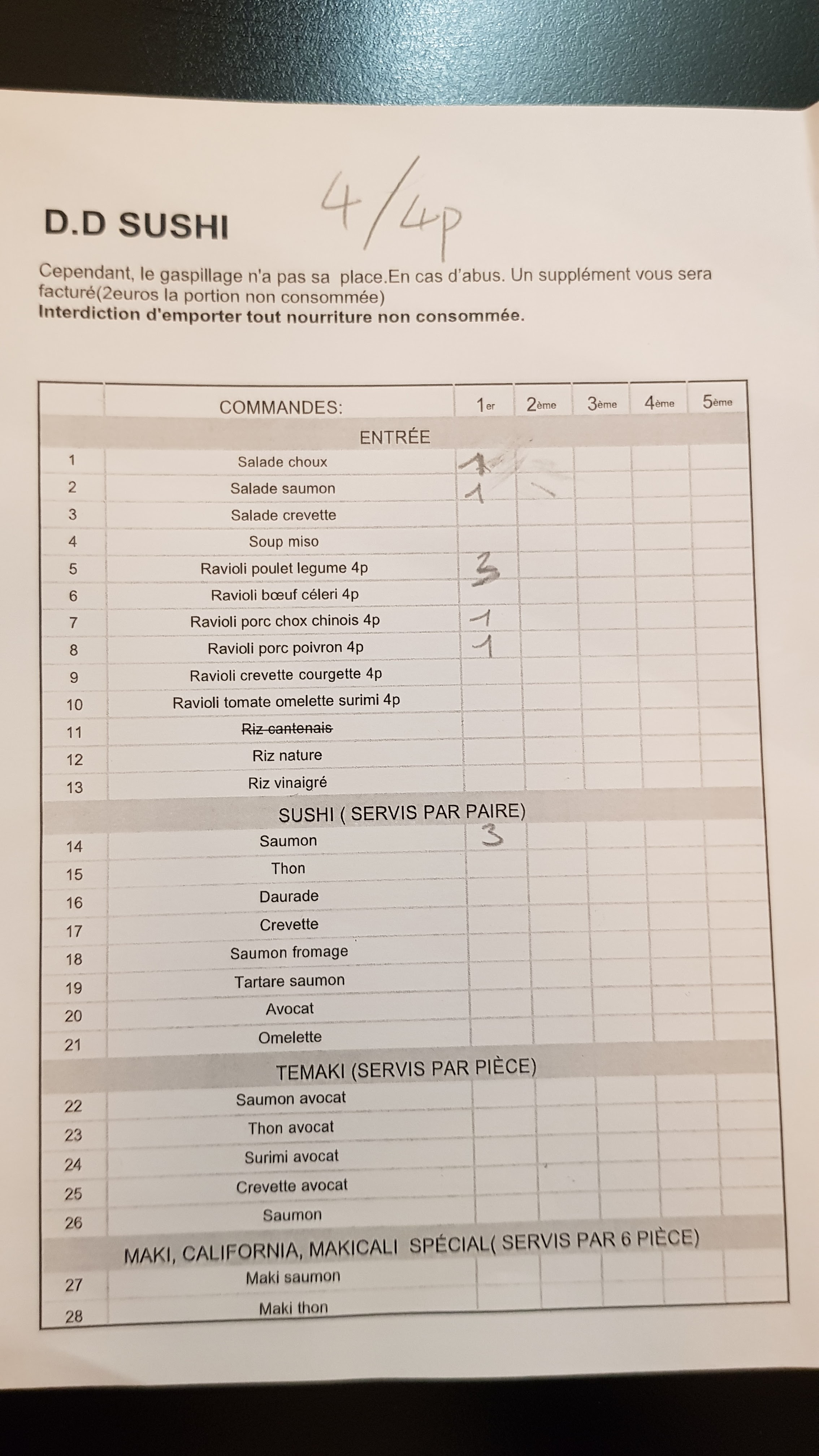 J'aimerai bien comprendre l'engouement autour de DD sushi...C'est pas cher donc c'est bon, c'est ça? Nous sommes arrivés à 20h sur place et on nous a (ENFIN) servi à 22h !! Entre temps, la serveuse désagréable qui revient nous dire vous voulez toujours manger ici? Pourquoi cette question ? Et bien tout simplement car on ne veut pas tous manger la formule à volonté et qu'elle nous a clairement et lourdement été imposée !! (C'est écrit nul part que la formule est obligatoire pour une table de 2, 3 ou 4 personnes même si un de nous la désir et pas l'autre) Bref, on prend tout de même le risque de commander en se remémorant les avis positifs et là...SUSHIS PAS FRAIS ! Sushis ou plutôt: tonne de riz CHAUD avec tranche de poisson métro ultra fine. On nous fait comprendre que le à volonté est limité lol et on traîne à nous servir pour que le à volonté soit réduit au max ! De plus, manger en pleine chaleur à côté d'une table sale (qui durant 3h n'a pas été débarrassée) c'est juste inadmissible ! Bref ces sushis CHINOIS/VIETNAMIENS ont de positif que leurs prix ! Quoique, non finalement au vu du service désagréable (avec une des serveuses ne parlant même pas suffisamment français pour nous comprendre) et de la qualité des aliments, rien de positif ici. Pire restaurant de sushis à ce jour ! Je ne parle même pas de la proximité avec son voisin de table haha Triste de voir que beaucoup ignorent à quoi ressemble un vrai bon sushi/maki. Photo de la table sale à 22h30 (où on nous a juste servis les entrées après 2h d'attente) voyait la photo de la devanture prouve bien qu'à notre arrivée il faisait encore jour
