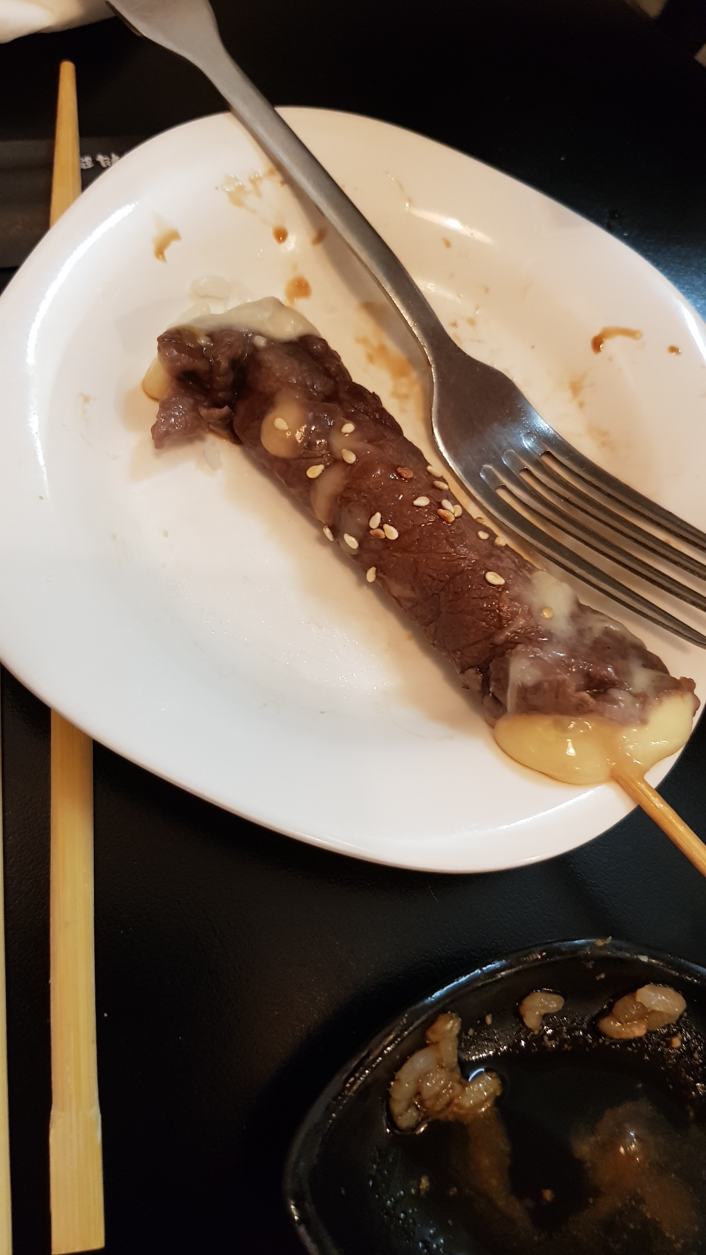 L'idée est sympa mais c'est cher! Surtout que les brochettes ne sont même pas incluses dans le prix du menu à volonté... Niveau qualité, j'ai eu de la chance de ne pas tomber malade. Le thon avait un goût amer et était immangeable. Les raviolis sont vraiment bof bof avec un arrière goût étrange. Au niveau du service, personne ne nous a adressé le moindre mot. On nous a balancé la fiche et repris. Pas un bonjour, un bon appétit. Rien!