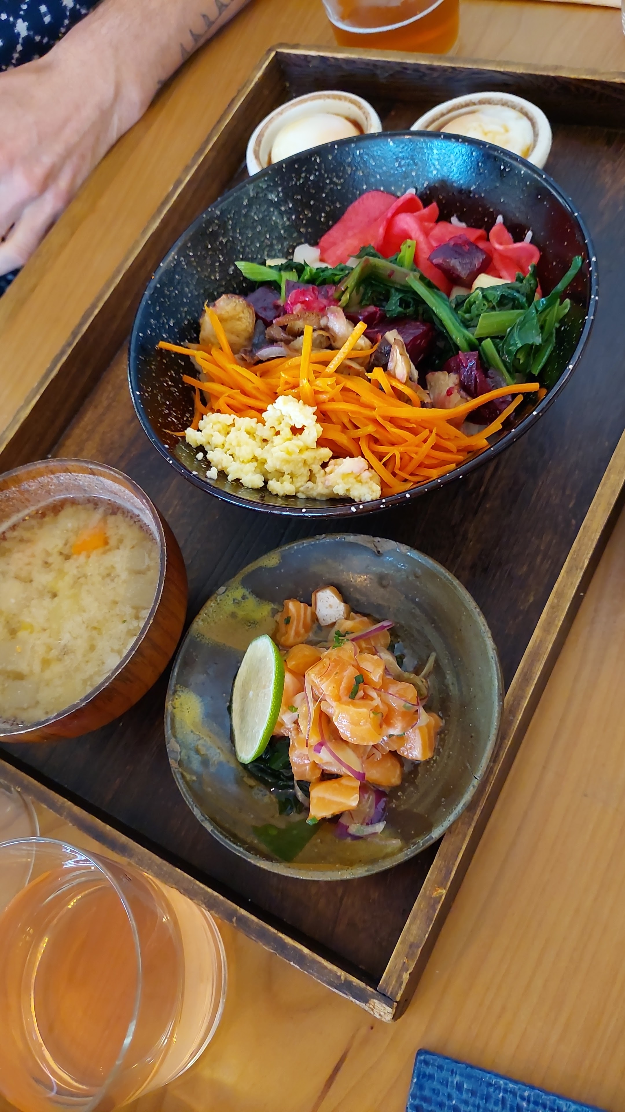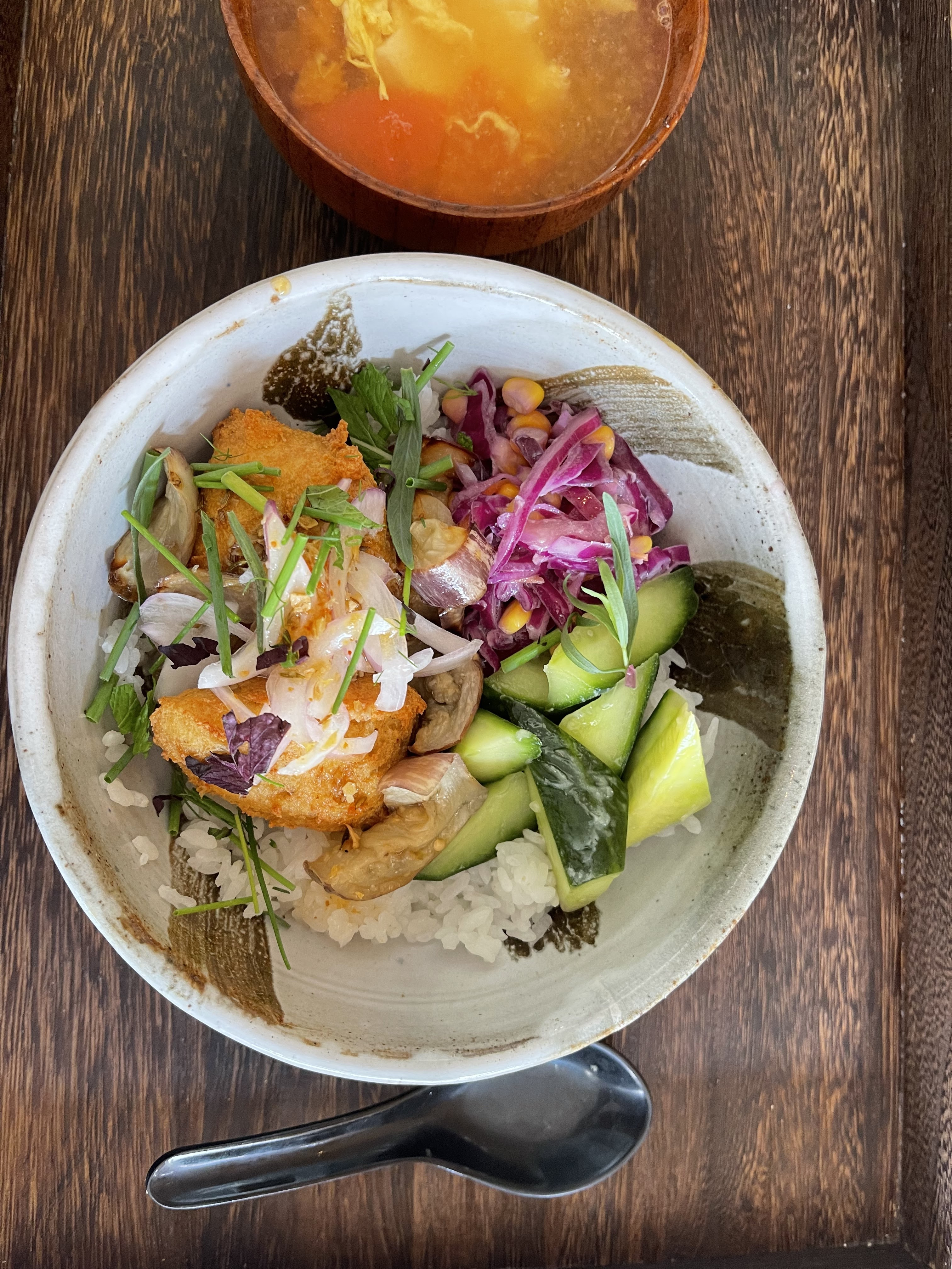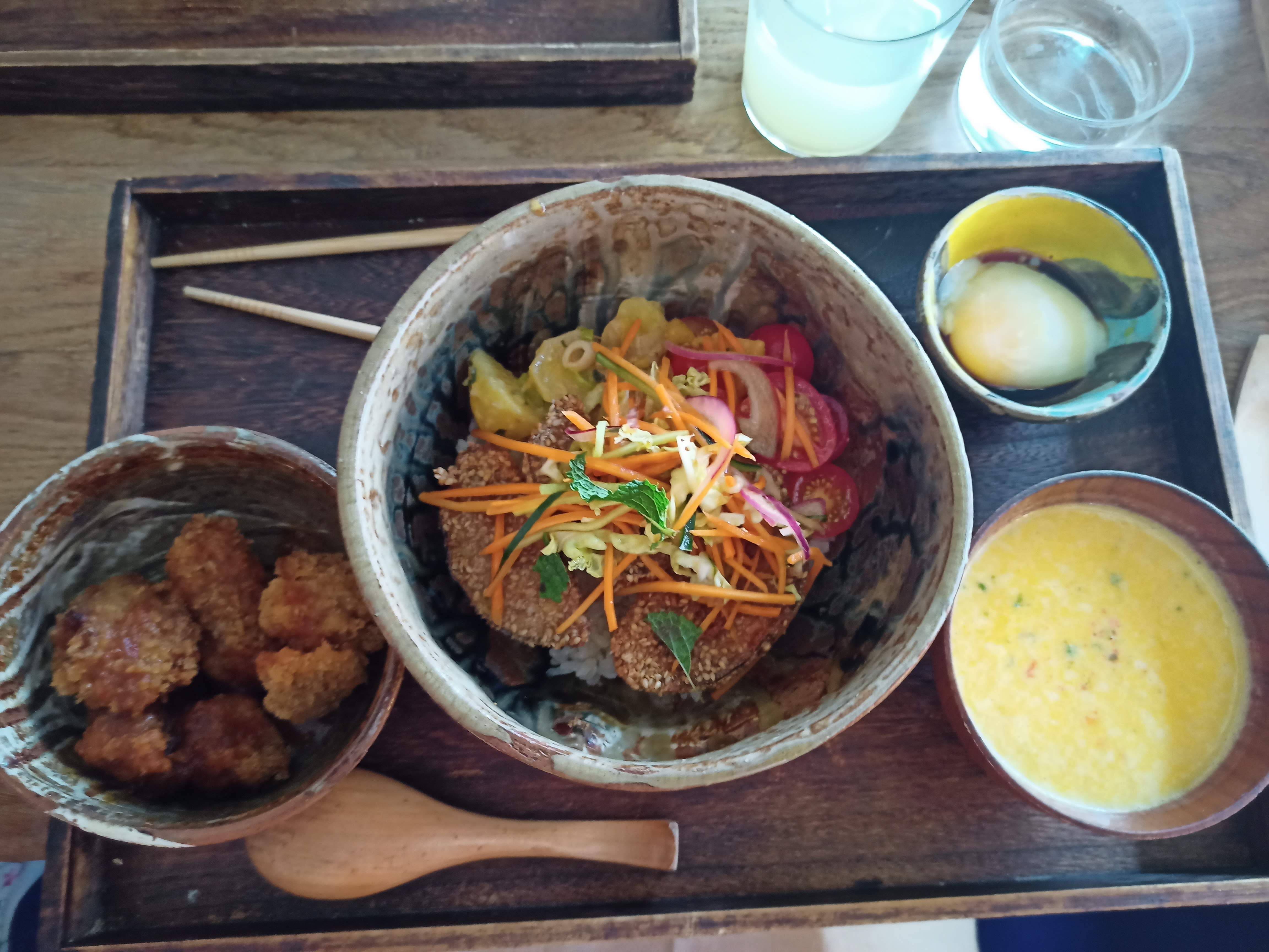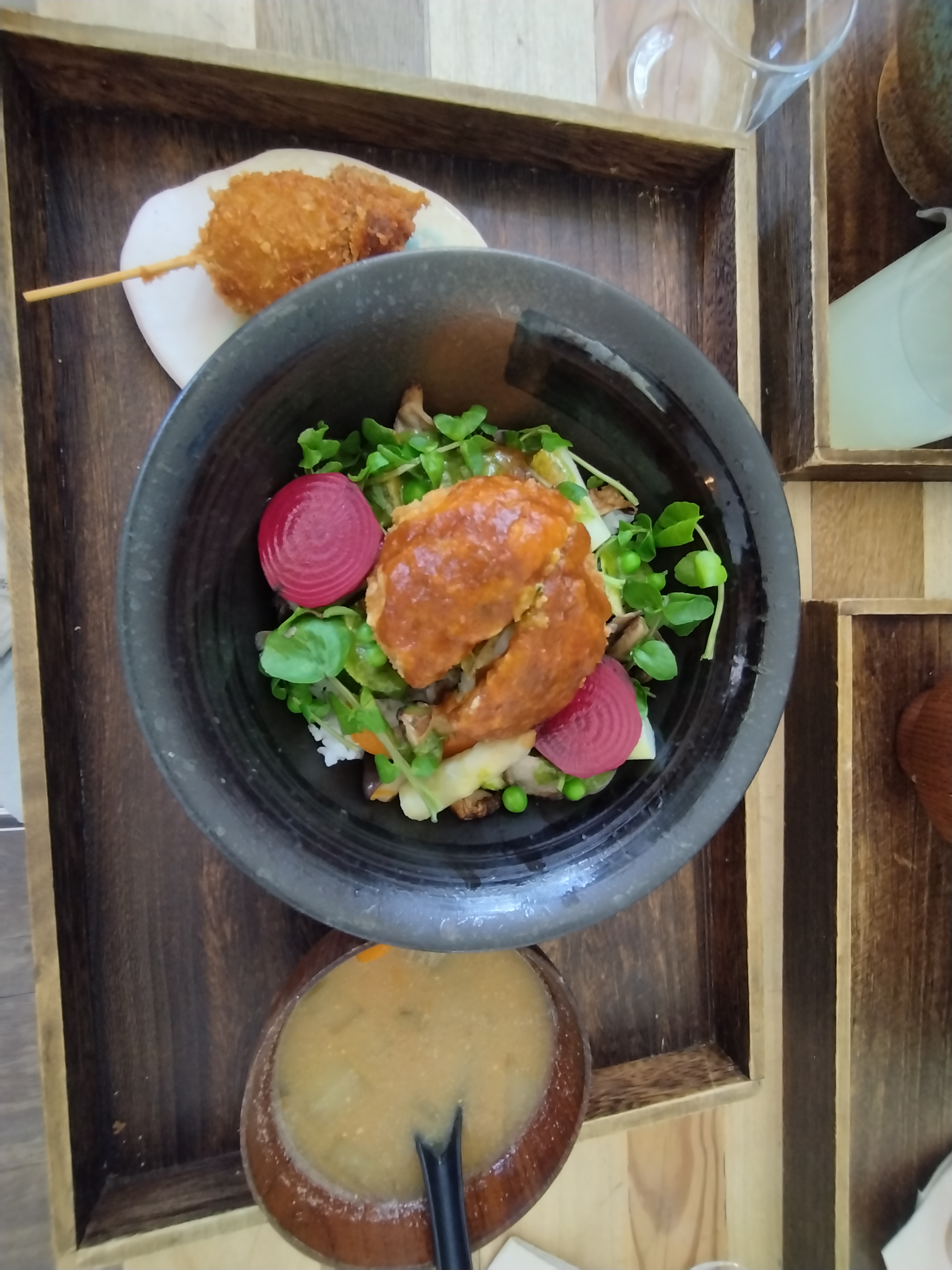 Un super lieu avec une cuisine japonaise fraîche et des légumes de saison sous plusieurs formes et préparation un délice Le donburi était très bon et assez copieux on avait plus de place pour le dessert Un petit bémol le marcha latte qui était décevant et qui avait un goût d’eau amer dommage mais le but c’était de goûter la cuisine et la zero déception