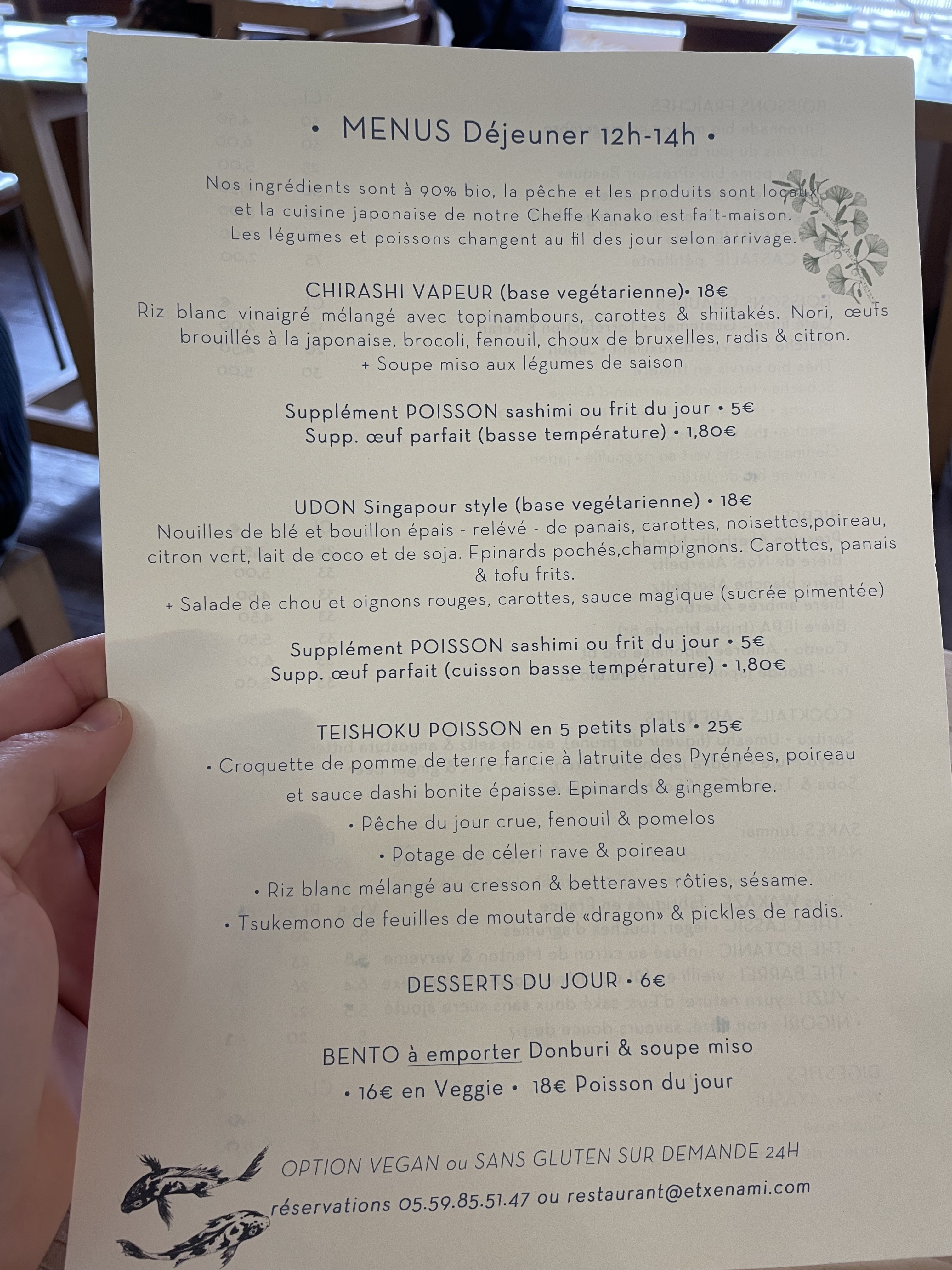 Etxe Nami est une adresse à tester à Saint Jean ! Les plats sont végétariens mais il est possible de rajouter de la viande ou du poisson en supplément, la carte s’adapte à tous ! Les saveurs sont très intéressantes et les légumes sont parfaitement cuits. Je recommande 😊
