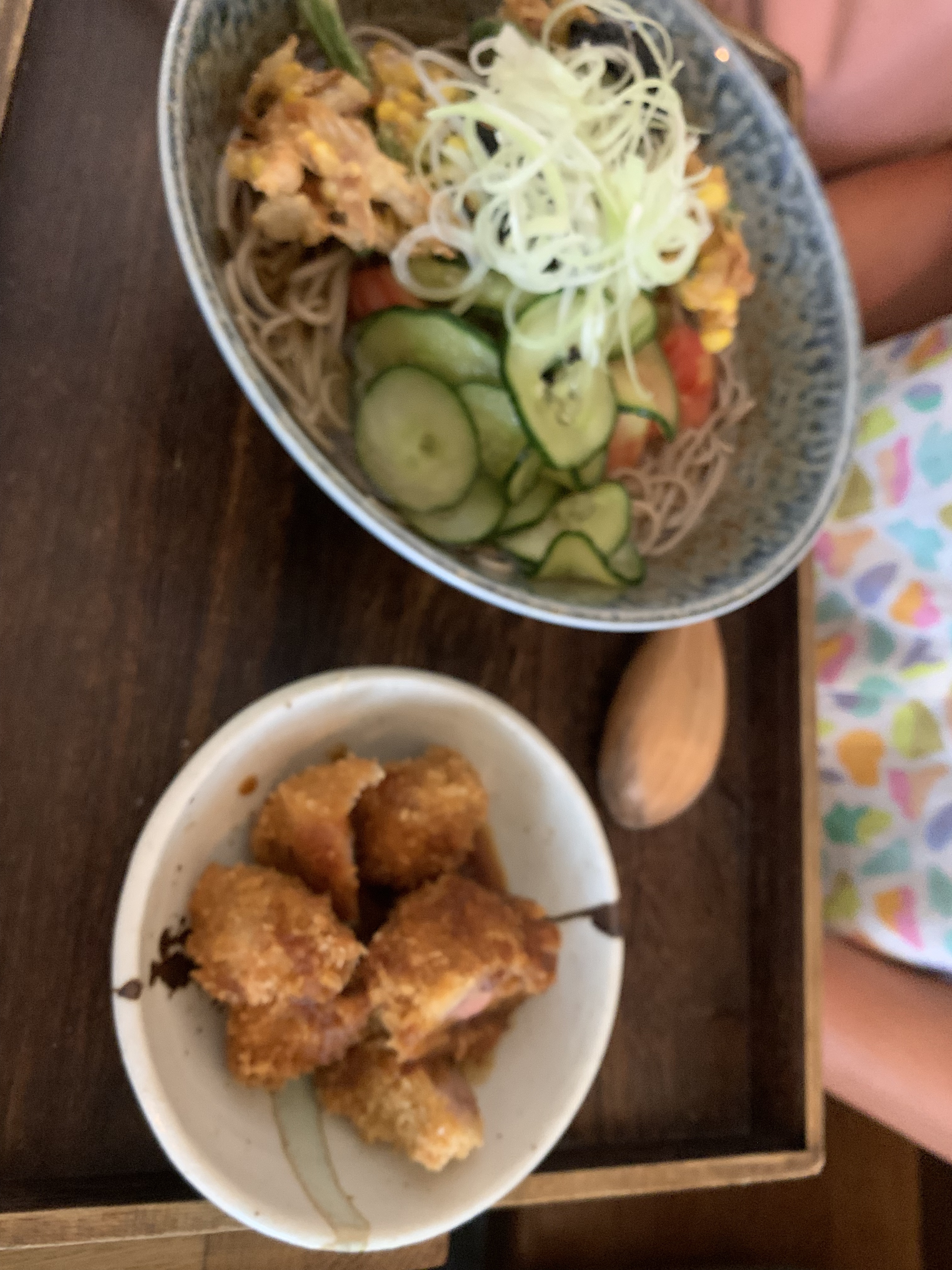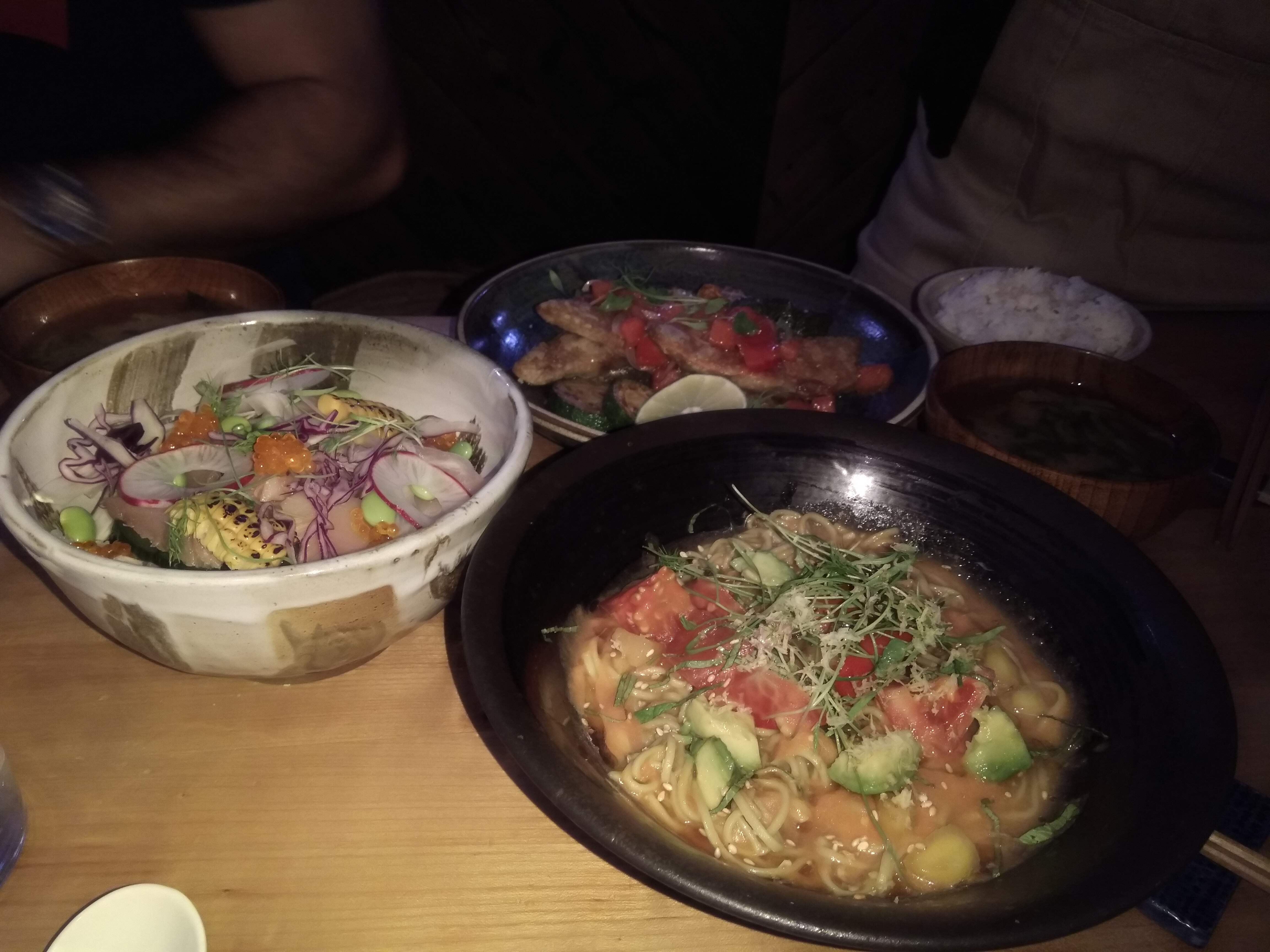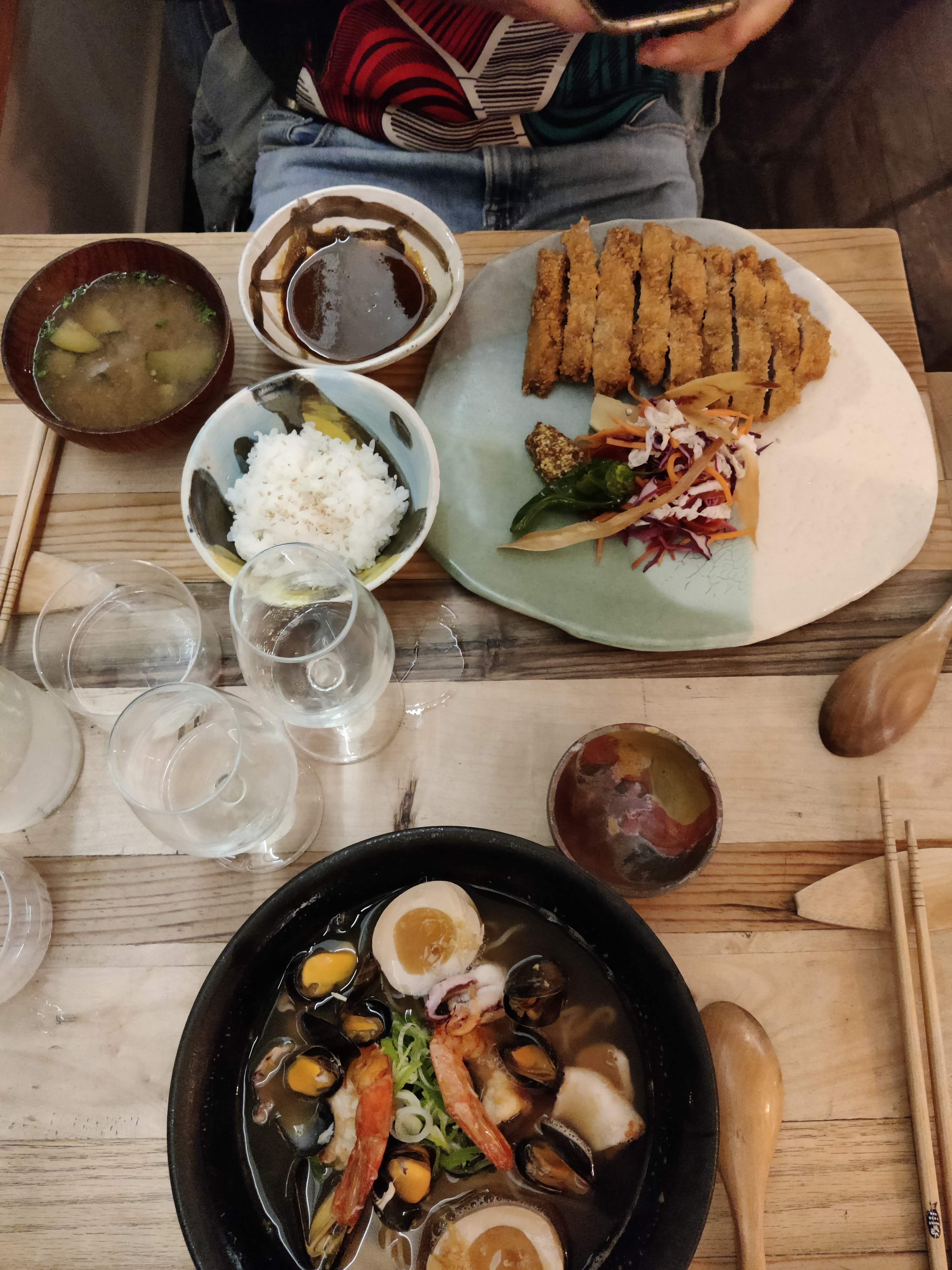 On a pris le poulet tempura (extraordinaire!) et la truite. Les gens sont sympa et l’ambiance cool. Recommendé!