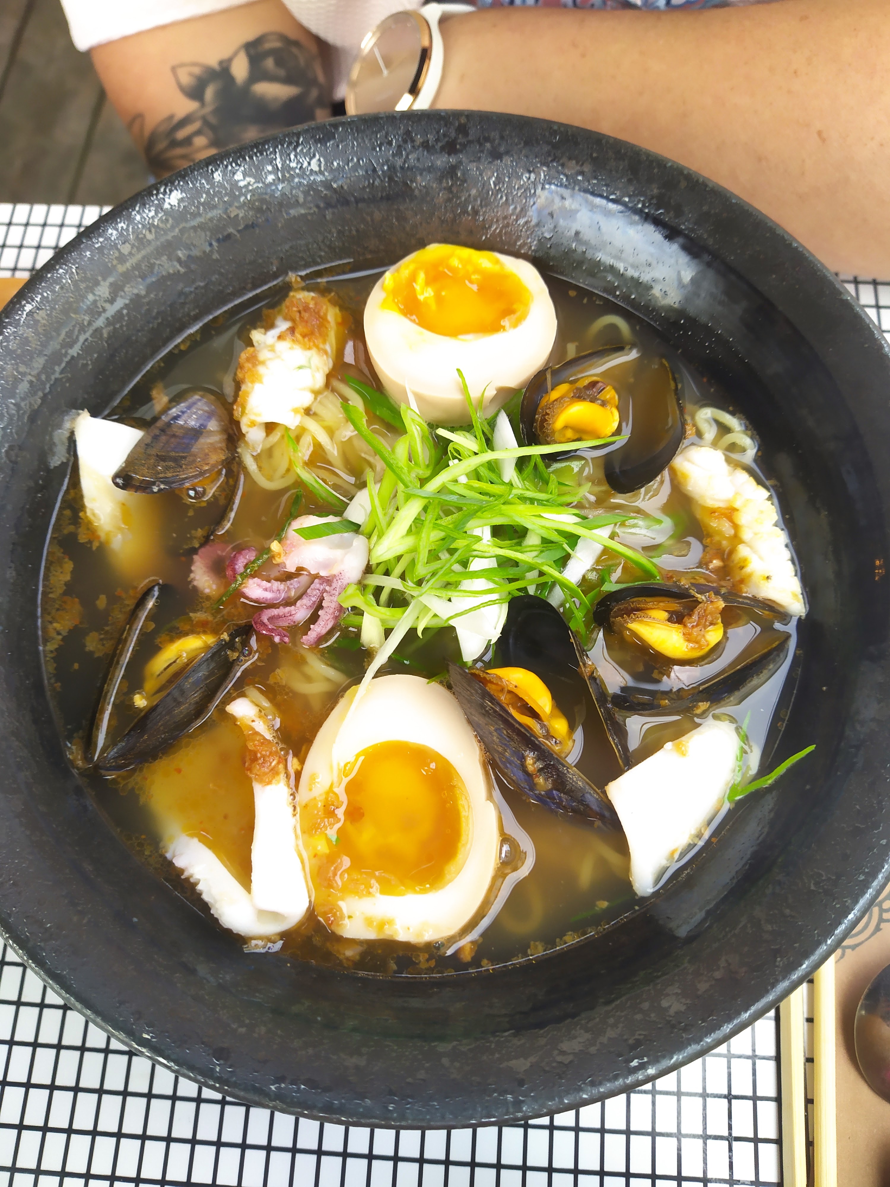 Des plats raffinés et goûteux Etxe Nami se différencie des habituels restaurants japonais par cette diversité de plats et l’ajout d’ingrédients du pays basque. Ce ramen poisson avec du merlu et de la sèche grillés accompagné de moules vapeur, un régal !
