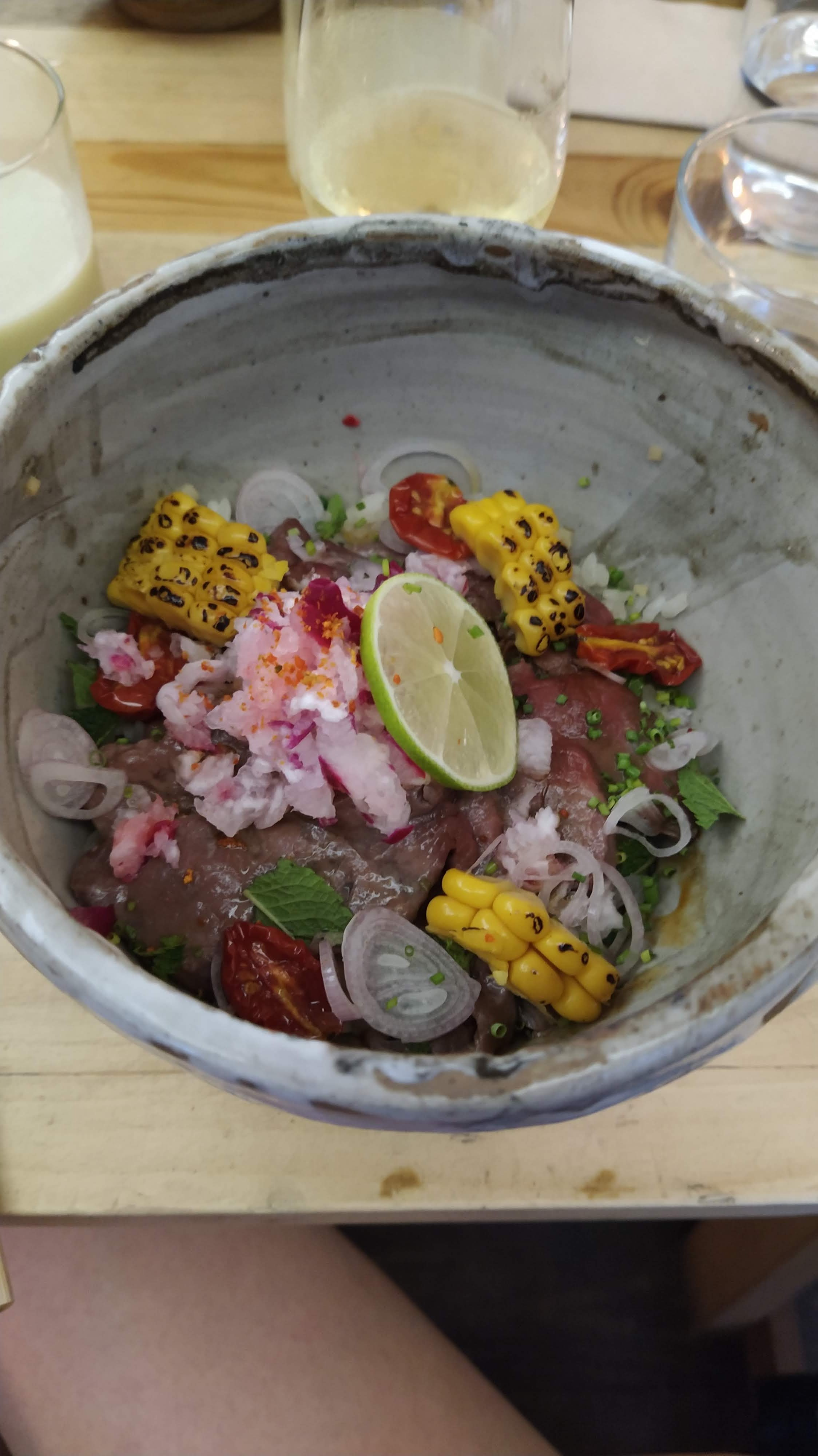 Une belle idée (cuisine fusion basque japonaise) une belle salle mais des plats un peu trop compliqués. Beaucoup de saveurs se mélangent, ne s’équilibrant pas forcément. Service un peu froid lors de notre venue