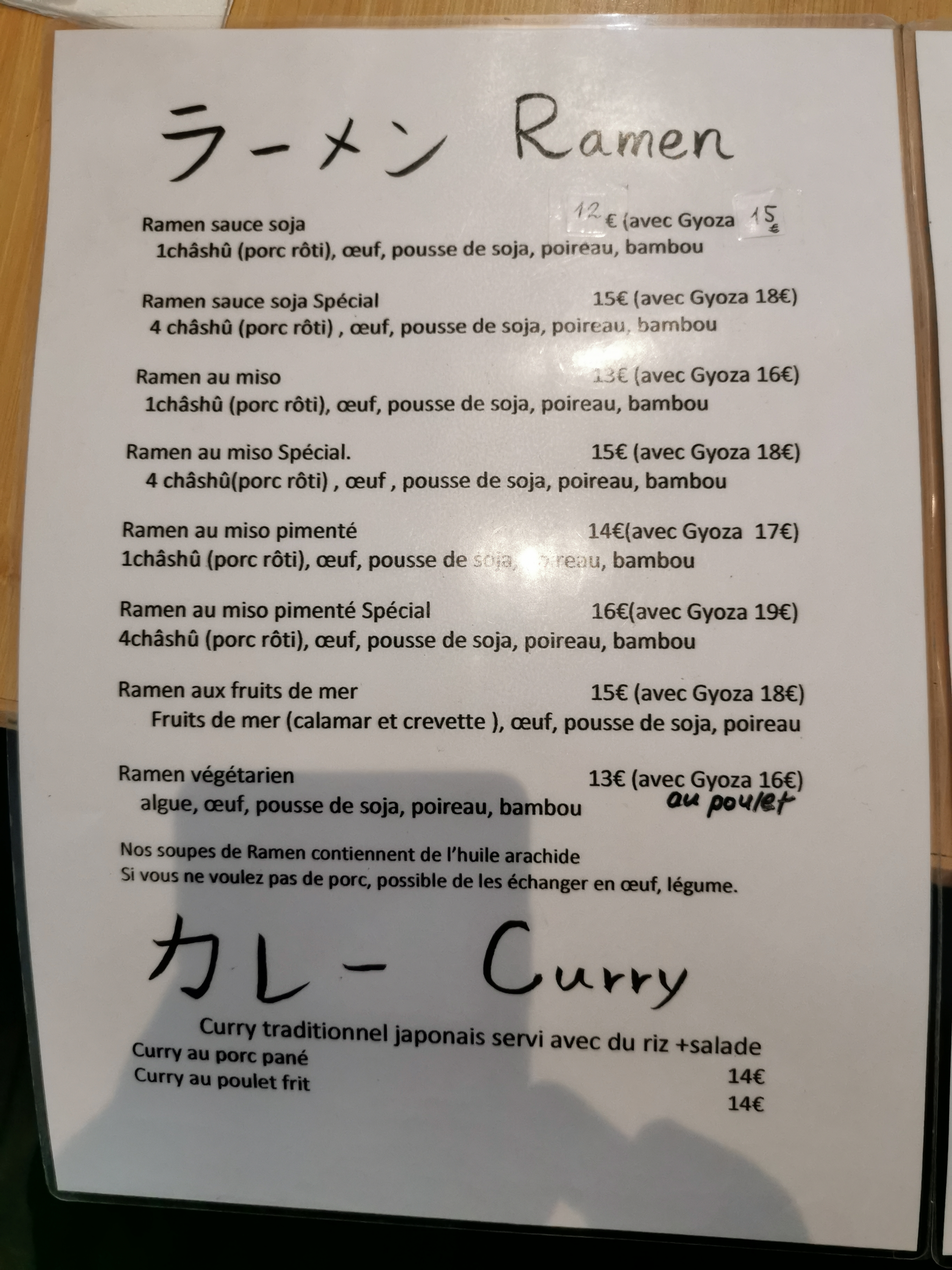 Petit restaurant sympathique où on y mange extrêmement bien (jamais déçu pour y être allé plusieurs fois)! Je recommande vivement le curry et les gyozas !
