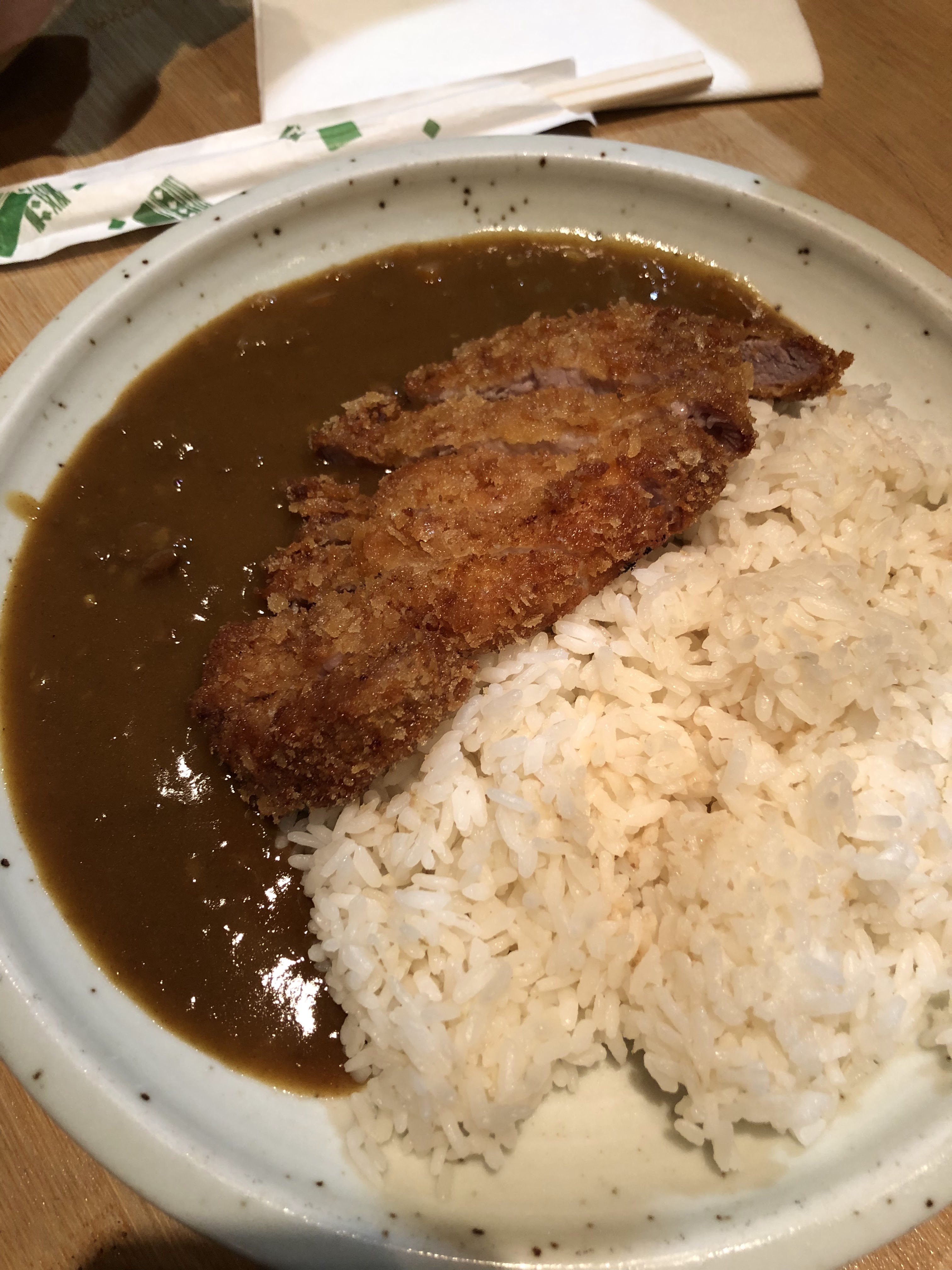 Bon restaurant. Cadre calme, serveuse et cuisinier très gentils. Il y a même un comptoir pour les plus curieux. Sans que ça soit la meilleure adresse, les plats sont bons (le porc pané n'est absolument pas sec), la sauce curry très légèrement relevée et ne manque pas d'ingrédients (carottes, oignons, viande...). Il pourrait y avoir plus de sauce pour la quantité de riz (ou c'est moi qui suis trop gourmande ?). La carte est suffisamment variée et les prix sont abordables. Il n'y a rien à redire, je conseille pour un repas sans prise de tête.