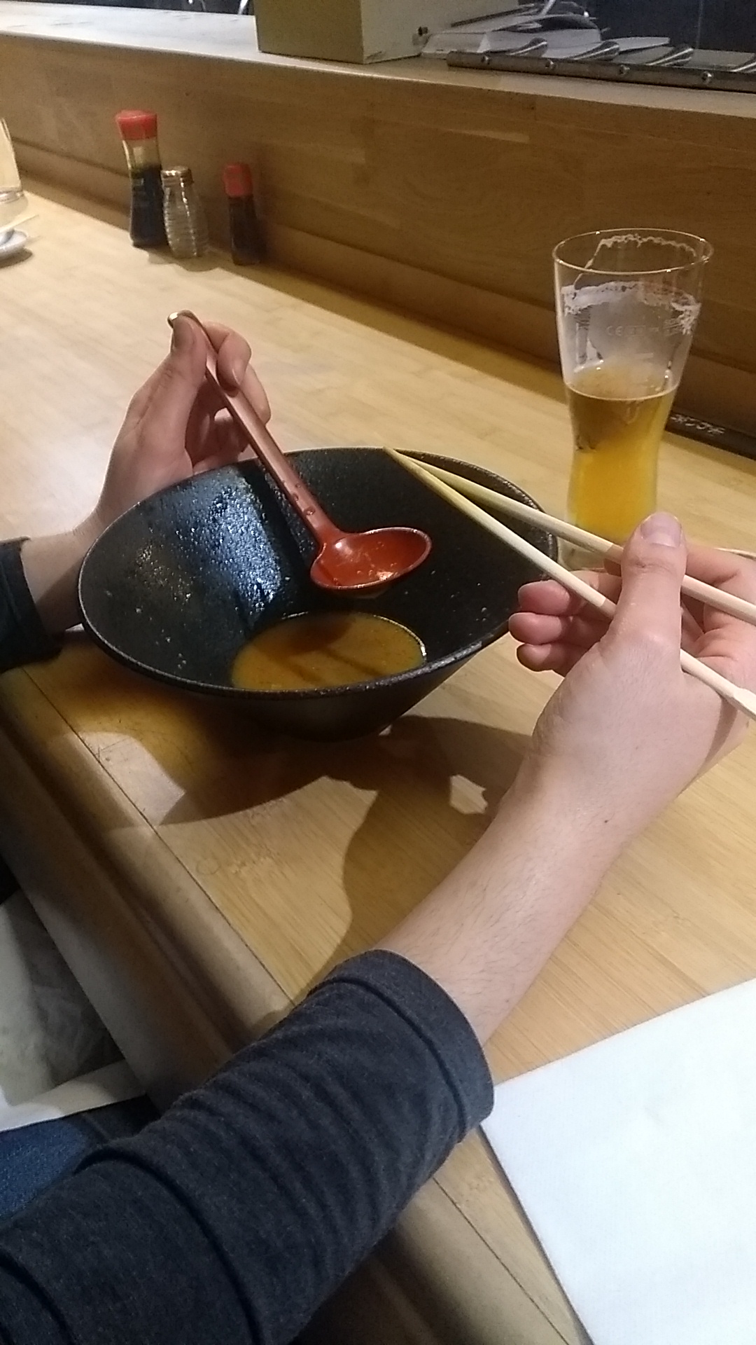 Excellent (bien qu un peu petit) ramen qui justifie le déplacement à lui seul. Les gyozas ne sont clairement pas indispensables dans la commande ;)