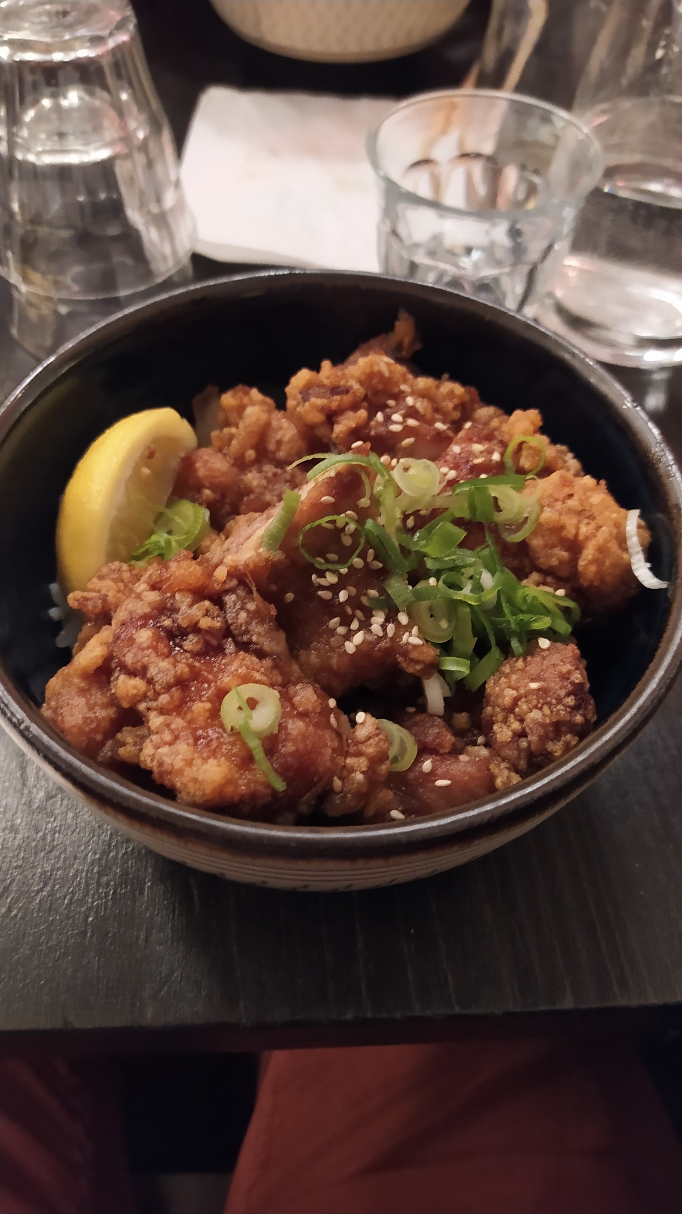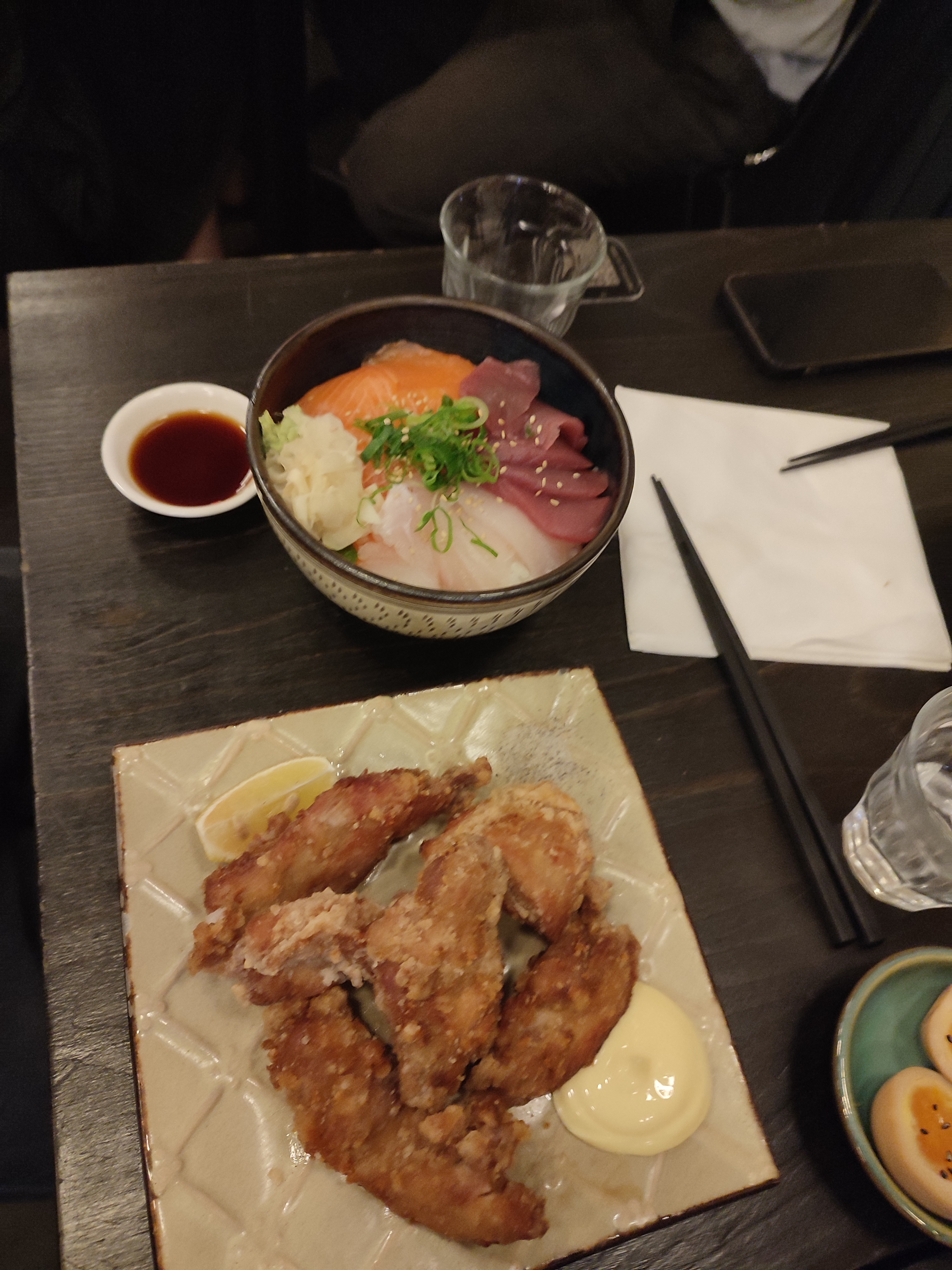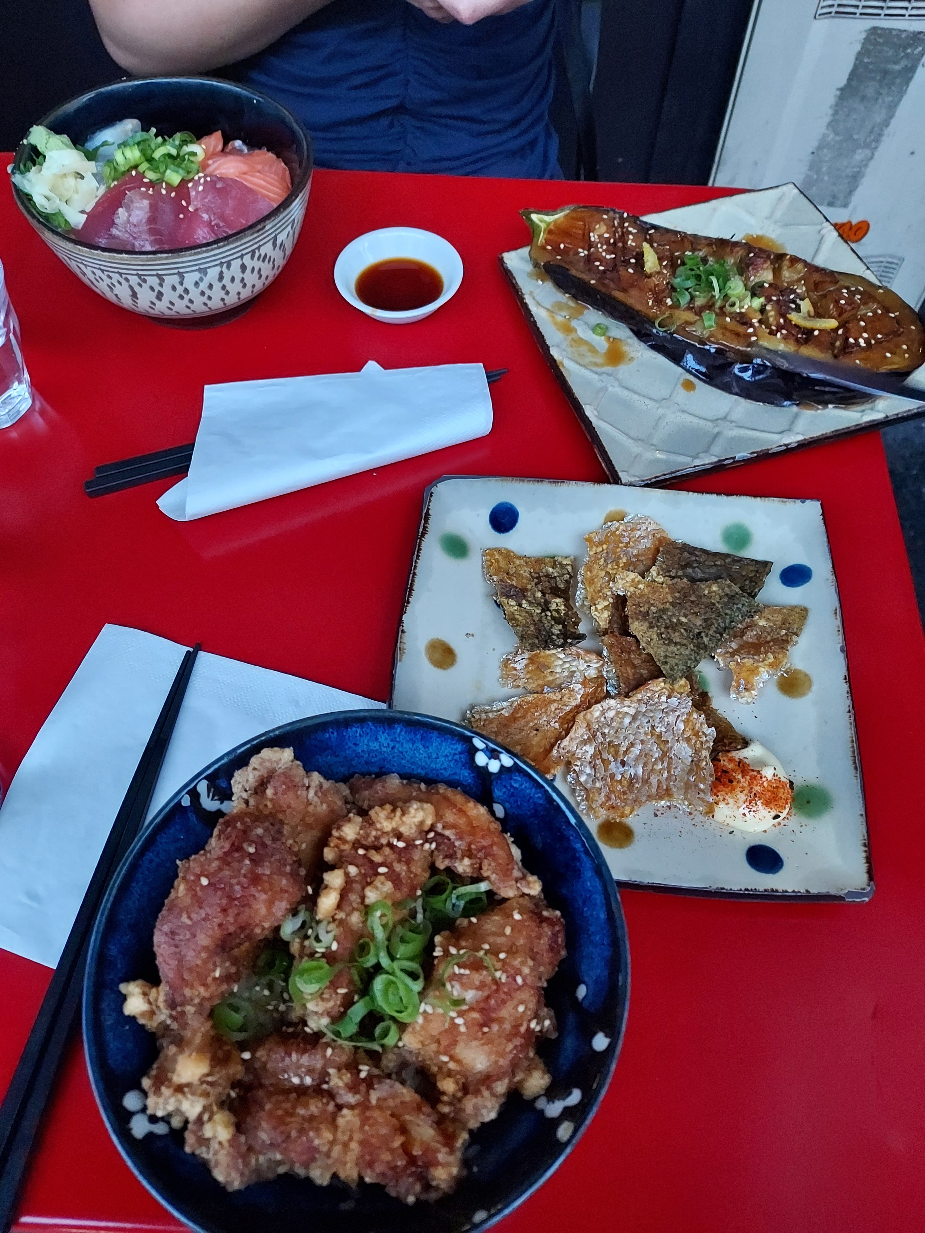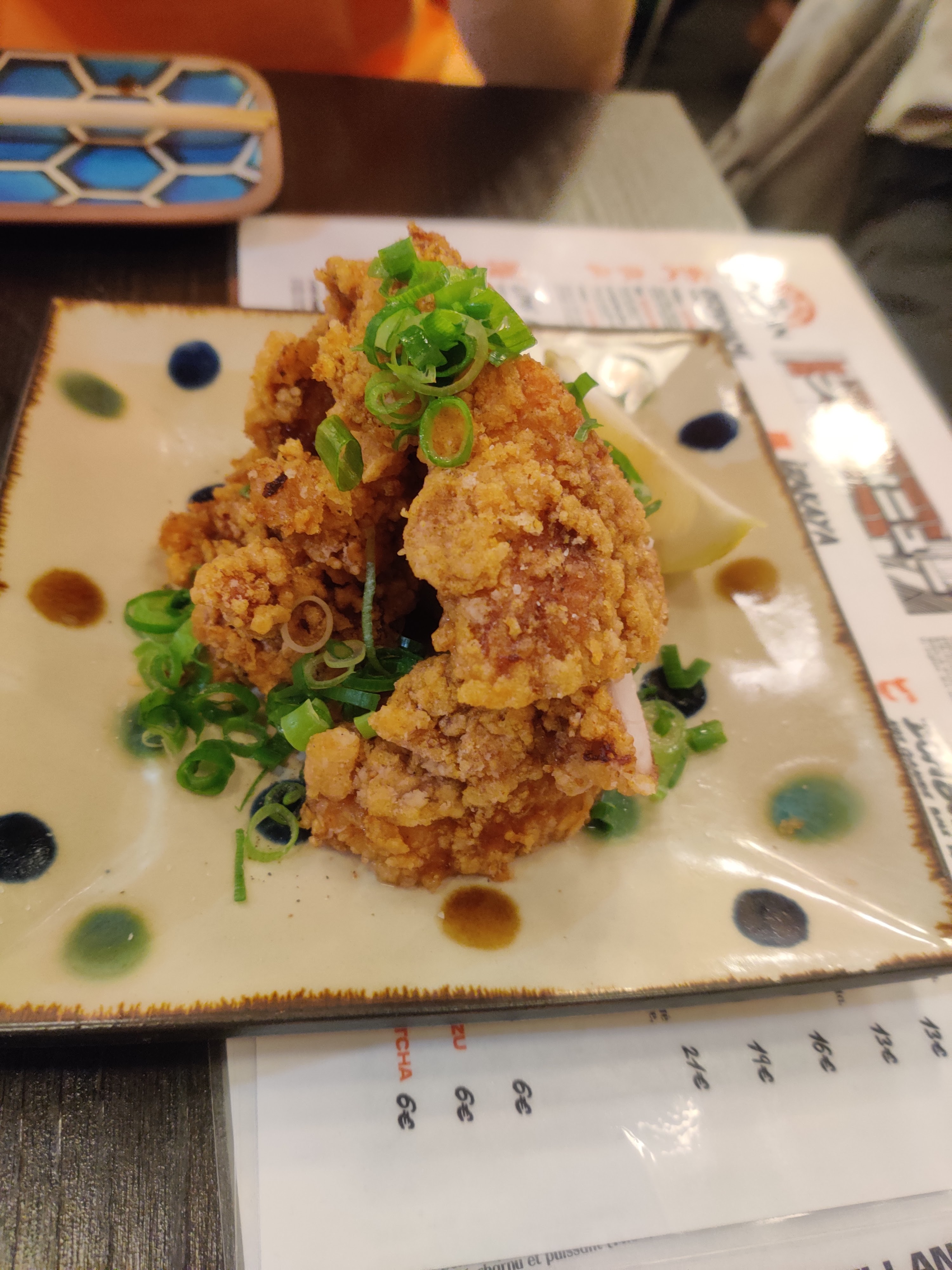 Je mets 4 étoiles parce que c'était très bon globalement, le poulet frit était vraiment excellent, frais, de qualité, tendre, bravo ! Par contre, gros bémol sur le sashimi de maguro/thon. Coupé trop epais, température trop élevée. Une vraie déception. Ça ne m'empêchera pas de revenir, mais je me contenterai des volailles.