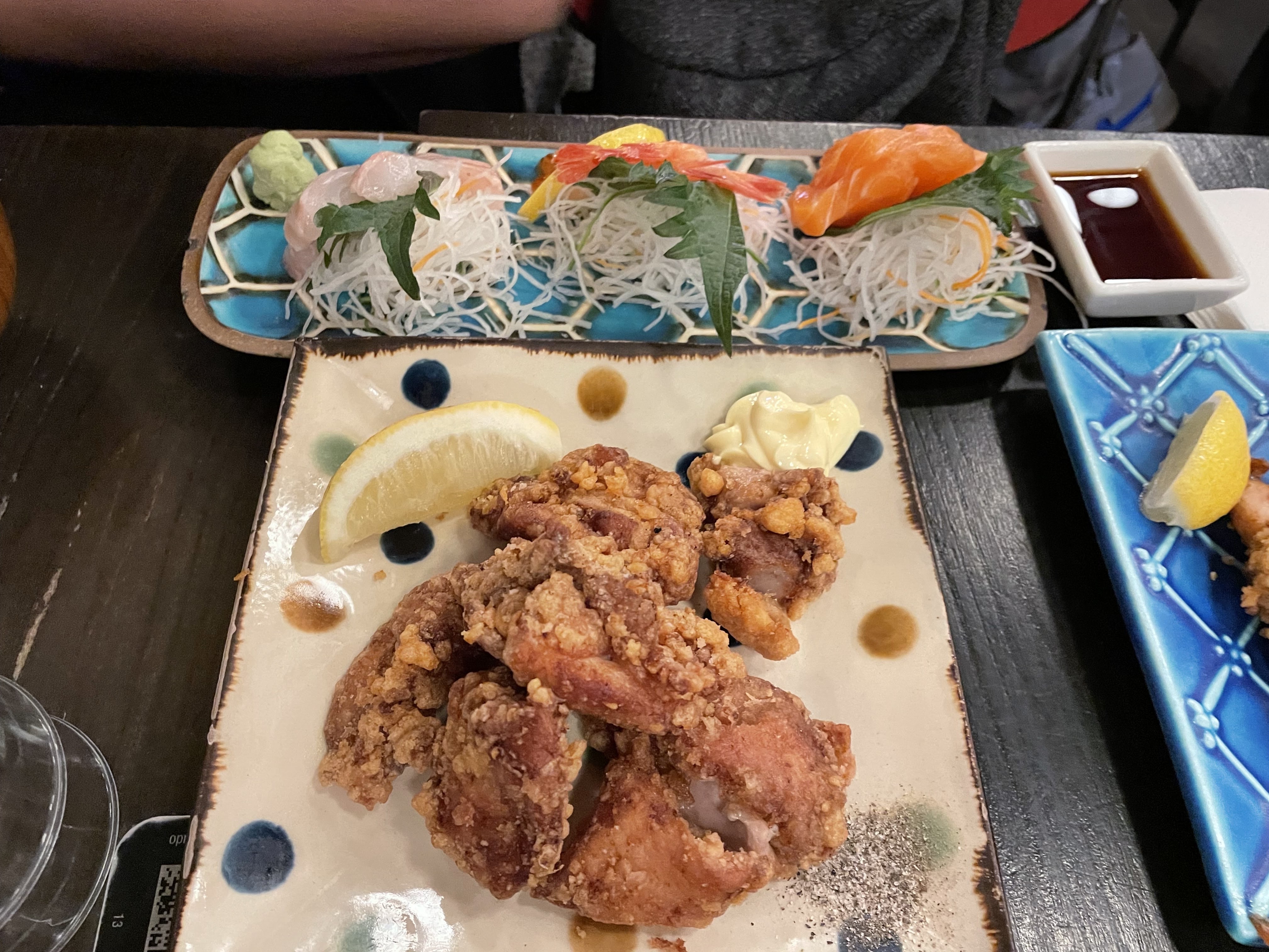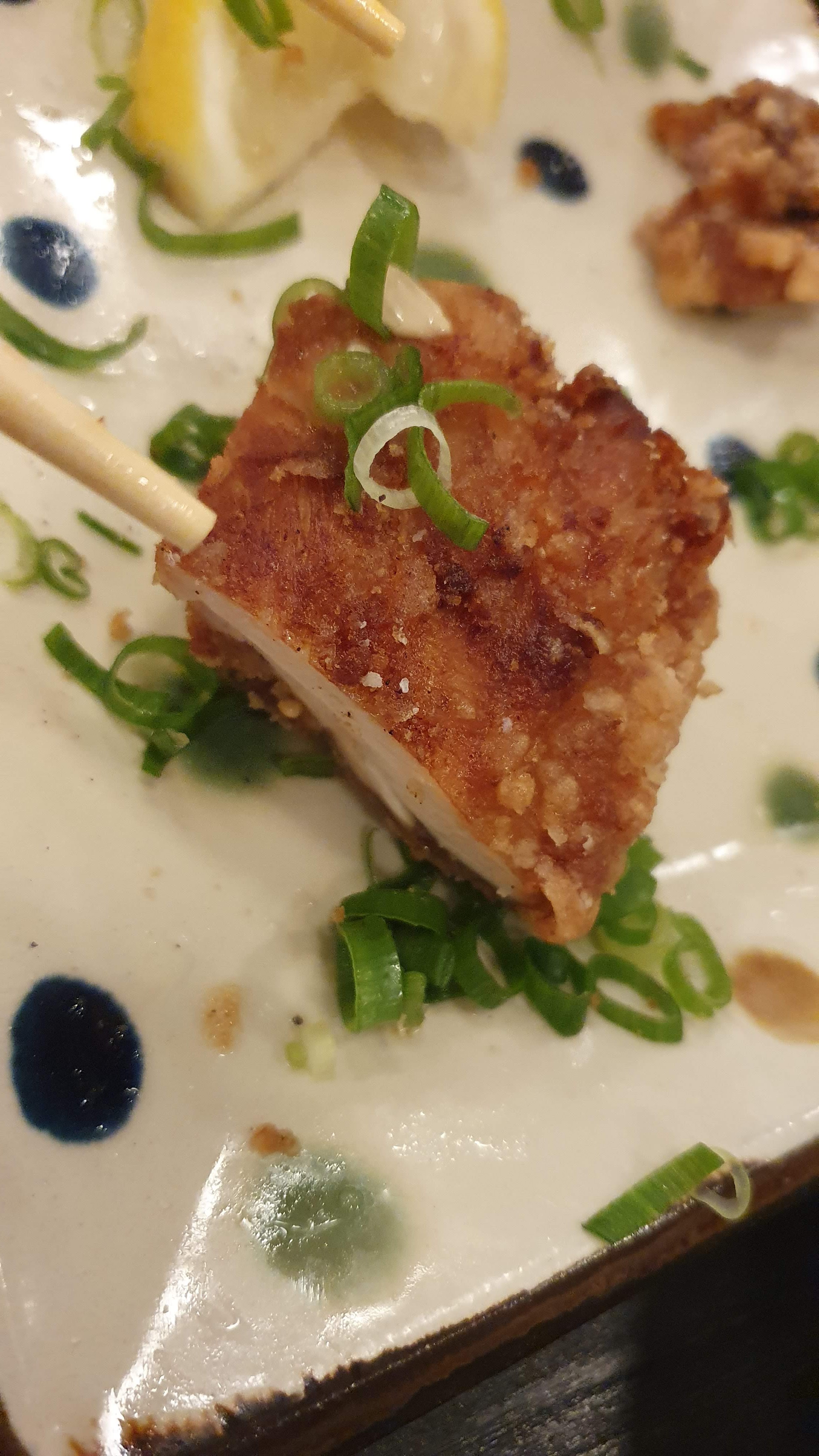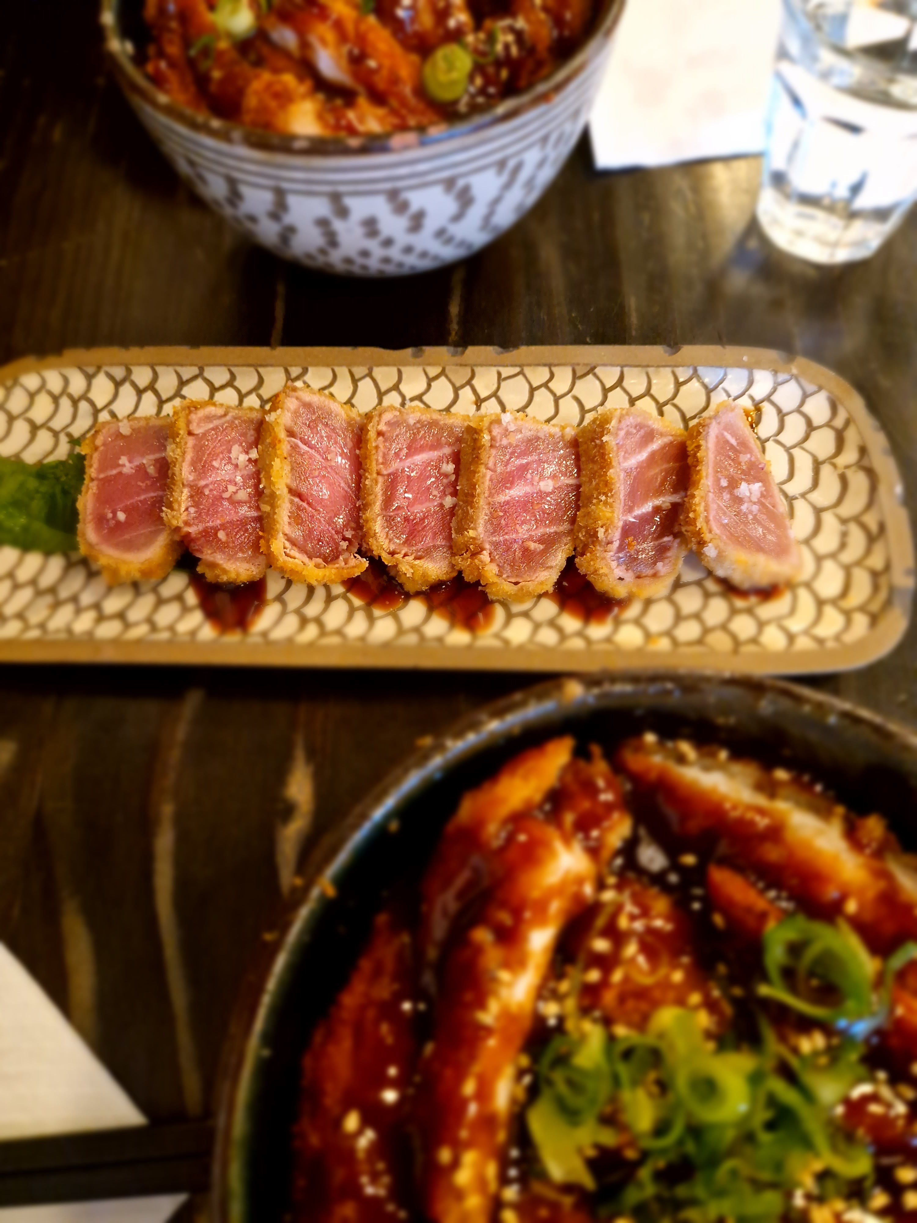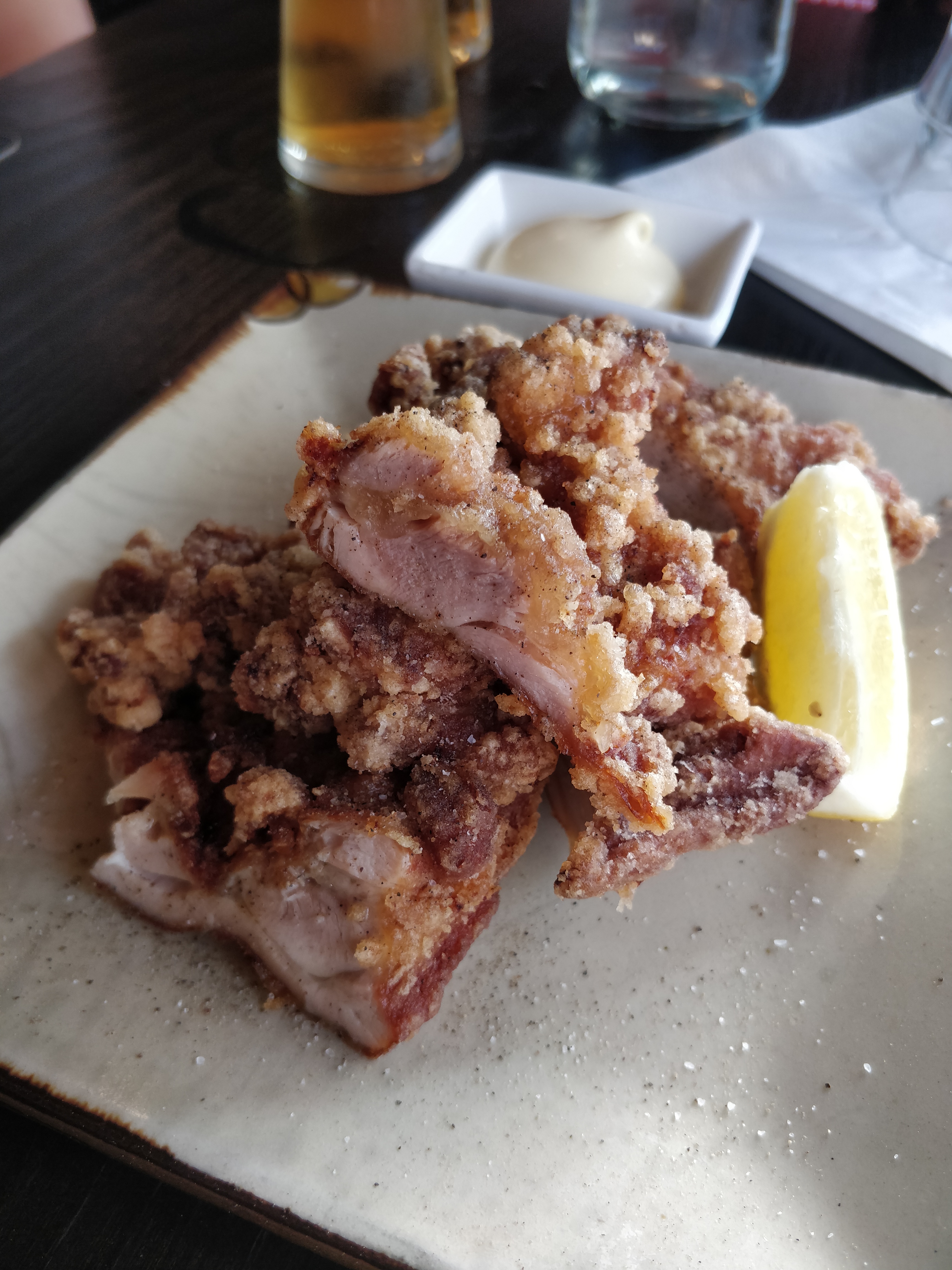 Je mets 4 étoiles parce que c'était très bon globalement, le poulet frit était vraiment excellent, frais, de qualité, tendre, bravo ! Par contre, gros bémol sur le sashimi de maguro/thon. Coupé trop epais, température trop élevée. Une vraie déception. Ça ne m'empêchera pas de revenir, mais je me contenterai des volailles.