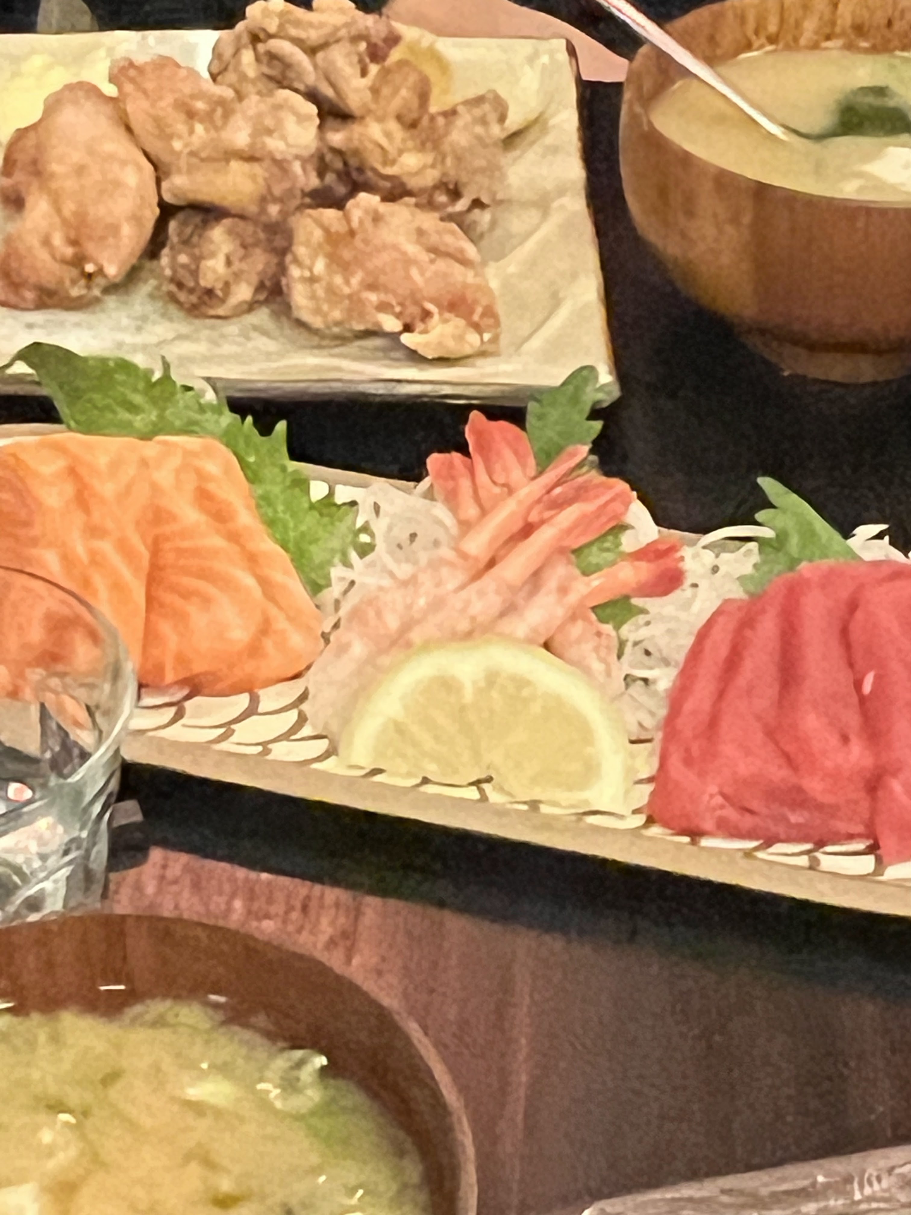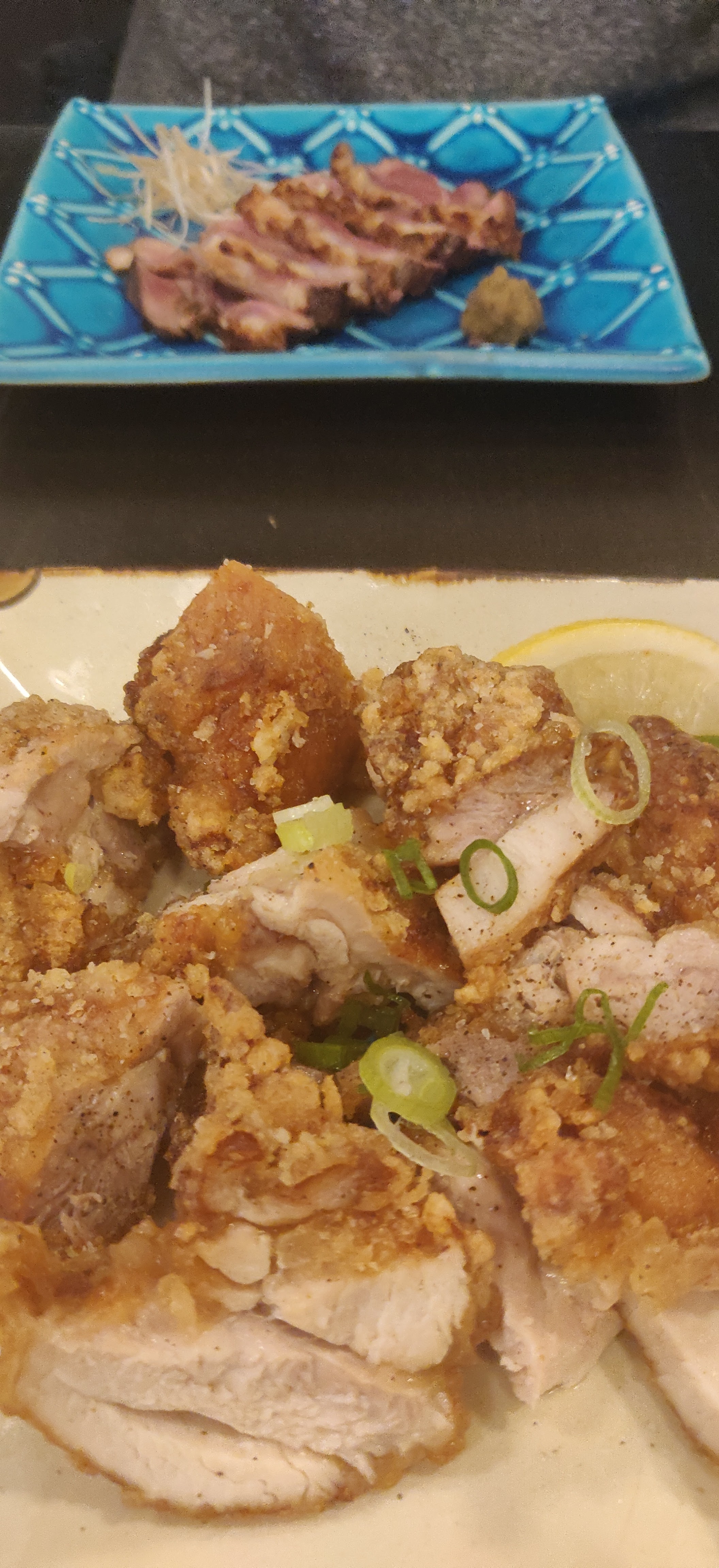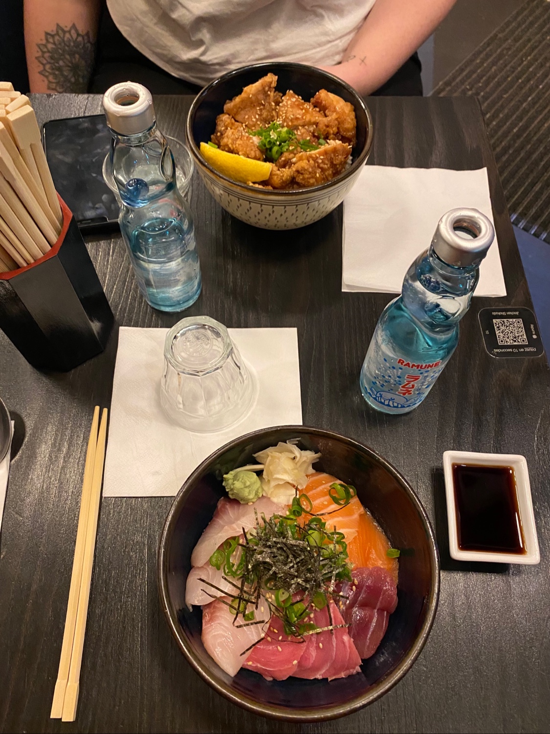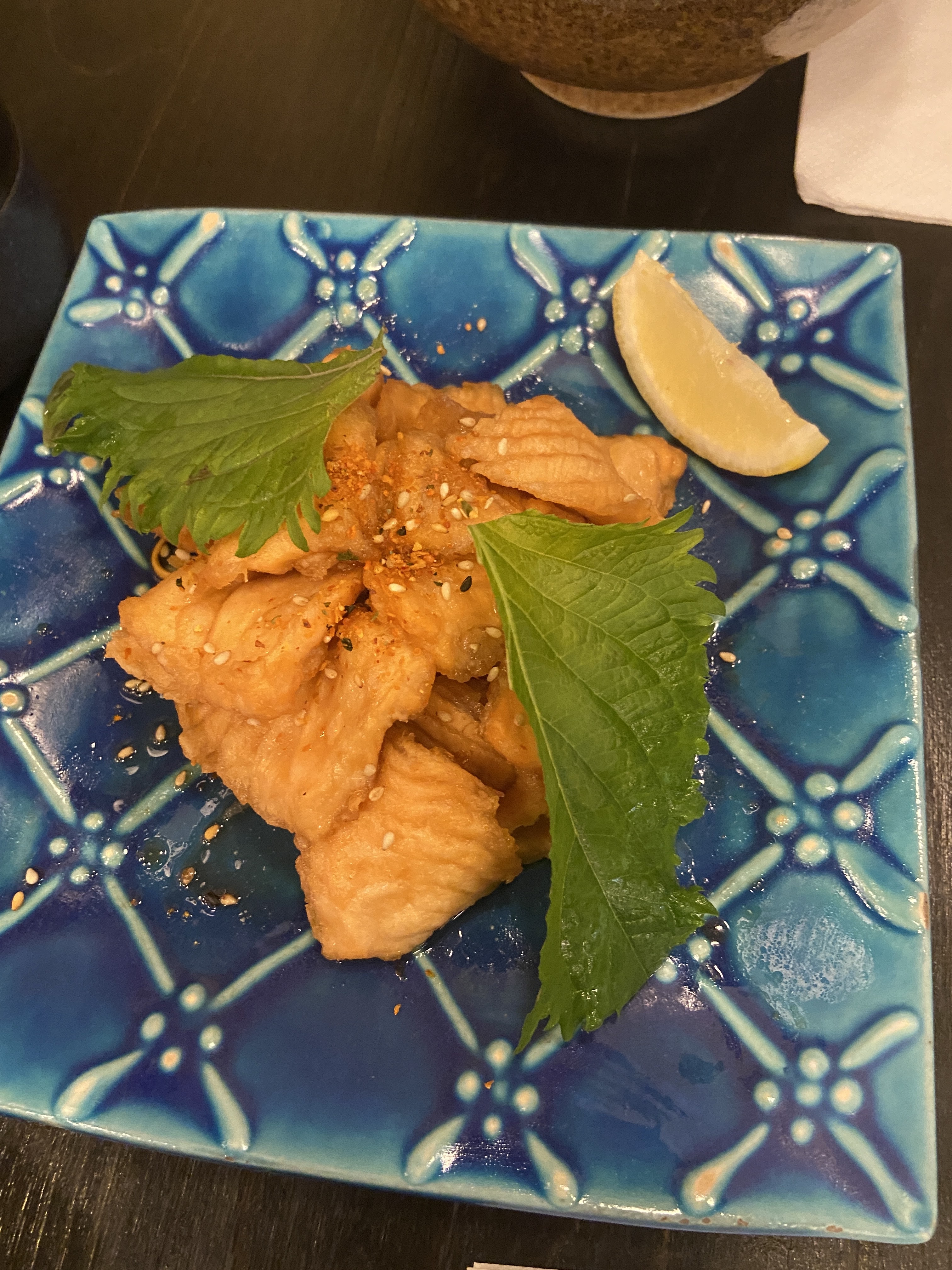 Je mets 4 étoiles parce que c'était très bon globalement, le poulet frit était vraiment excellent, frais, de qualité, tendre, bravo ! Par contre, gros bémol sur le sashimi de maguro/thon. Coupé trop epais, température trop élevée. Une vraie déception. Ça ne m'empêchera pas de revenir, mais je me contenterai des volailles.