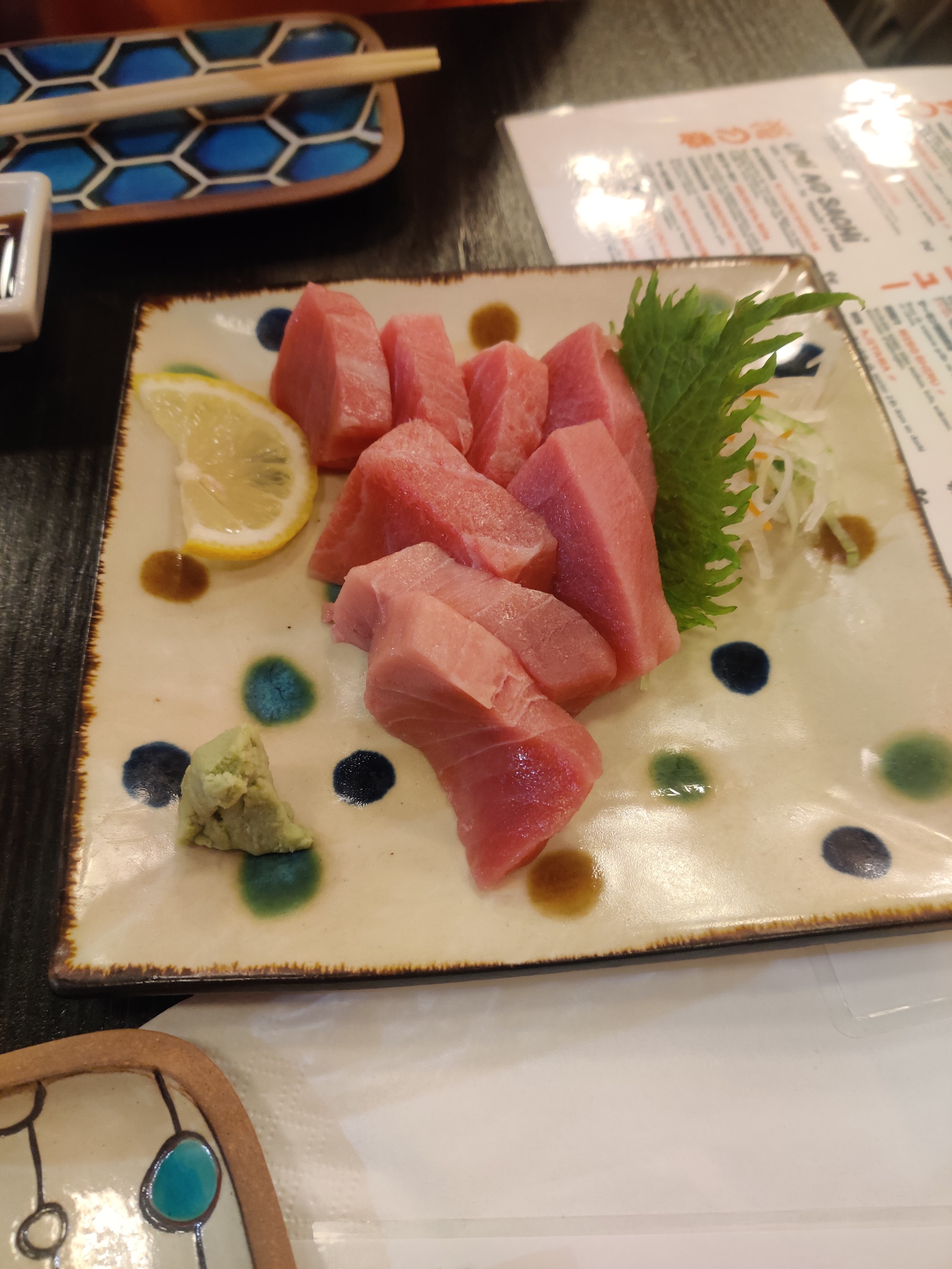 Le cadre est très agréable avec le service rapide. La qualité de poisson est excellente. Le prix est reasonable compte tenu de la qualité des produits. Nous sommes grands amateurs des sashimi, on était très contents de notre dîner.