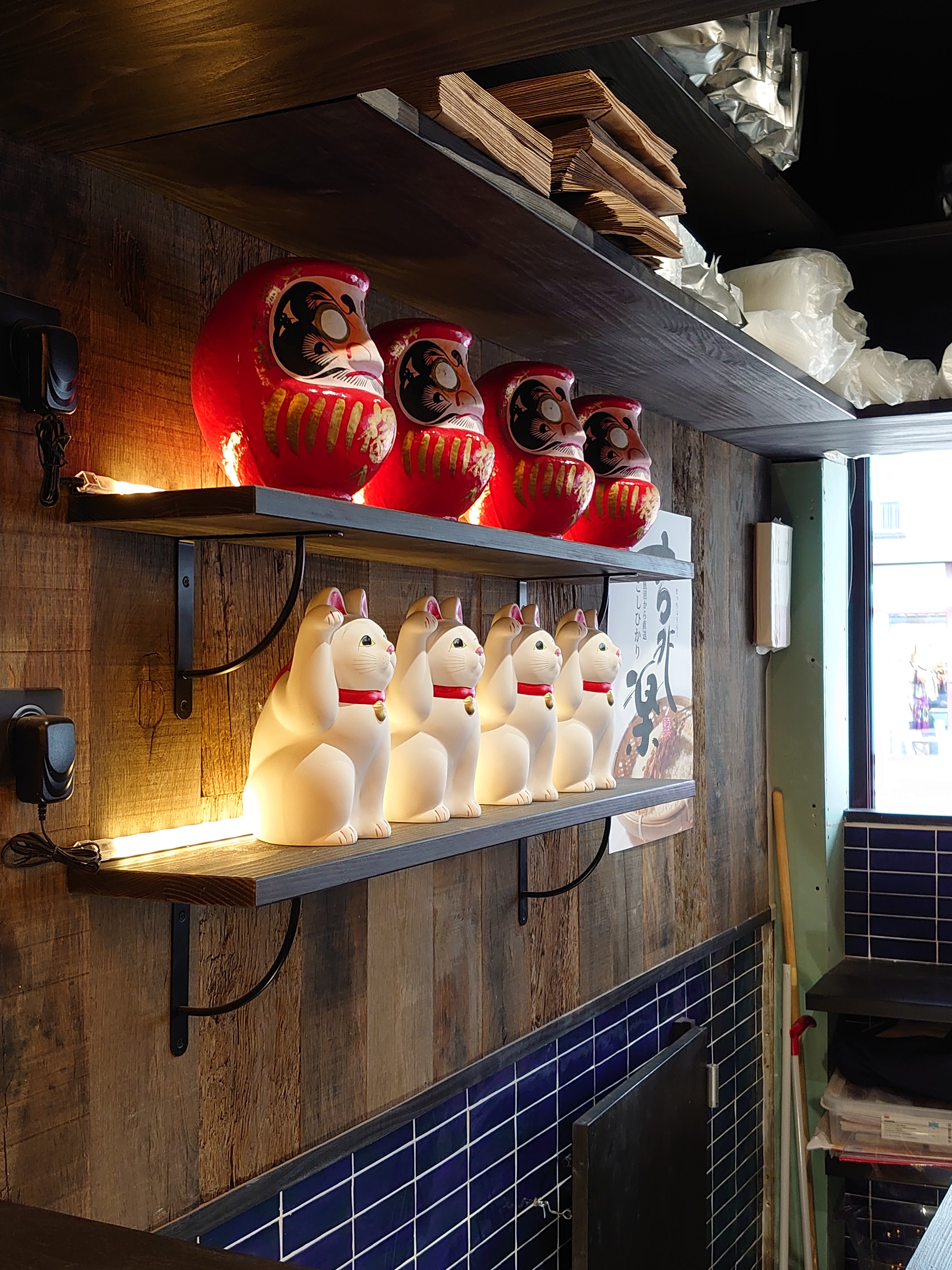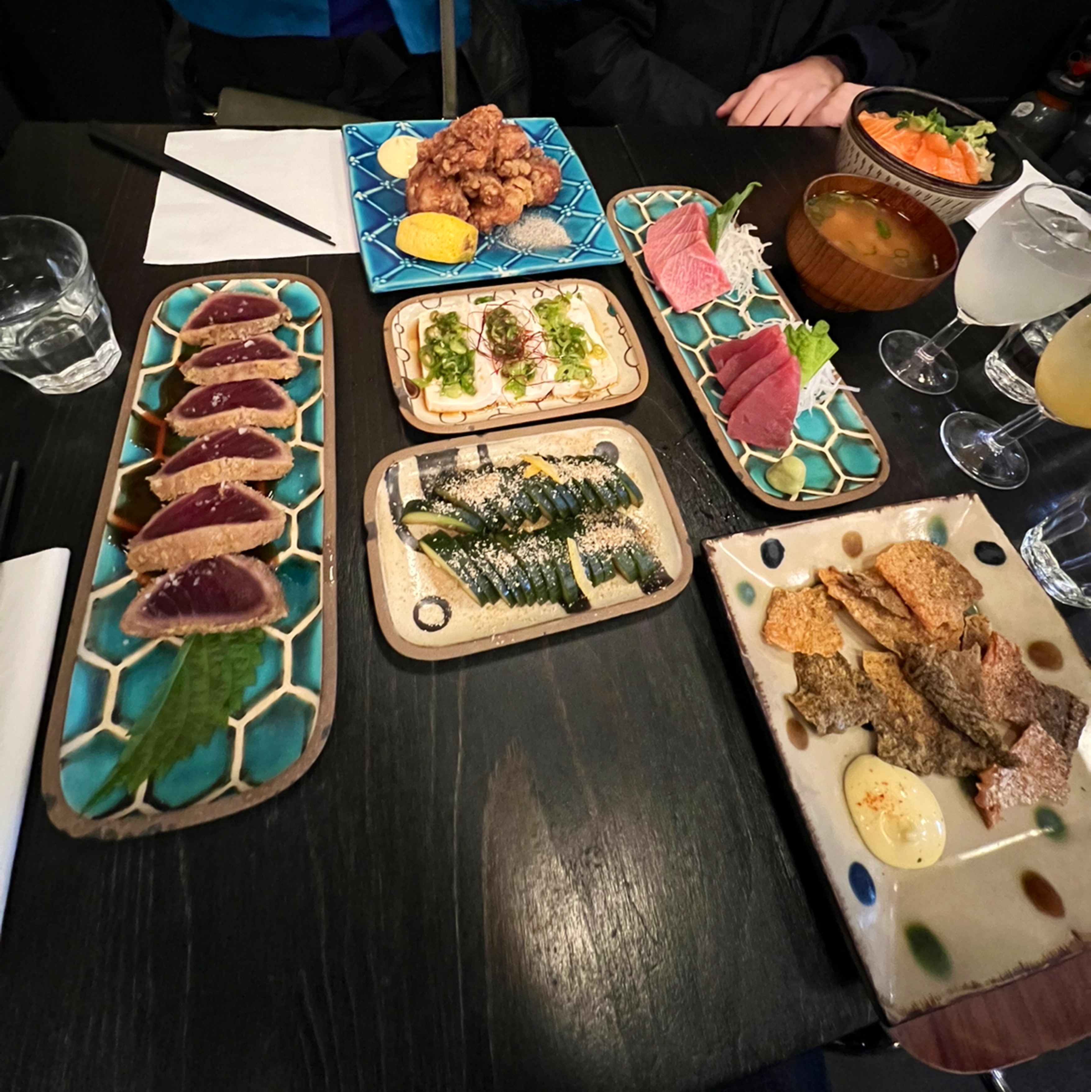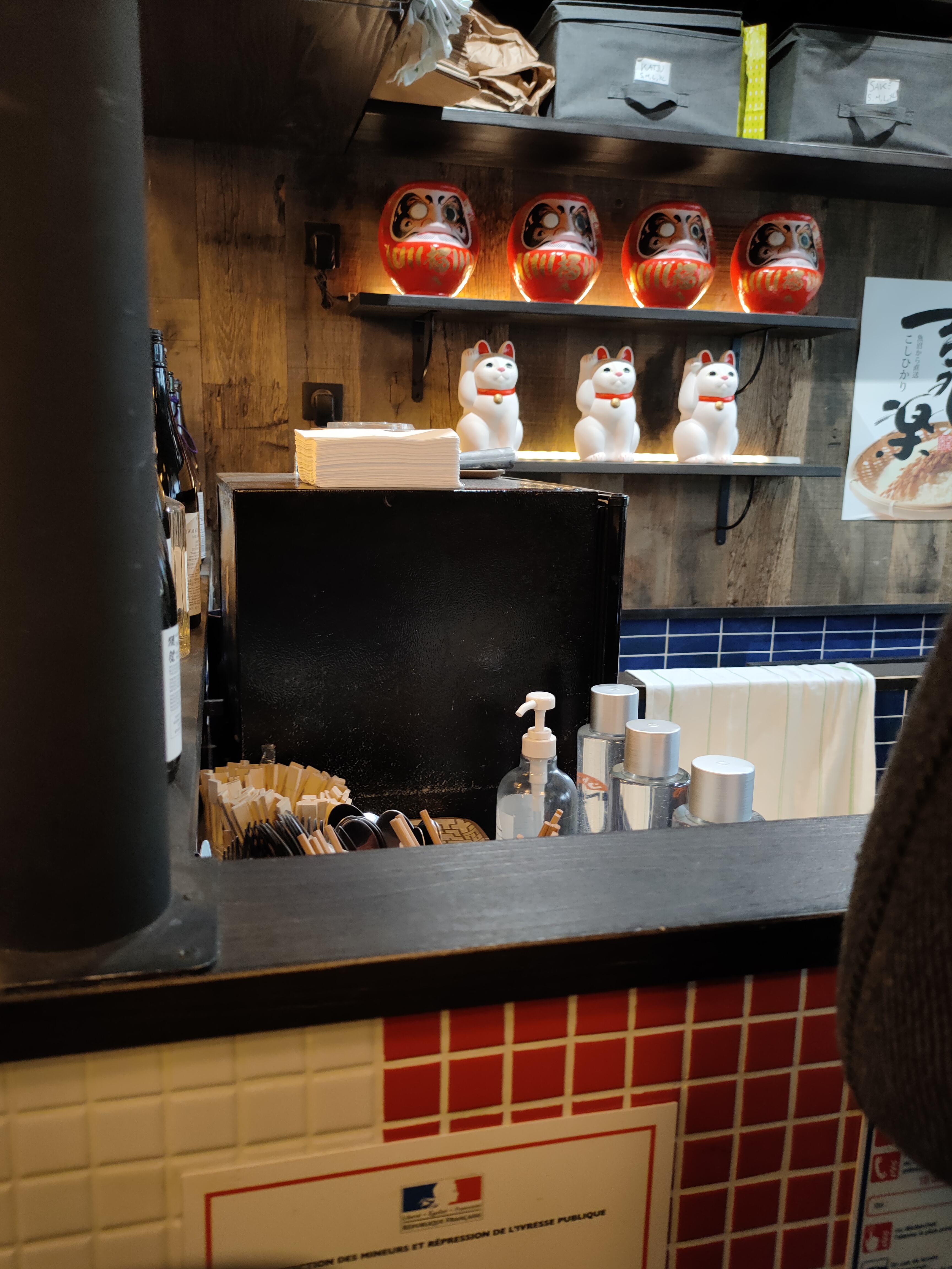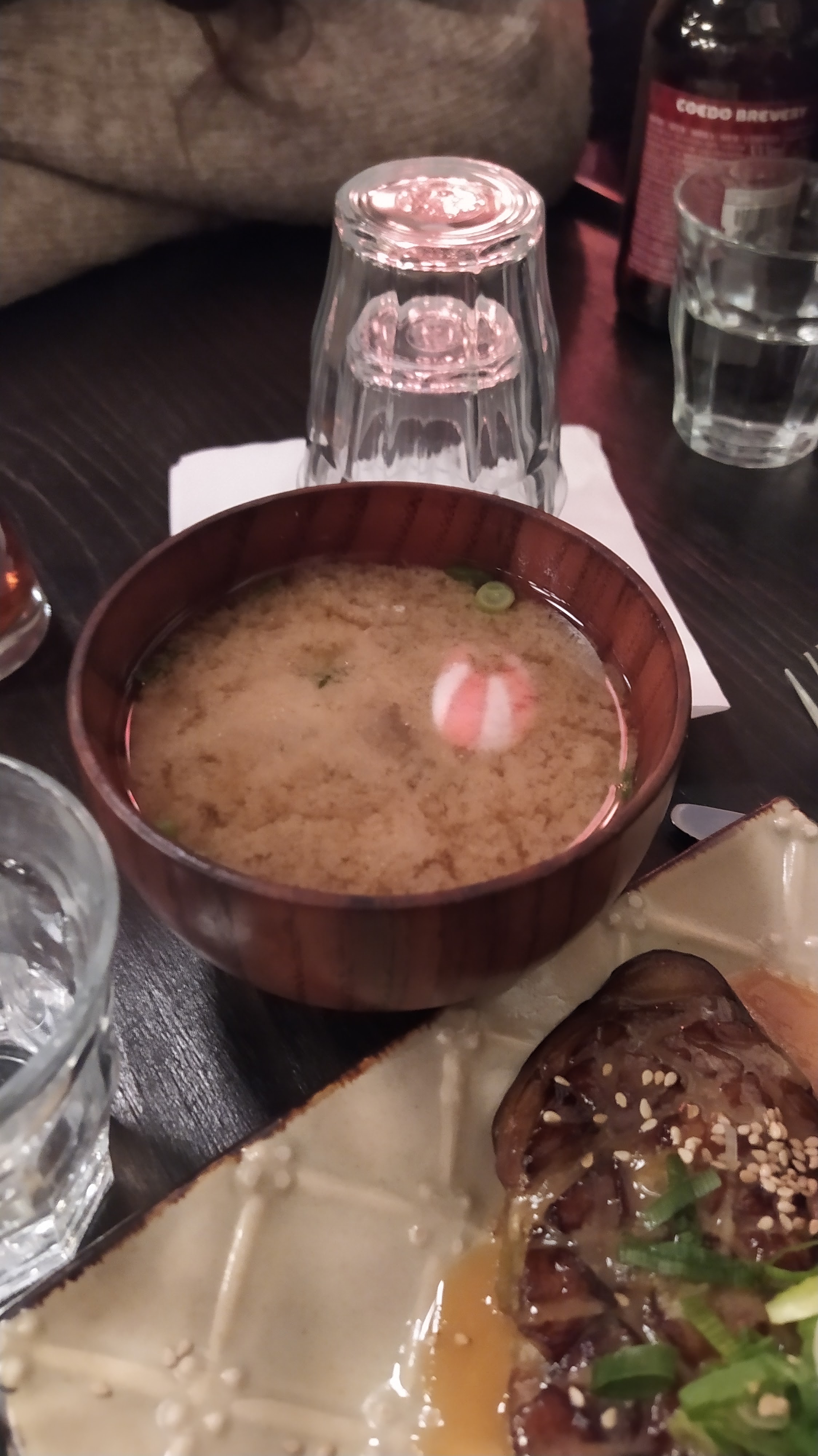 Cadre très sympathique et japonisant, et personnel accueillant. En revanche, mon aubergine était froide, et j'ai été servie avec des couverts français et une cuillère à soupe pour ma soupe miso.. Je m'attendais à de la vaisselle japonaise pour un vrai resto izakaya. Par ailleurs les quantités sont assez légères..