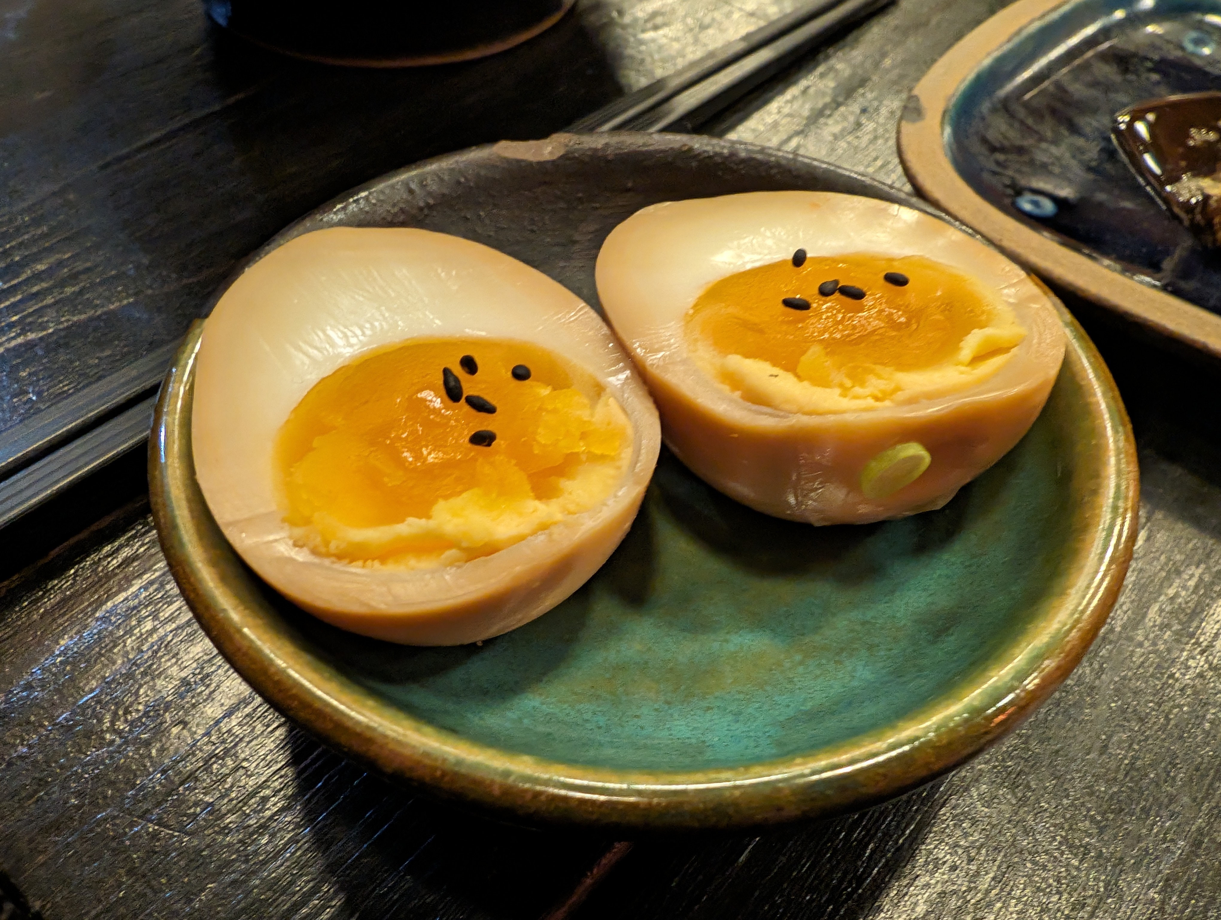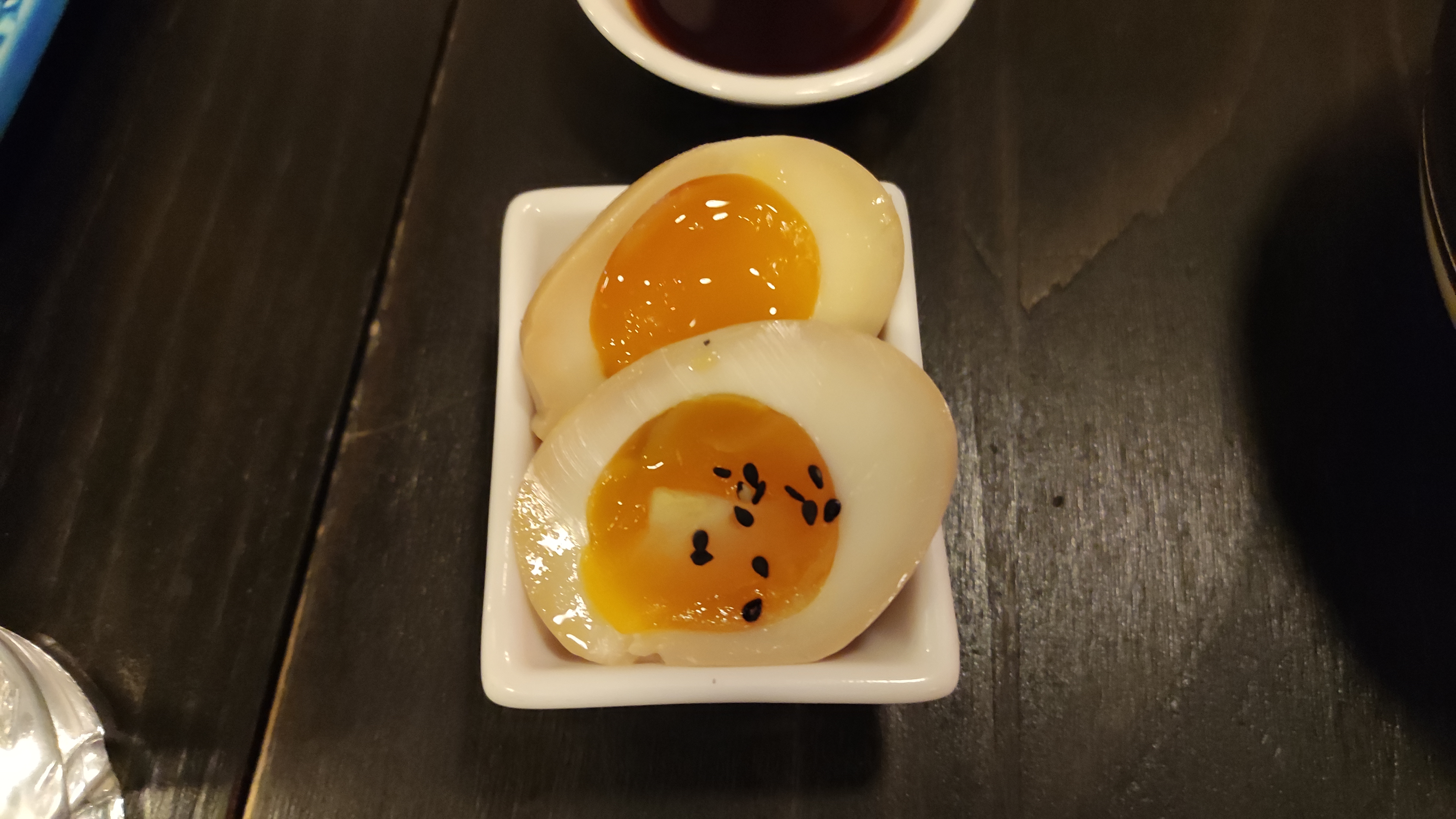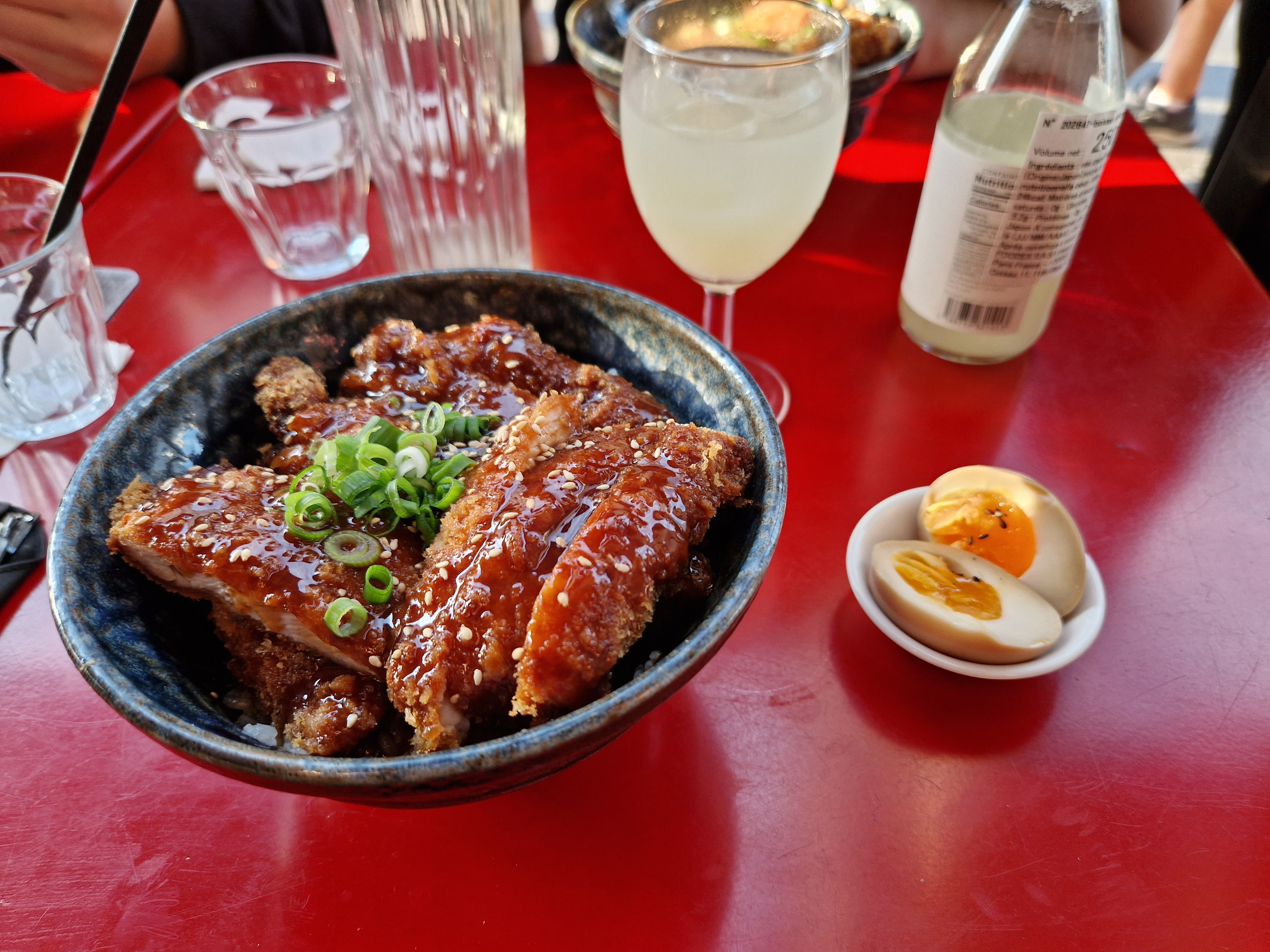 Catherine san merci beaucoup pour votre retour 🌟 Concernant la sauce n’hésitez pas à demander au staff si vous en souhaitez plus 😊 Nous sommes obligés de nous adapter à tous les goûts et il est plus facile d’en ajouter que retirer 😉 Pour les œufs marinés c’est effectivement dommage … nous voyons cela avec la cuisine ! Merci encore !