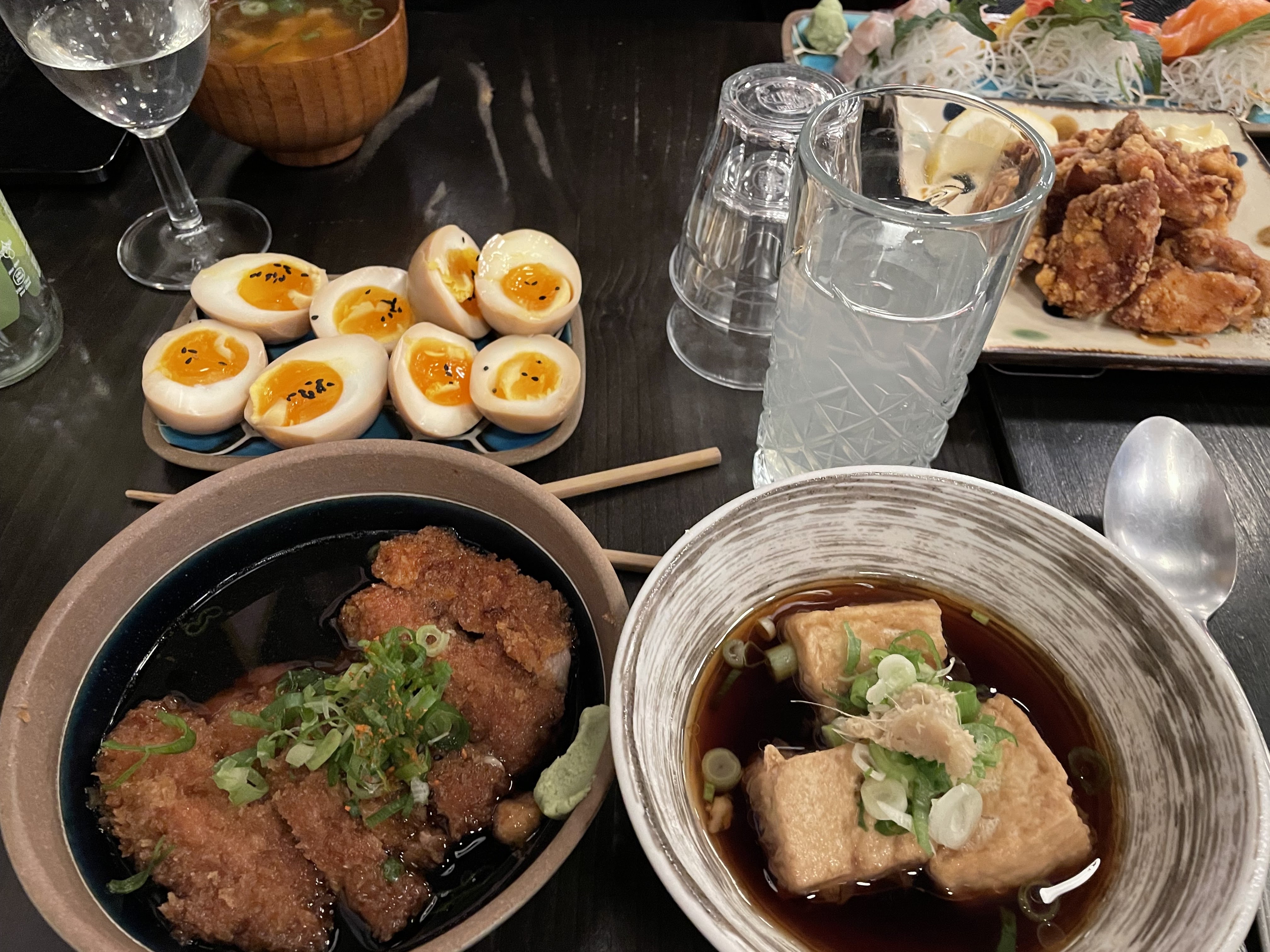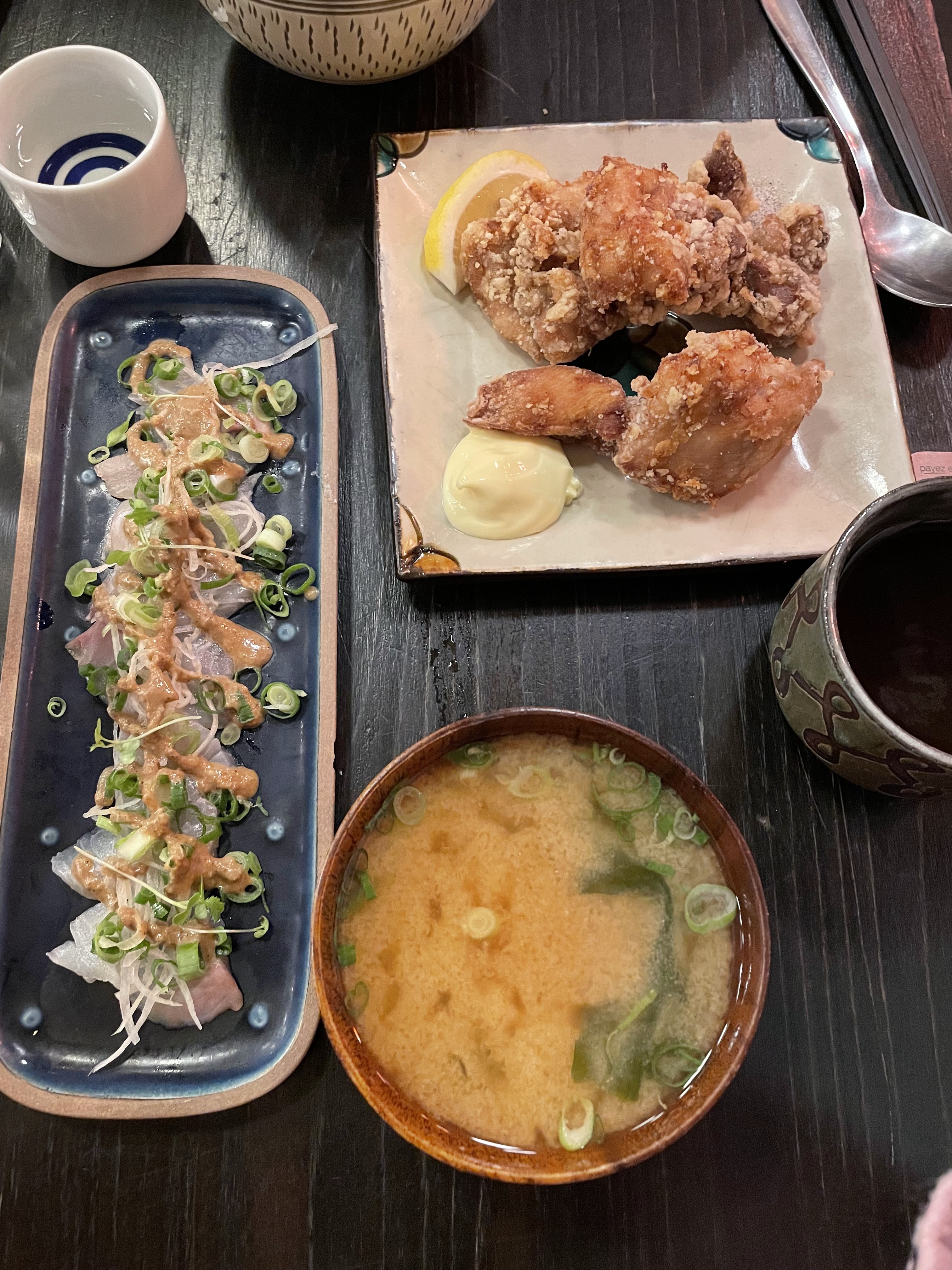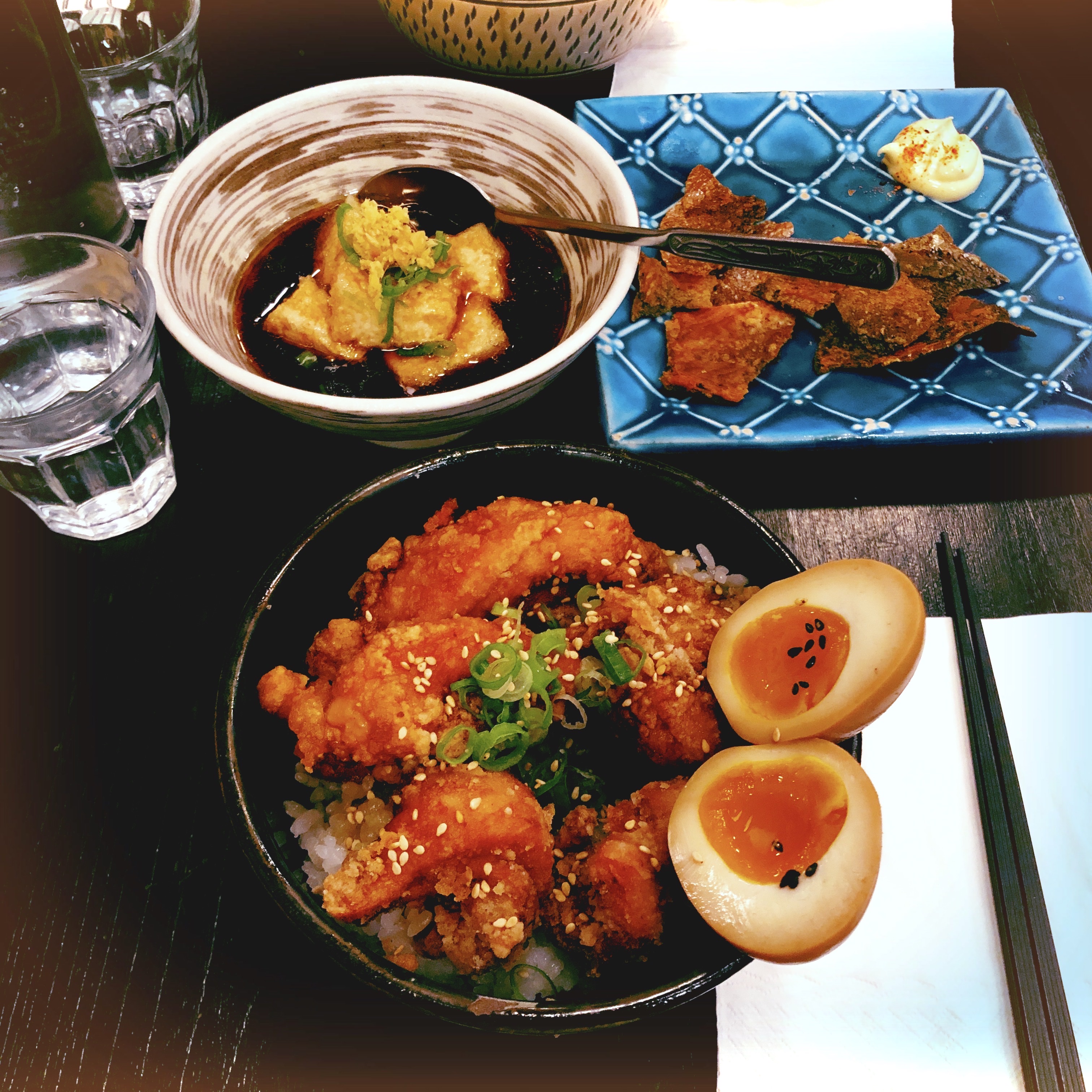 Nous avons été installer rapidement mais nous avons attendu un moment avant que quelqu'un vienne prendre notre commande et pour que les plats soient servis. Néanmoins, le personnel reste réactif et très aimable. Ils changent la caraffe d'eau dès qu'elle est vide sans qu'on ait rien à demander, ce qui est vraiment TRÈS appréciable. Je suis venue ici car j'avais vu des tiktokers et instagramers (food) dire que c'était le meilleur Karaage de Paris. Personnellement, je ne le qualifierai pas du titre du meilleur karaage de Paris, bien qu'il ne soit pas mauvais non plus. C'est bon mais sans plus. Attention, le nasudengaku est très salé (à cause du miso)! Je n'ai pas l'habitude qu'il le soit autant mais c'etait bon quand même.