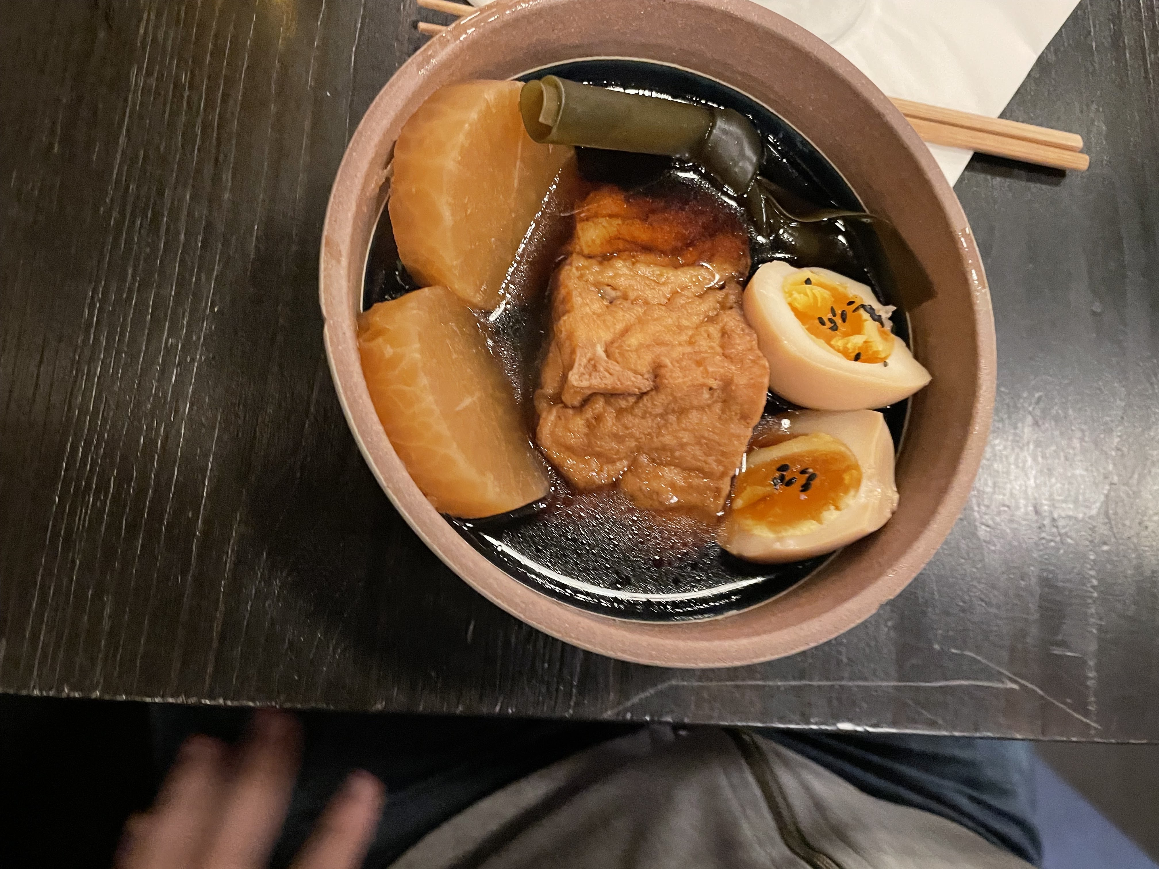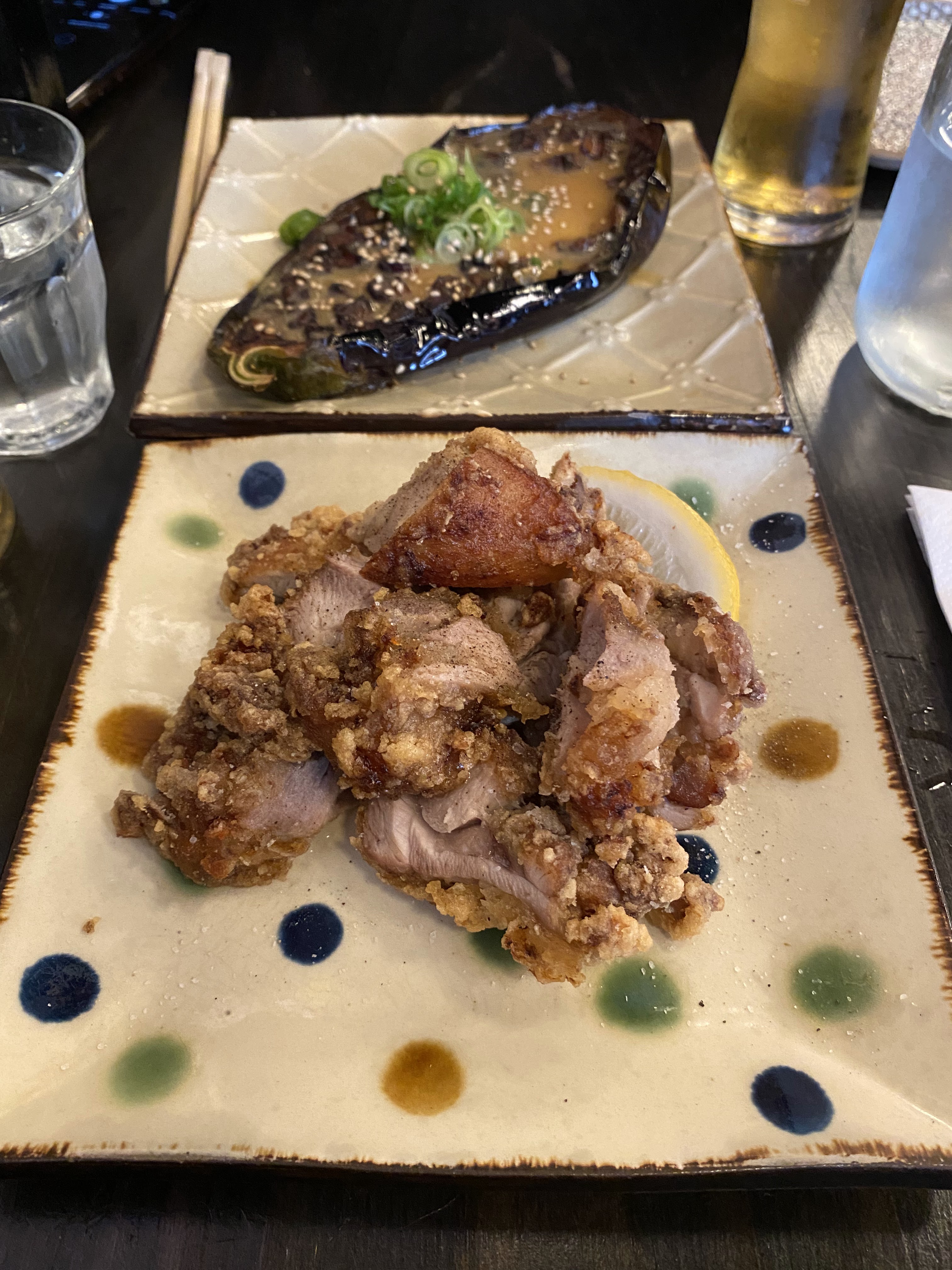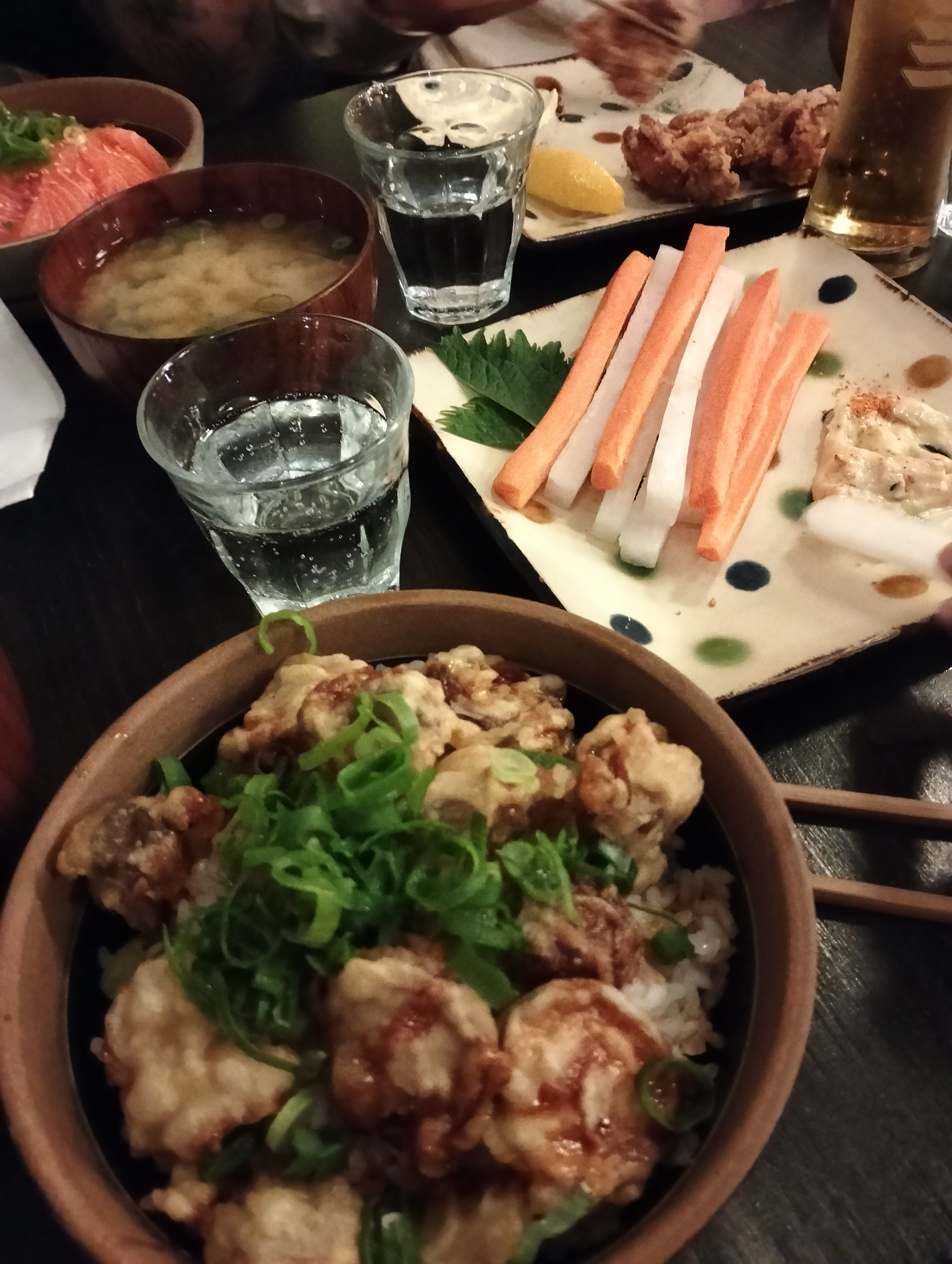 Nous avons été installer rapidement mais nous avons attendu un moment avant que quelqu'un vienne prendre notre commande et pour que les plats soient servis. Néanmoins, le personnel reste réactif et très aimable. Ils changent la caraffe d'eau dès qu'elle est vide sans qu'on ait rien à demander, ce qui est vraiment TRÈS appréciable. Je suis venue ici car j'avais vu des tiktokers et instagramers (food) dire que c'était le meilleur Karaage de Paris. Personnellement, je ne le qualifierai pas du titre du meilleur karaage de Paris, bien qu'il ne soit pas mauvais non plus. C'est bon mais sans plus. Attention, le nasudengaku est très salé (à cause du miso)! Je n'ai pas l'habitude qu'il le soit autant mais c'etait bon quand même.