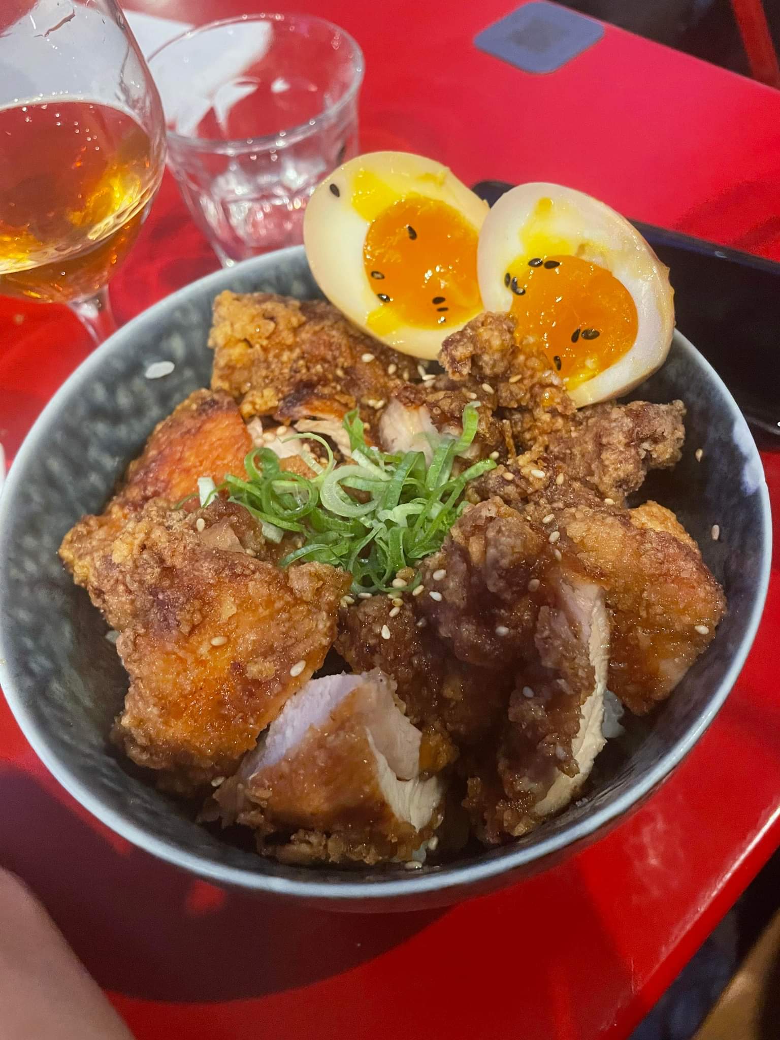 [Découverte] Un restaurant japonais qui fait des plats maison. [Repas] 🍚🍗 En plat j’ai pris un katsudon, un Salmon don, karaage et une soupe miso avec les algues marinées. Pour l’entrée de Karaage, j’ai trouvé que le goût était correct sans plus à vrai dire. Le katsudon était aussi bon, j’ai trouvé qu’il y avait un peu trop de sauce sur le poulet et sur le riz. Le goût du riz était trop cuit à mon goût. En soit le poulet frit a un goût standard et n’est pas mauvais mais n’est pas excellent non plus. C’est correct. Le Salmon Don était bon et le riz bien vinaigré. Pour ce qui est de la soupe miso, elle a le goût standard qu’on peut retrouver en sachet et partout ailleurs dans les restaurants de sushis. 😞 Par contre, j’ai adoré l’algue nori c’était très bon. [Service] Au niveau du service, j’ai trouvé que ce n’était pas ma meilleure expérience. Le serveur était désagréable. Les plats sont arrivés assez vite. [Décor] Un jolie cadre avec beaucoup de décoration japonaise. Que cela soit des posters ou autres. [Verdict] Les plats sont corrects. Mais le goût du poulet frit est assez décevant, cela reste bon sans plus. Faire la queue pour cette enseigne ne vaut peut-être pas le coup à mon avis. En terme de prix ça reste correct.