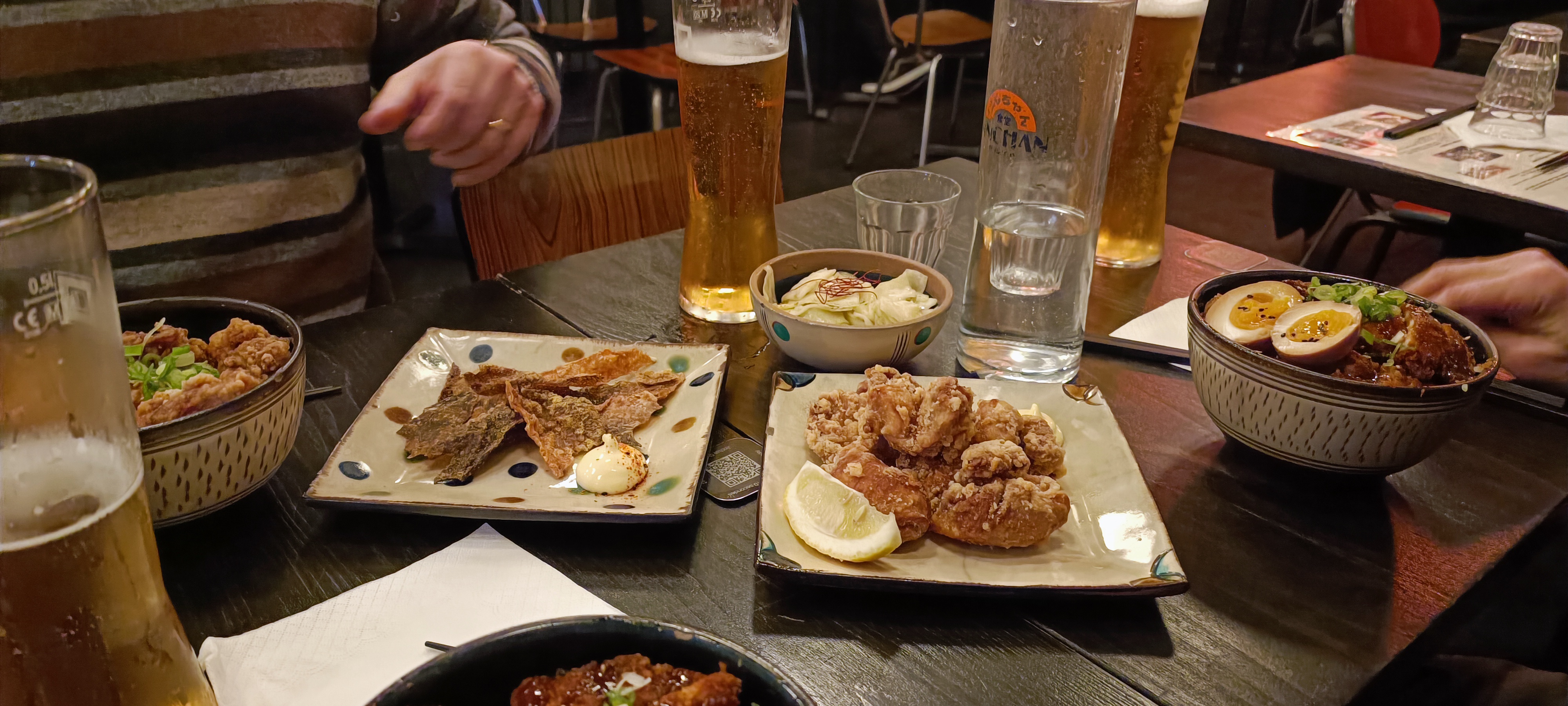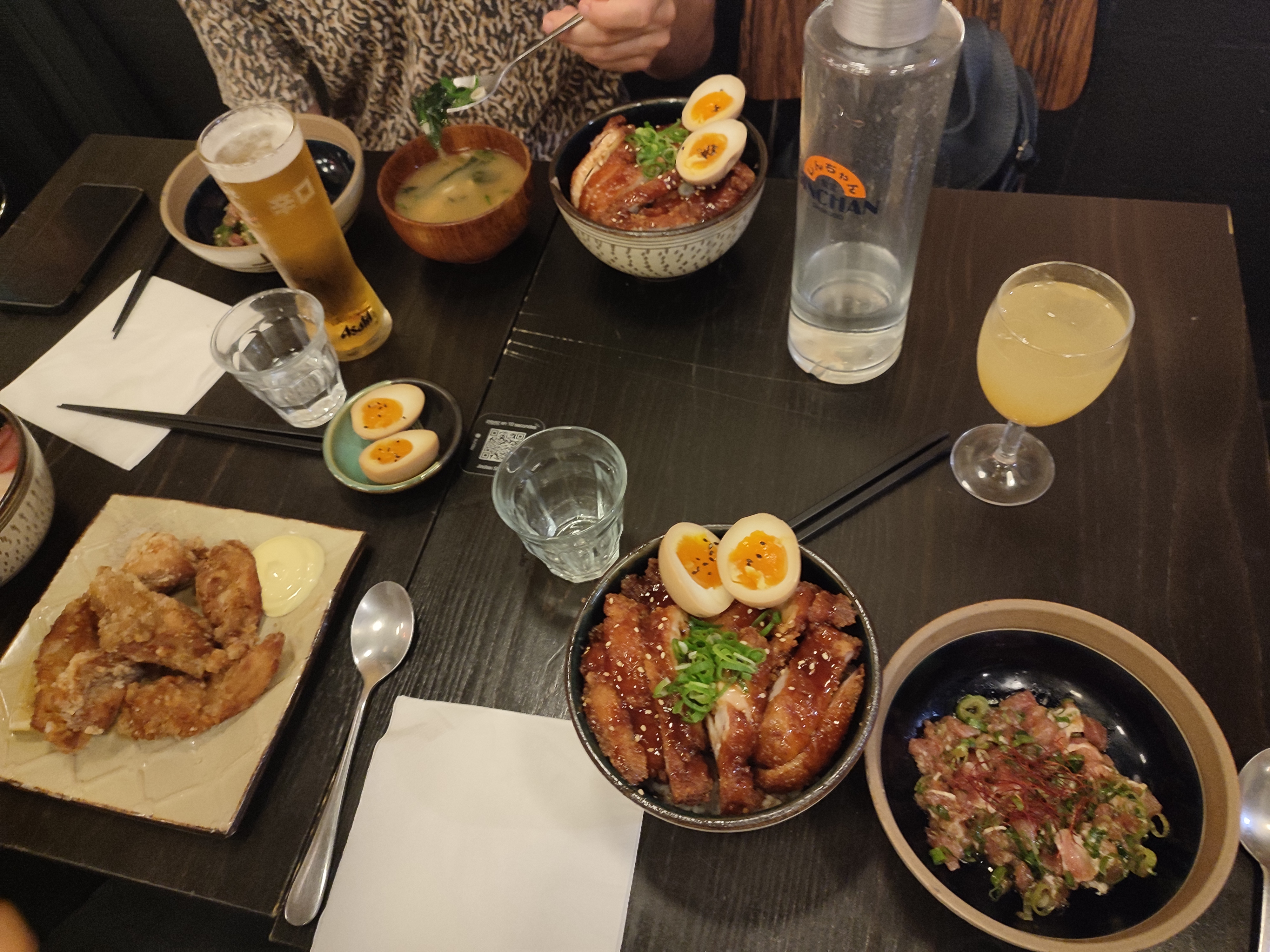 Le cadre du restaurant est très sympathique et nous met tout de suite dans l'ambiance des quartiers japonais ! Les plats sont très copieux, à l'exception de quelques petits détails : il manque un petit peu plus de sauce dans les plats contenant du riz et cela est dommage que les œufs marinés ne soient pas aussi coulant que je pouvais l'espérer... De plus, vous pouvez payer facilement votre addition (séparément ou ensemble) en scannant un QR code présent sur votre table, ce qui est très pratique !