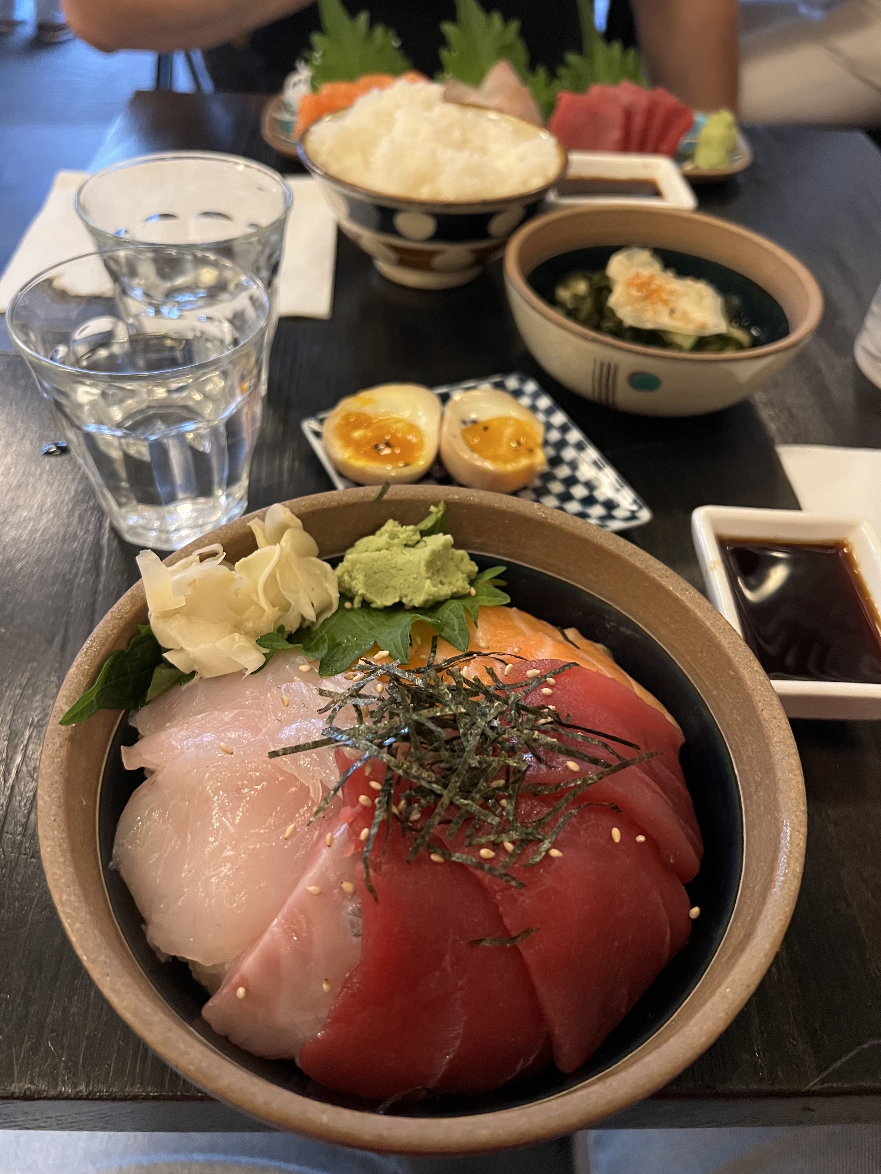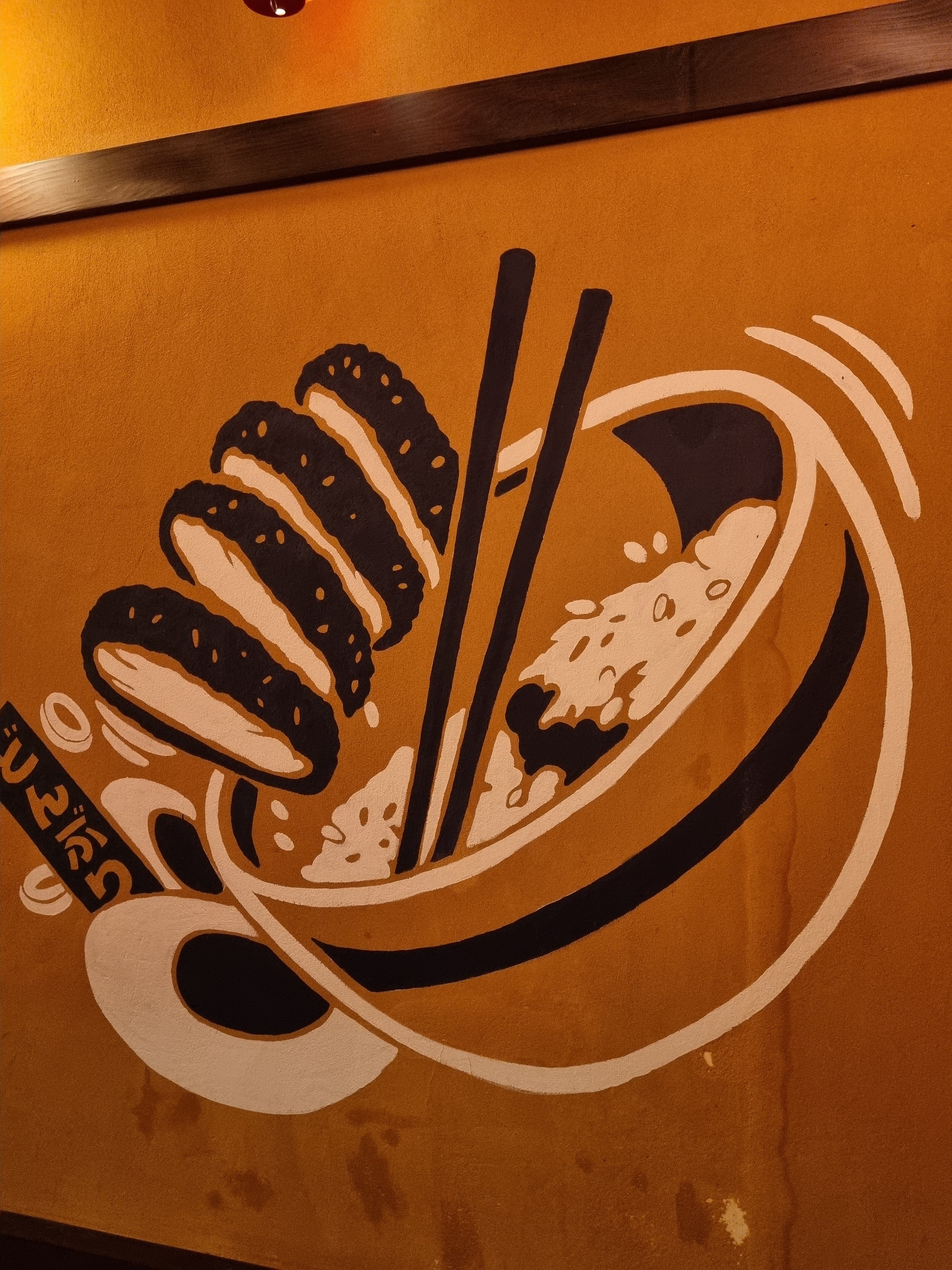 Ambiance détendue, authentique et sympa, sans délit de branchitude. Service accueillant attentionné et rapide. Déco unique et fun (et mention spéciale pour la fresque 360° des WC ! ...la pièce est une expérience en soi, j'y ai ri de joie :D ). Tous les plats que j'ai essayés étaient simplement bons, frais, simples et justes (saumon, daurade et beau thon tendres et doux, karaage léger et juteux, riz cuit juste comme il faut et assaisonné délicieusement, soupe miso copieuse et riche avec de vraies choses dedans, radis mariné croquant et rafraichissant avec une présentation poétique, aubergines grillées décadentes à souhait qui me font aimer les aubergines, thé hojicha froid parfait). Il y a bien des adresses japonaises guindées et chères à Paris qui ne font pas mieux. Vivement un prochain passage à Paris pour y retourner !