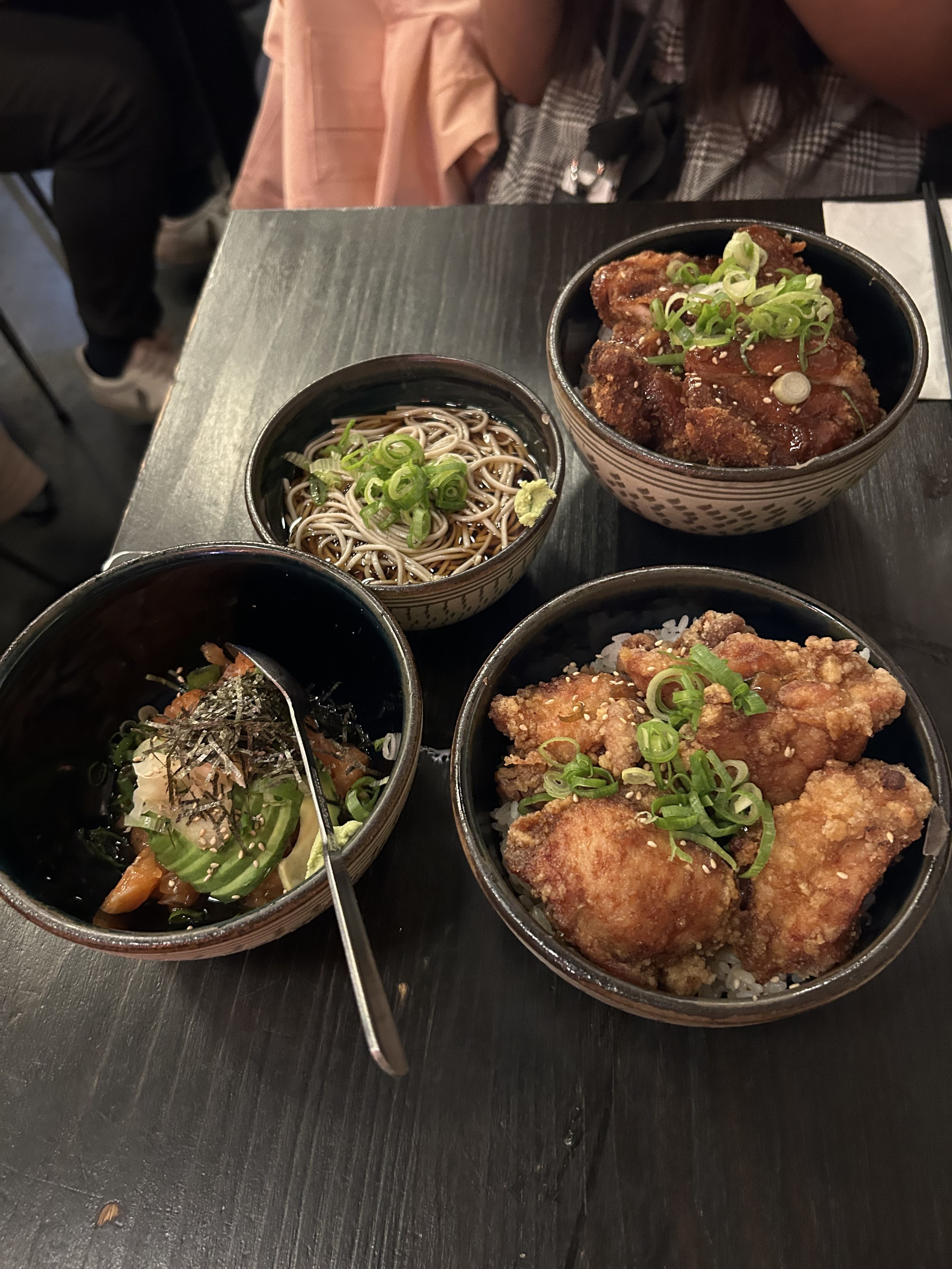 Délicieux et service impeccable. Karaage don super bon, poulet de qualité avec du goût. Kona soma tres bien fait, viande de canard bien tendre et bouillon parfaitement maitrisé. Je recommande le nanbanzuke en entrée (saumon frit). Je reviendrai avec grand plaisir