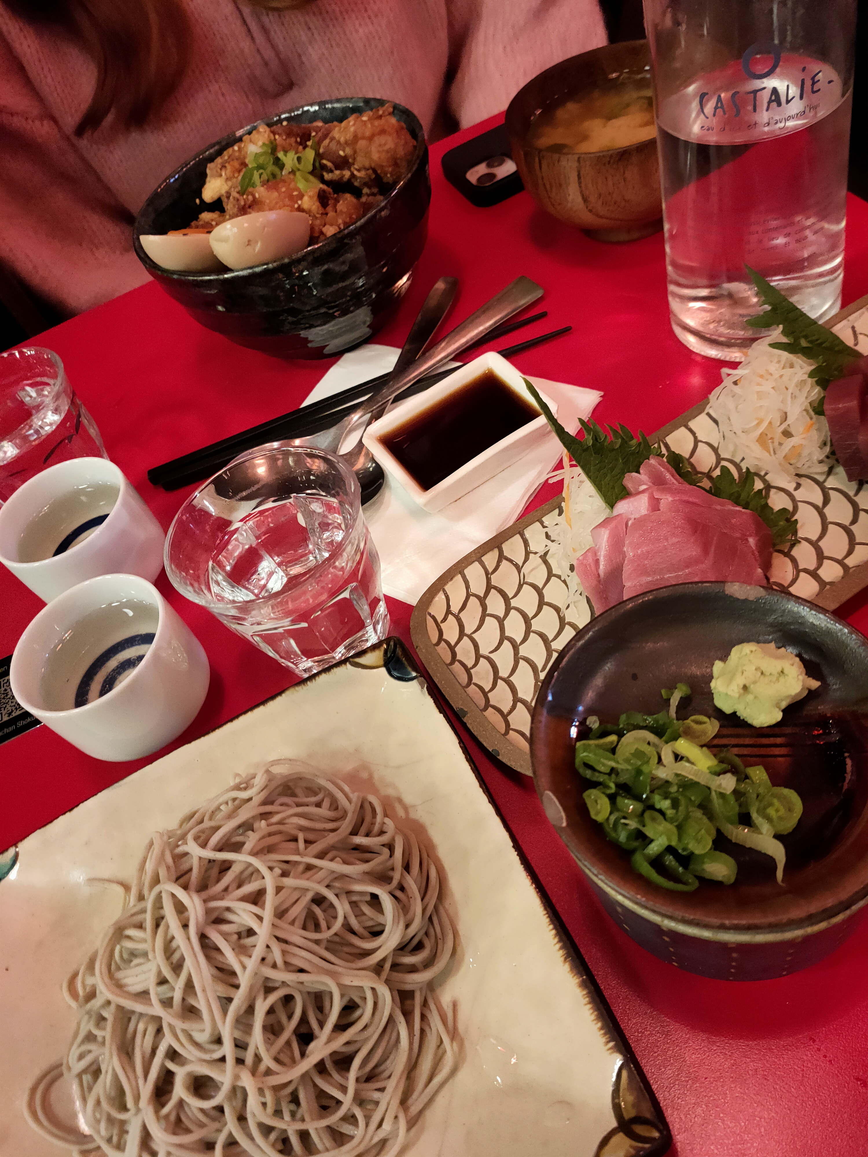 😋Finalement un resto à Paris avec de la vraie nourriture japonaise. Notre serveuse une très sympathique nous a fait découvrir leur dégustation de saké! Excellente. Je conseille le Maguro sashimi et le Kamo soba!
