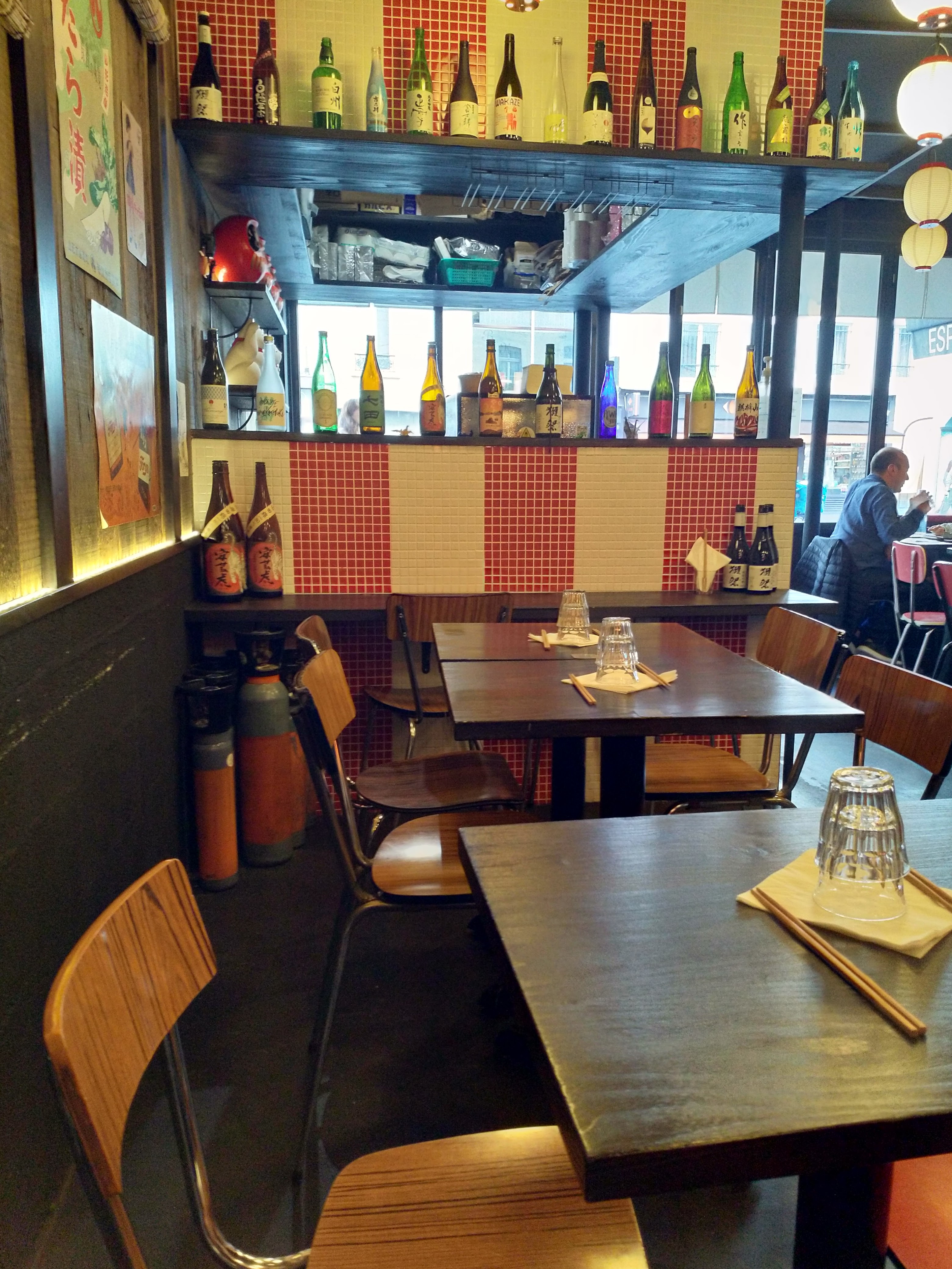 L'établissement a récemment changé de style, passant d'un décor épuré à un décor chargé et un peu cliché mais amusant. Côté nourriture, on retrouve des grands classiques de la cuisine japonaise, légumes pickles sunomono, aubergines marinées ou gratinées au miso, tofu mariné, soupe miso, poulet frit karaage sur bol de riz, etc. La sélection de saké japonais est également sympathique. Tout est excellent pour un prix tout à fait raisonnable. N'hésitez pas à y faire un tour !
