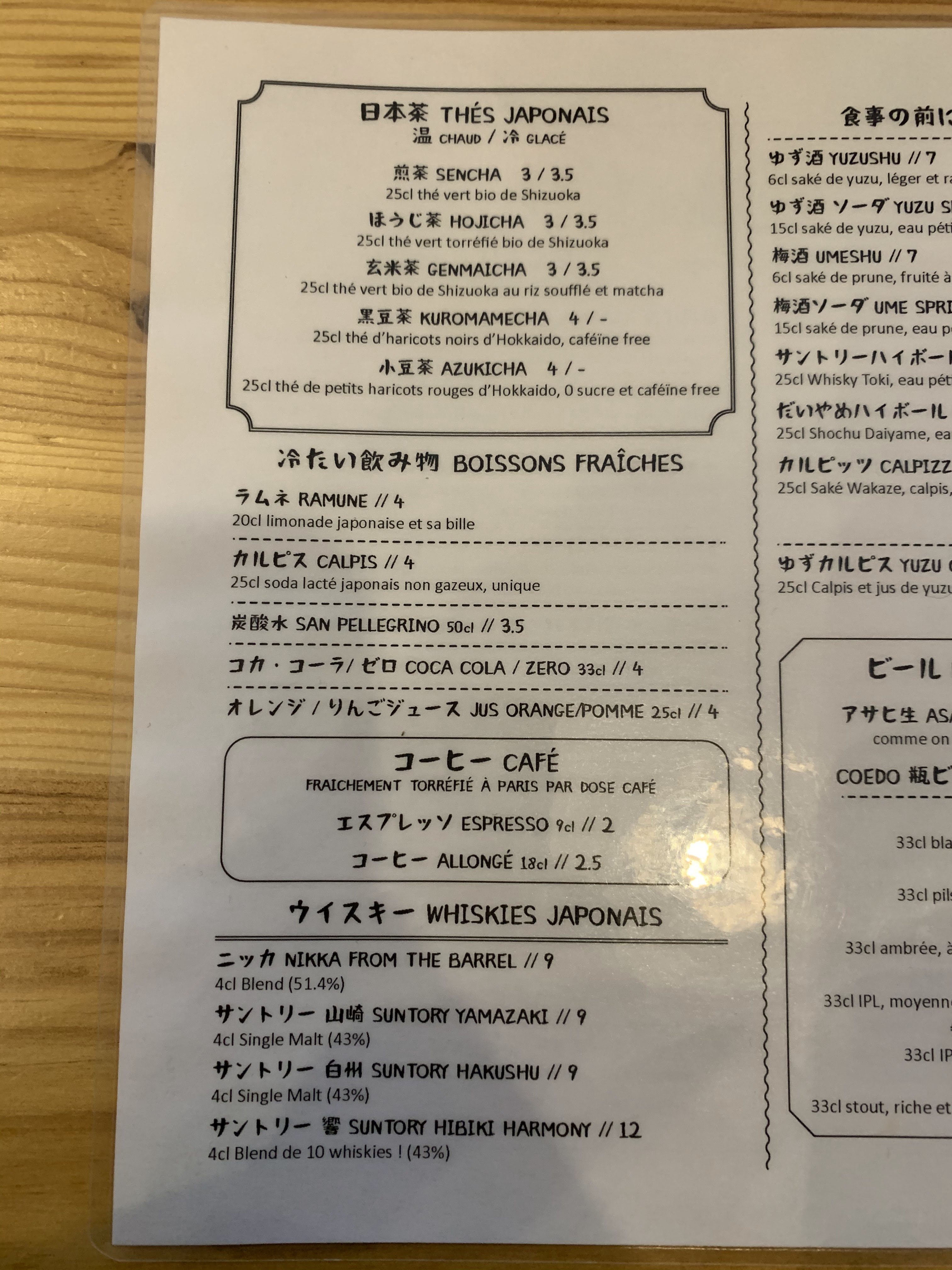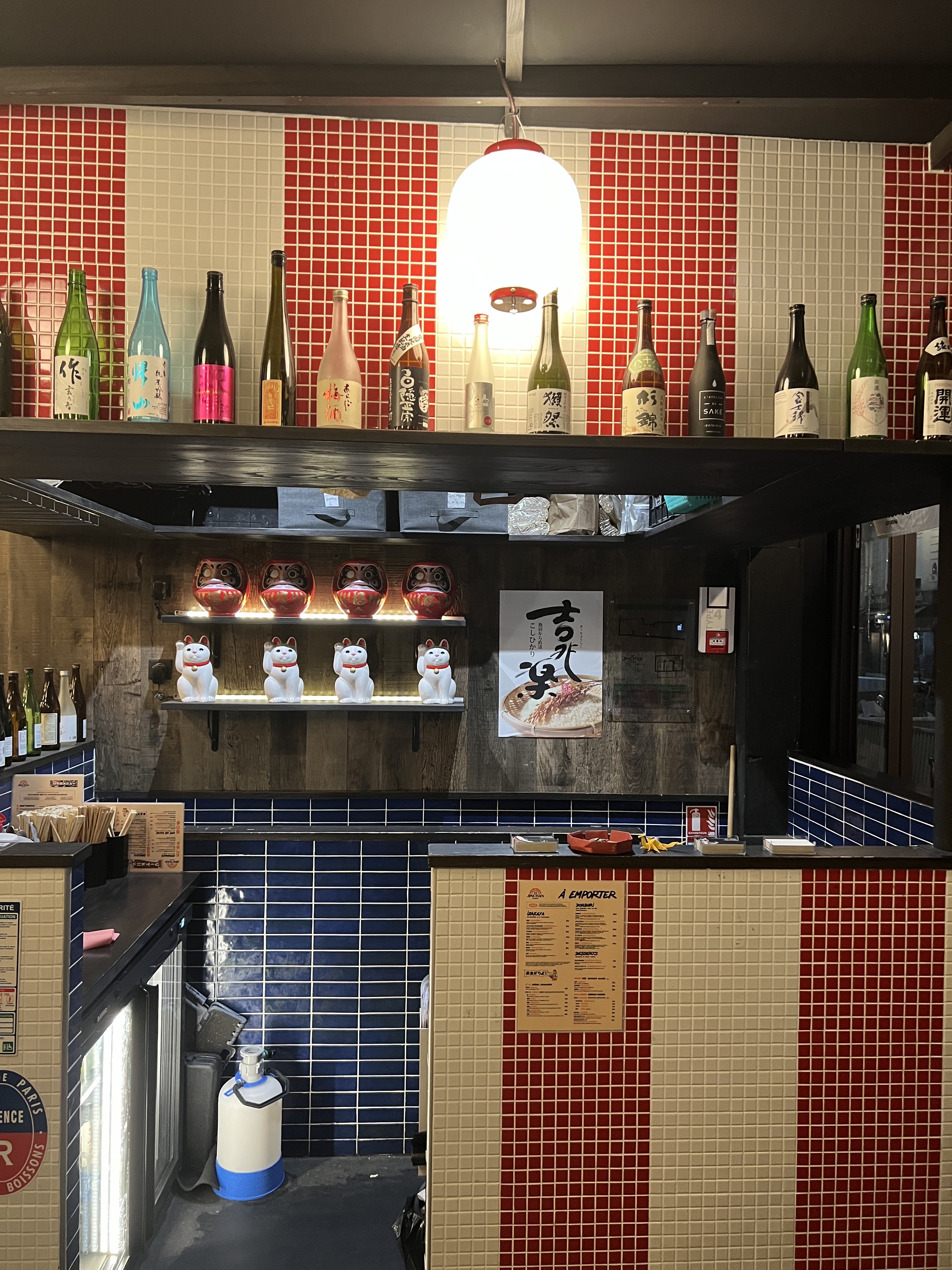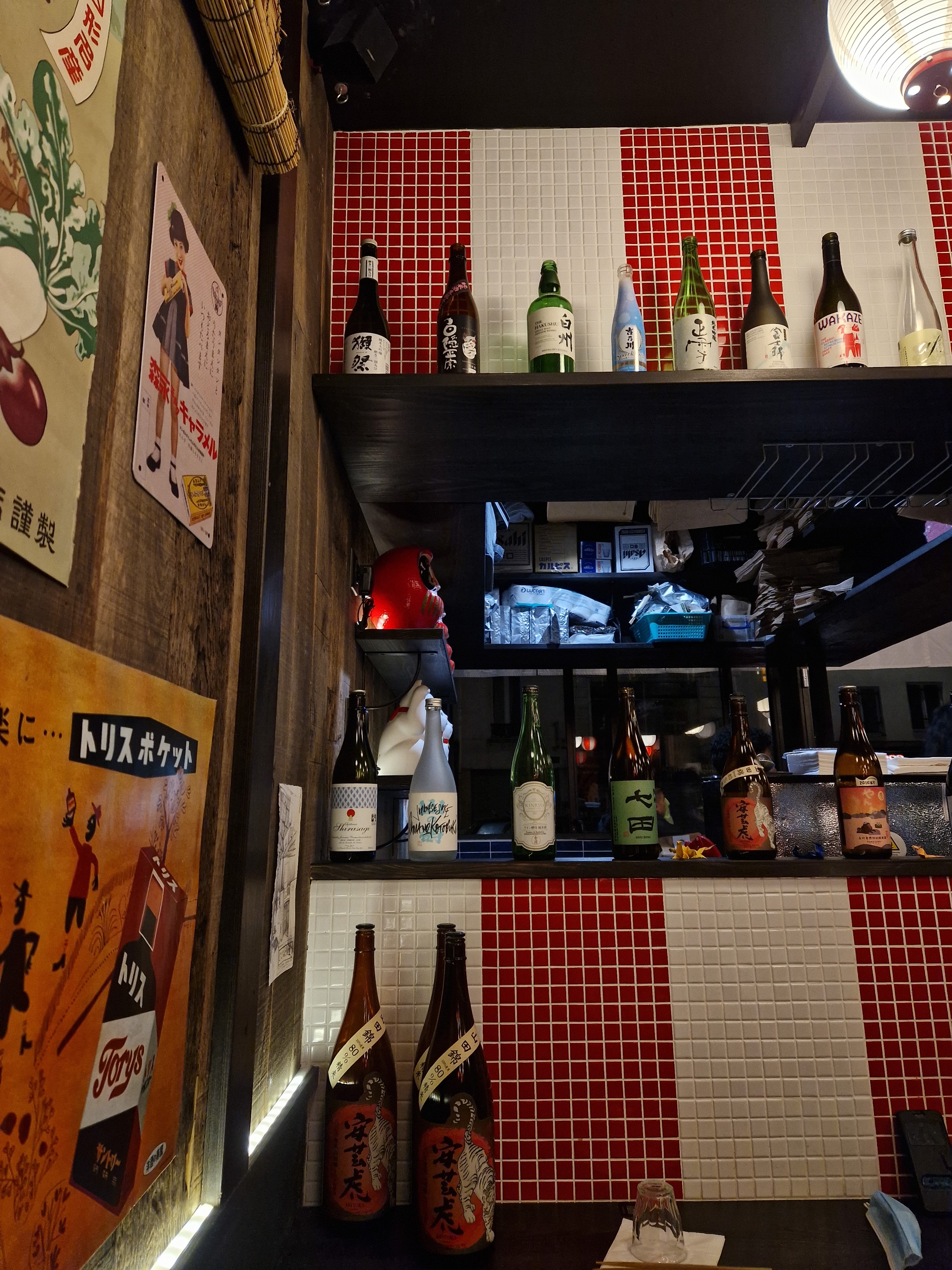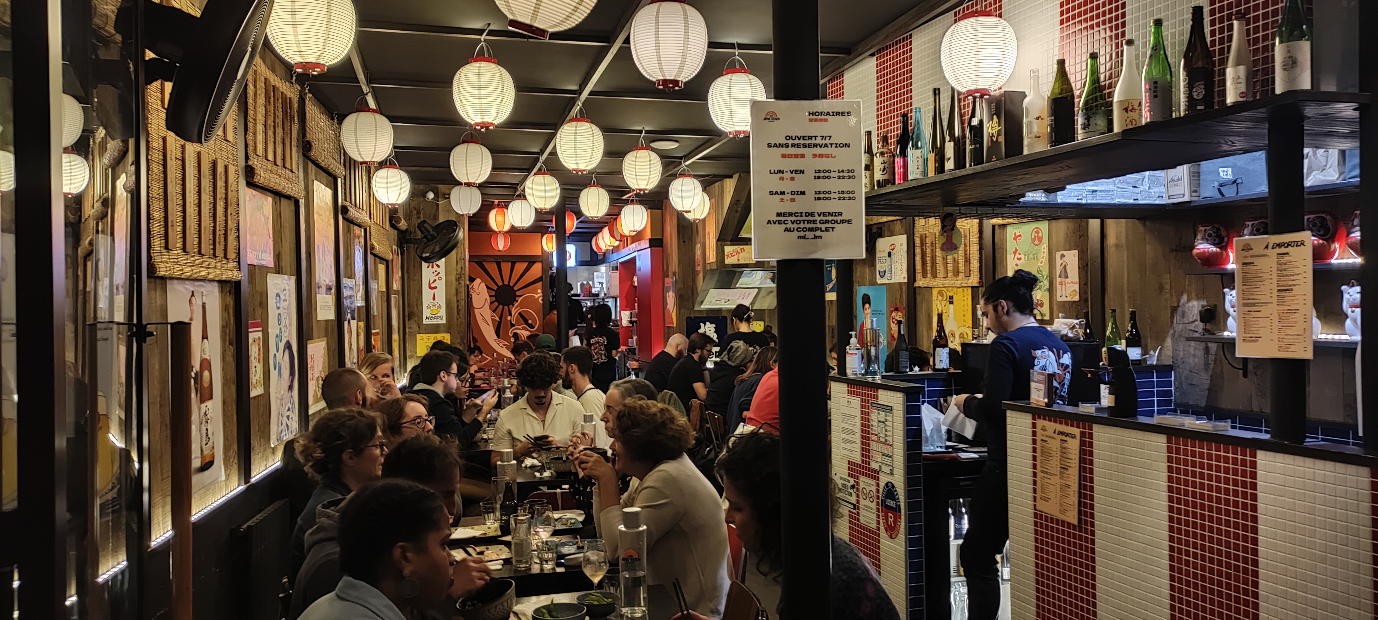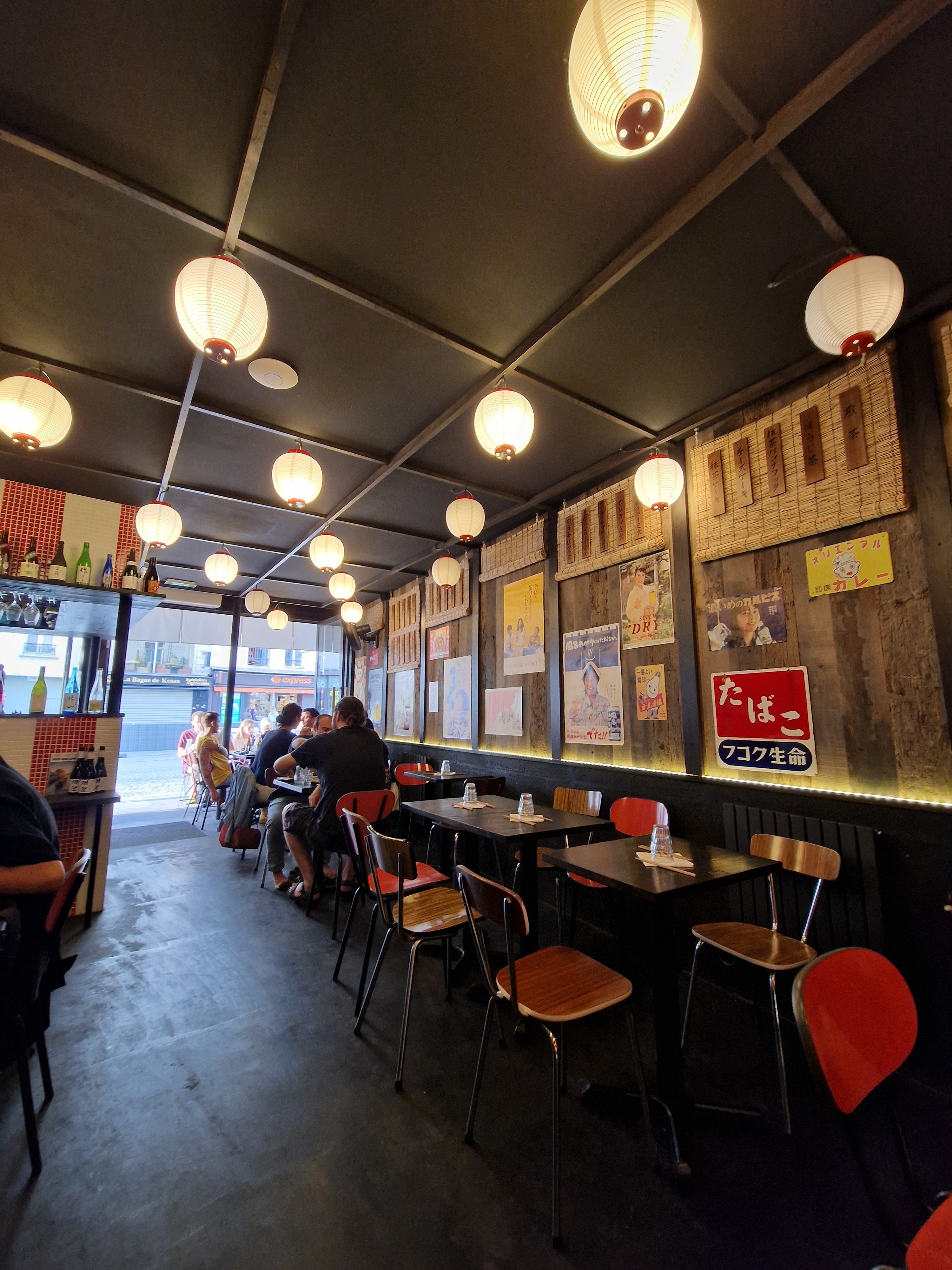 Ambiance rétro très assumée pour cette izakaya parisienne à la carte généreuse. Ici, tout est bio/local ou importé et surtout super bon ! ^^ L'accueil est agréable, le service ultra rapide et sympathique, la fraîcheur des produits est évidente et le riz est cuit à la perfection. Même le wasabi est excellent ! ^^ Large choix de bières japonaises et de sakés pour accompagner les plats individuels ou à partager. Petit plus : possibilité d'acheter du thé (sencha, genmaicha et le plus compliqué à trouver depuis quelques temps hojicha) et des goodies (dont des tee-shirts du restaurant parfaitement réjouissants) Que dire de plus ? Nous reviendrons ! :) A noter: aucune réservation possible. Premiers arrivés, premiers servis (mais honnêtement nous n'avons pas attendus très longtemps)