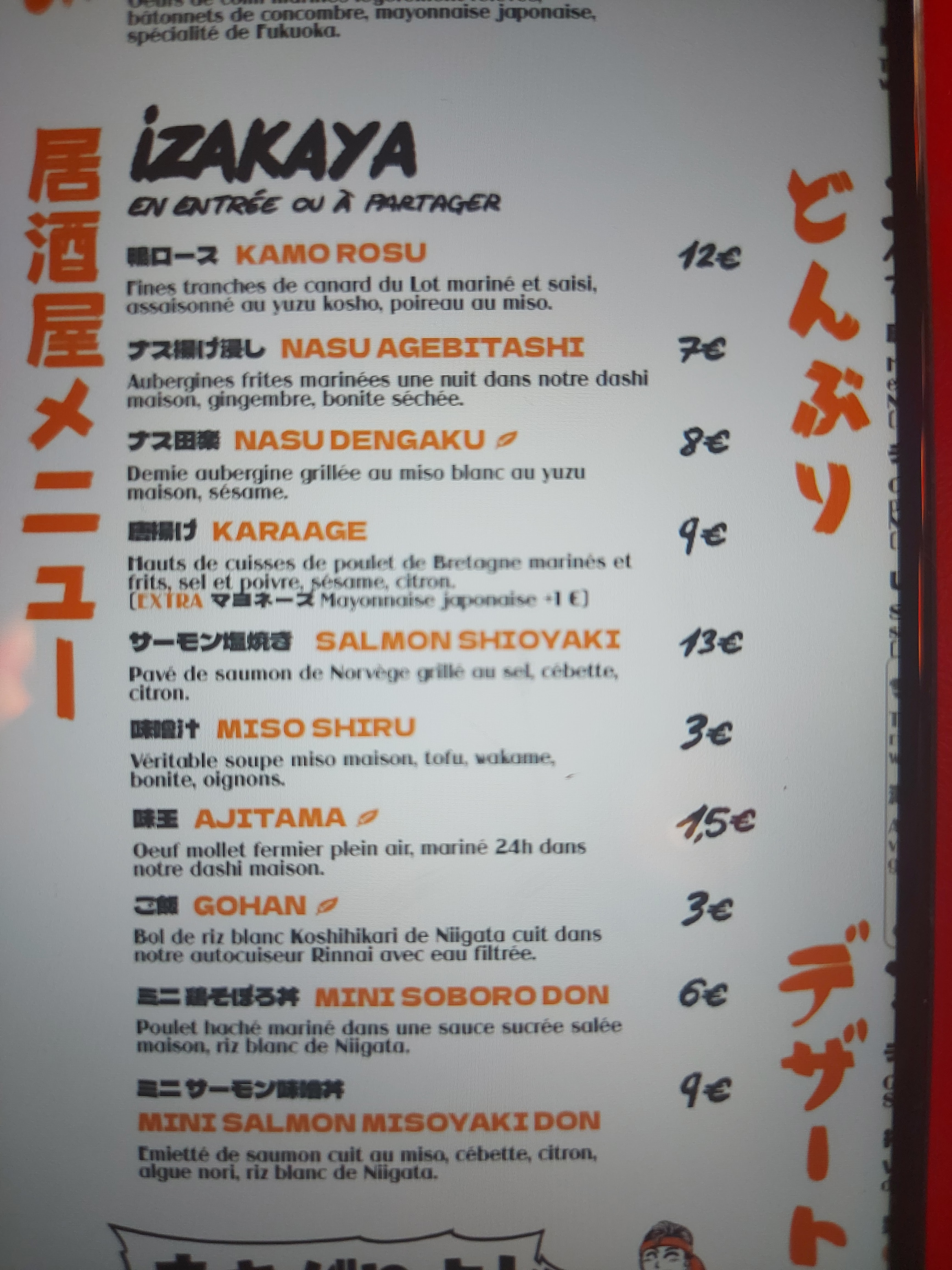 Au top ! C’était vraiment délicieux ! Le cadre était géniale et le personnel super sympathique ! Nous avons pris des karaage (poulet frit) et aubergine en entrée ! Puis pour ma part j’ai pris le salmon don (qui était juste incroyable) et ma compagne un Katsu don au poulet (j’ai pas pu m’empêcher de lui en prendre un peu 😅) En dessert j’ai pris les gâteau au chocolat Hoji qui était succulent ! Rien a dire a part superbe expérience, on se reverra bientôt 😁 Je vous le recommande !