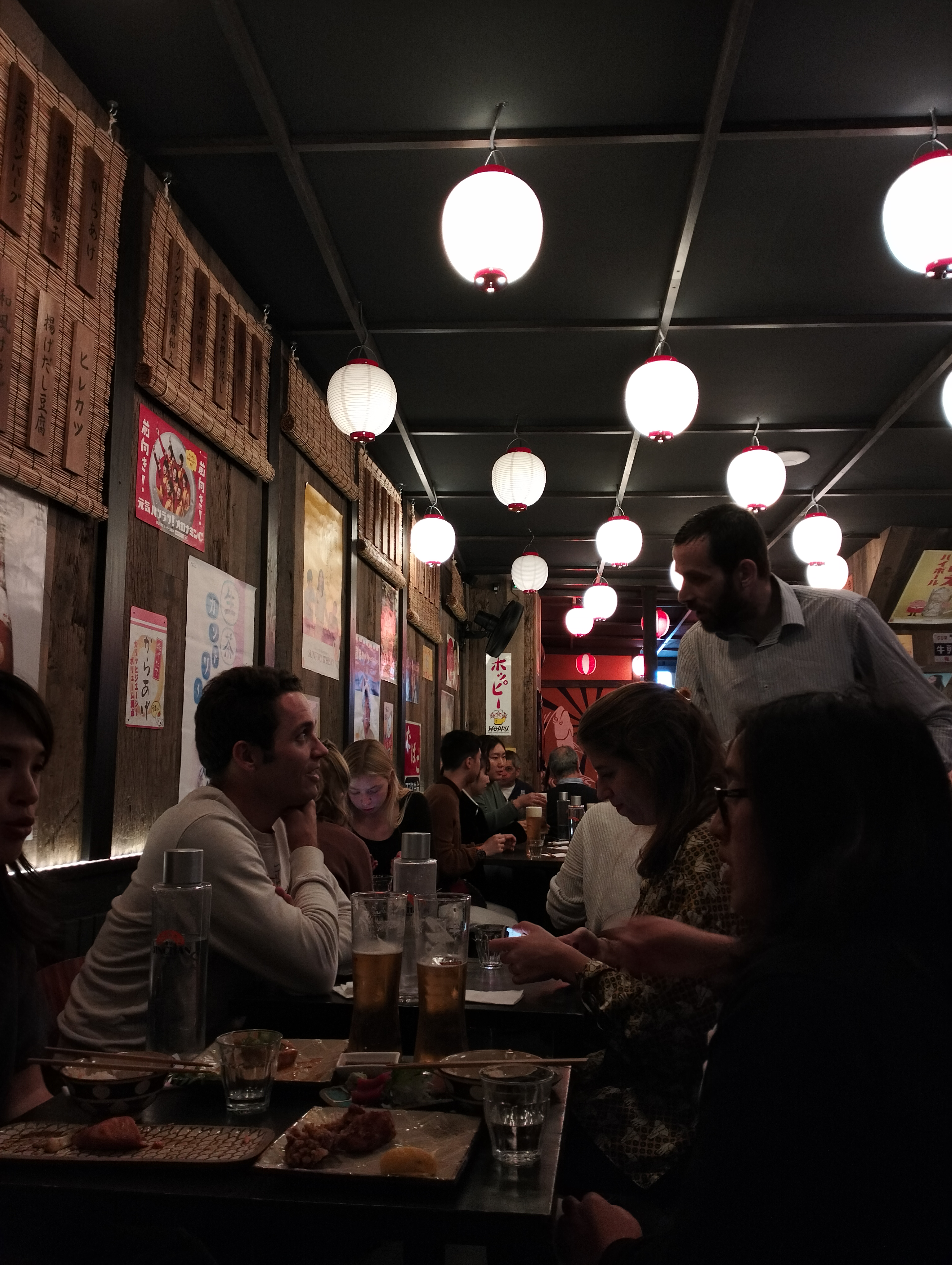 On est très très loin d'un véritable izakaya. Il s'agit d'un restaurant japonais certes mais rien à voir avec l'ambiance, les plats et les prix que l'ont peut trouver dans les izakaya japonais. La nourriture n'est pas exceptionnelle, plutôt chère et pour gagner du temps la totalité de vos plats vous seront servis en même temps. L'endroit est très bruyant, exiguë et pas vraiment convivial. La décoration est sympa mais c'est le seul point positif que je retiens de mon passage dans ce restaurant qui n'est rien de plus qu'un restaurant japonais moyen qui a su faire sa communication sur les réseaux sociaux. Passez votre chemin, cette expérience n'a aucun intérêt.