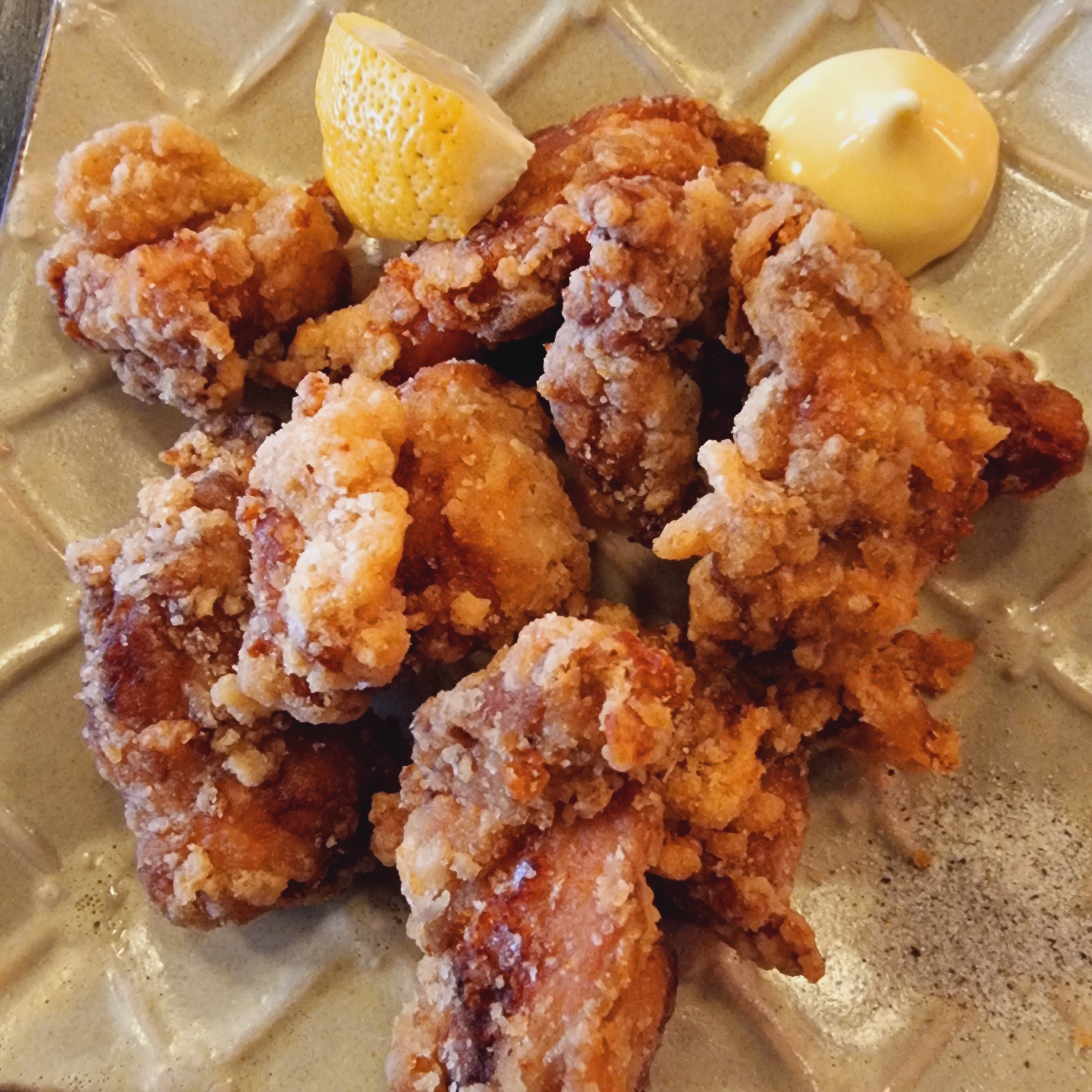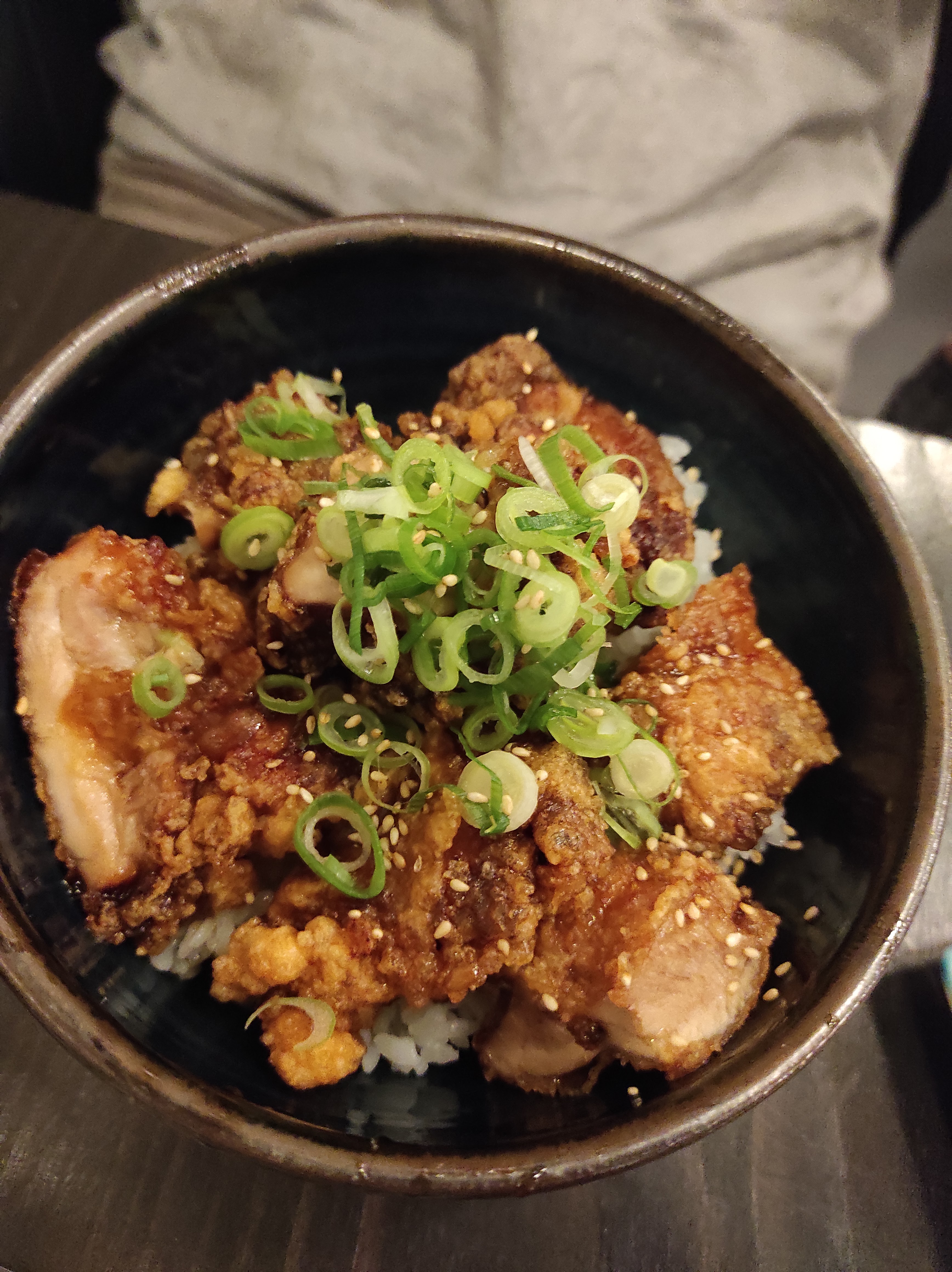 Petite cantine qui reprend le décors d'un bar izakaya japonais. La déco est super, le service sympathique et rapide. Mais ça manque un peu d'authenticité dans l'assiette. Bol ébréché, morceaux bien trop gros et tièdes. Le karaage est servi en bouchées au Japon. Mais le poulet était moelleux et parfumé. Riz ok. Et bonnes quantités. Surprise aussi du choix limité des plats sur la carte et des prix élevés au vu de l'offre. Expérience vécue, mais je n'y reviendrai pas, ce n'est pas ce que j'attends d'une cantine et pour moi il ne rentre pas dans la case de l'izakaya non plus.