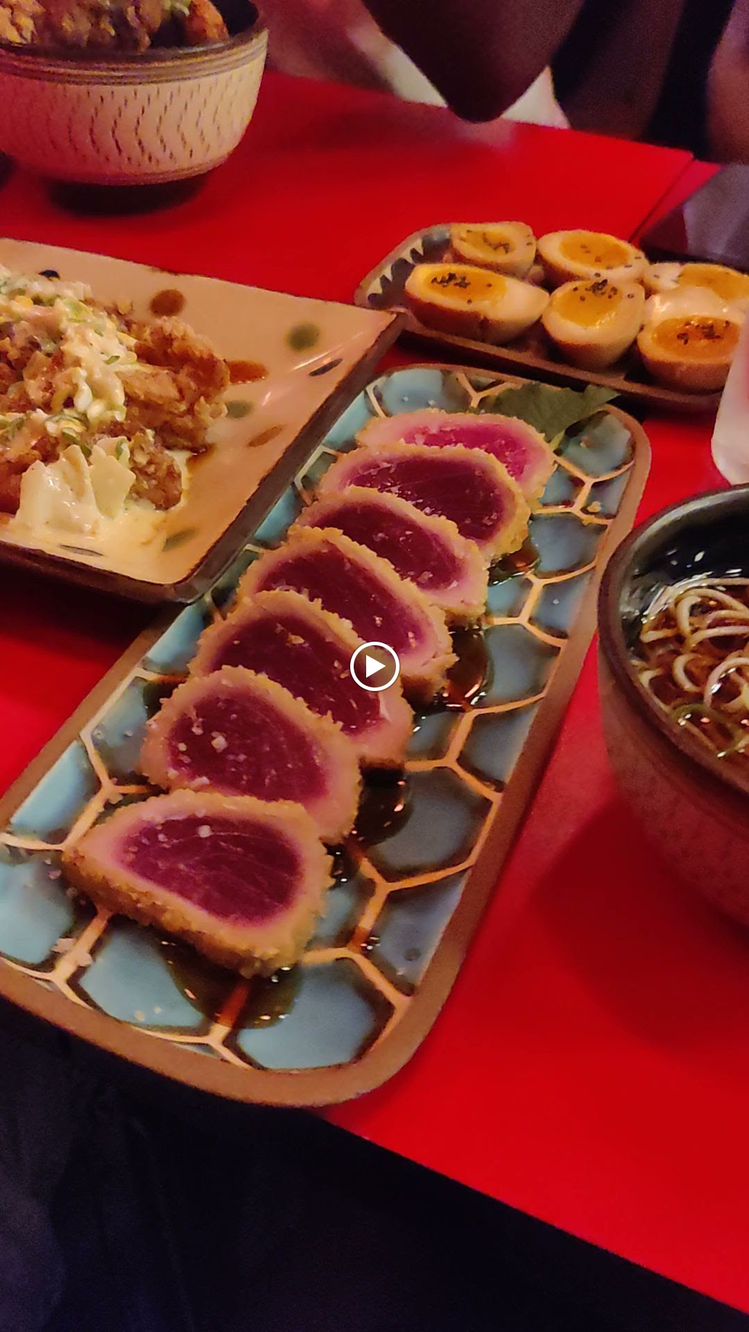 Bonjour victoire ! Merci pour vos compliments ! On est ravi que vous ayez apprécié les spécialités de notre izakaya ! 🇯🇵 Encore désolé pour la rupture sur les ajitama (oeuf mollet) et certains sakés … 🙏 Depuis les ajitama sont encore meilleurs suite a une amélioration de la recette et nous avons commencé l’import en direct de saké donc fini les ruptures ! Au plaisir de vous accueillir à nouveau dans notre restaurant japonais traditionnel pour les tester ! 🙌 Jinchan Shokudo じんちゃん食堂