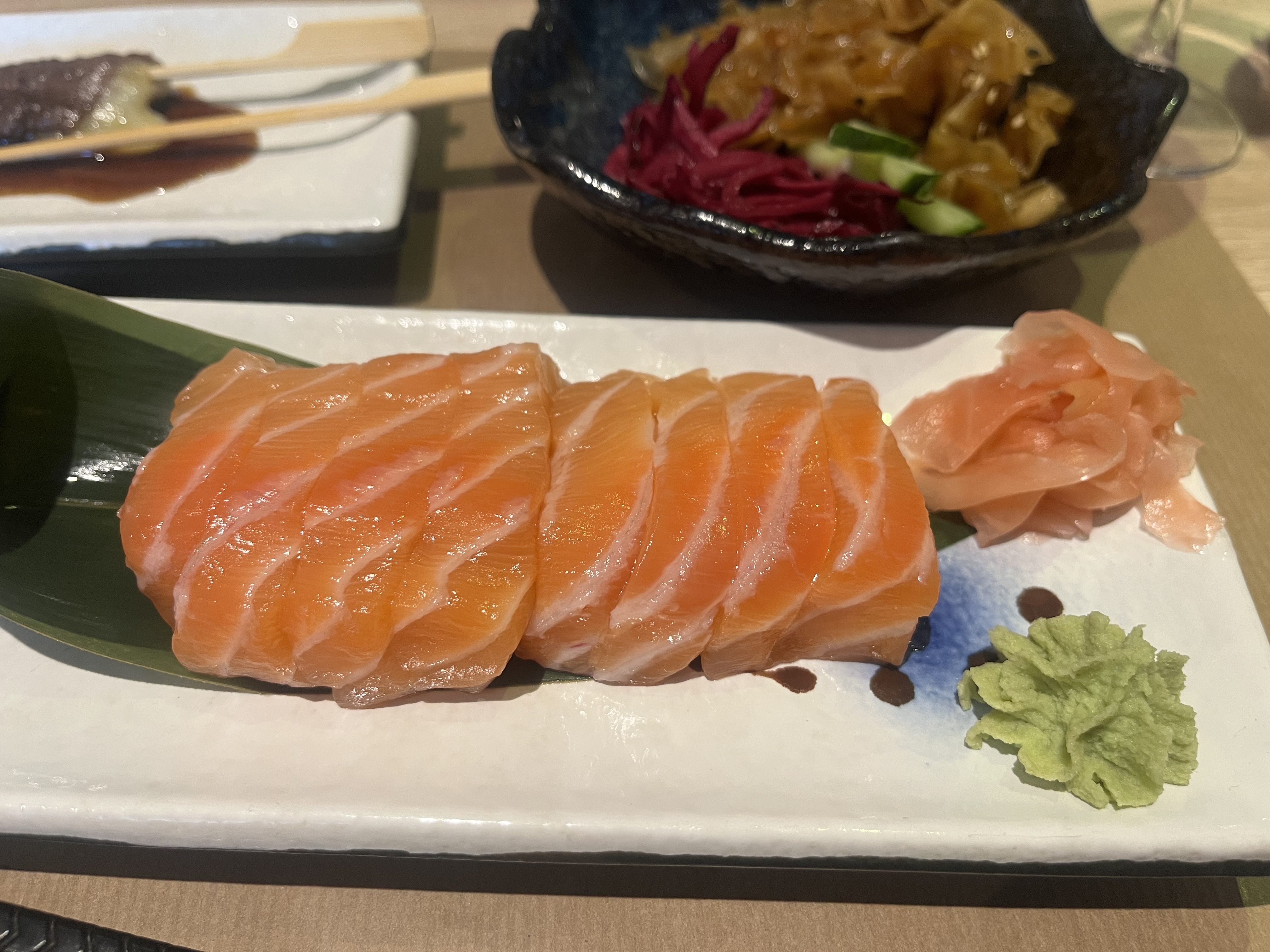 Sushis et plats très bons malheureusement l'attente est trop longue, sur les 3 fois où nous sommes venus , il y a 2 fois où nous avons choisis des plats chauds et là c'est la catastrophe, les entrées et les plats n'arrivent pas en même temps ( entrée pour une personne et le plat en même temps pour une autre personne ) chaque personne mangeant son plat seul s'il le veut chaud ,c'est vraiment dommage car c'est délicieux et le prix est attractif. Nous avons eu très froid et avons dû garder blousons et écharpes :( Nous l'avons dit et la serveuse s'est excusée.