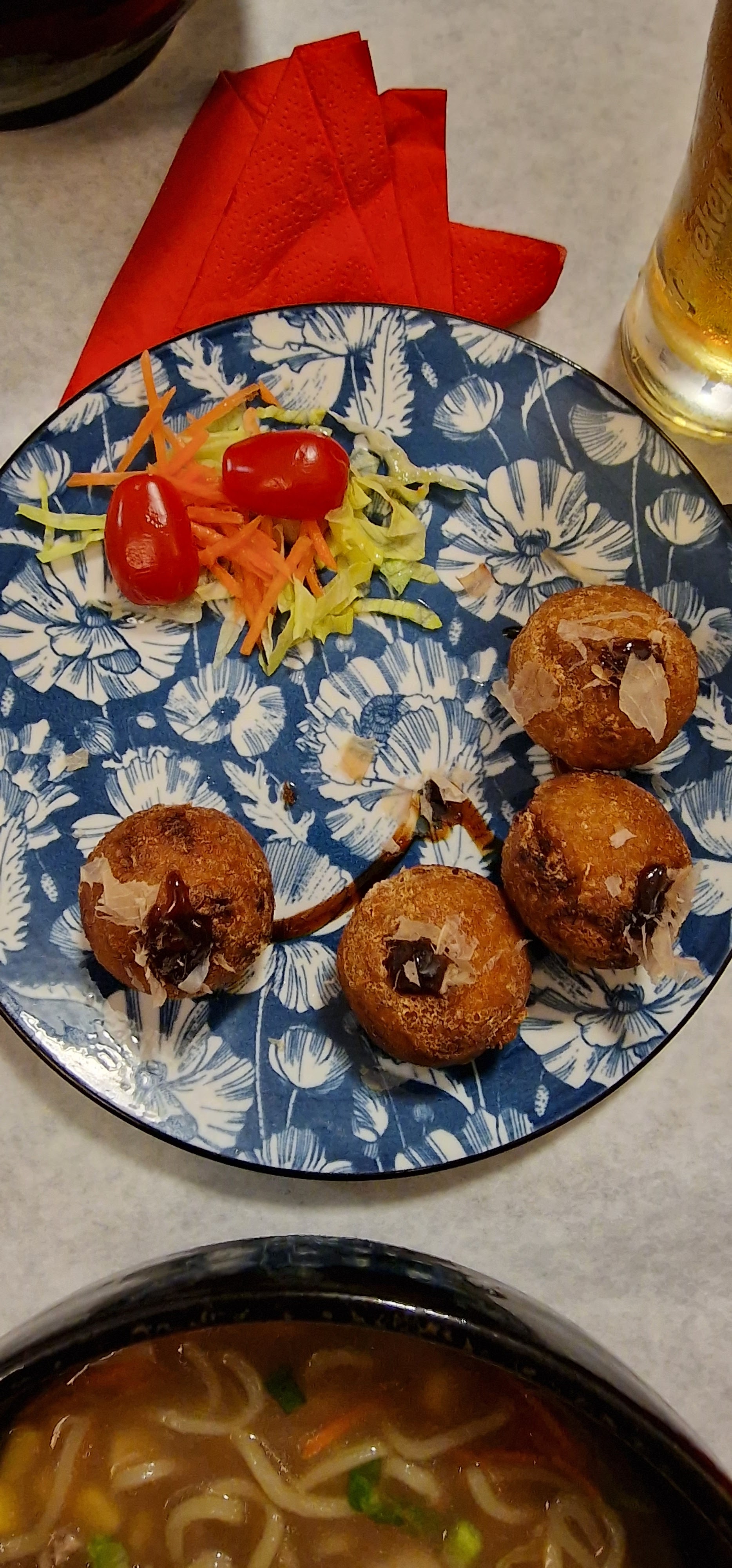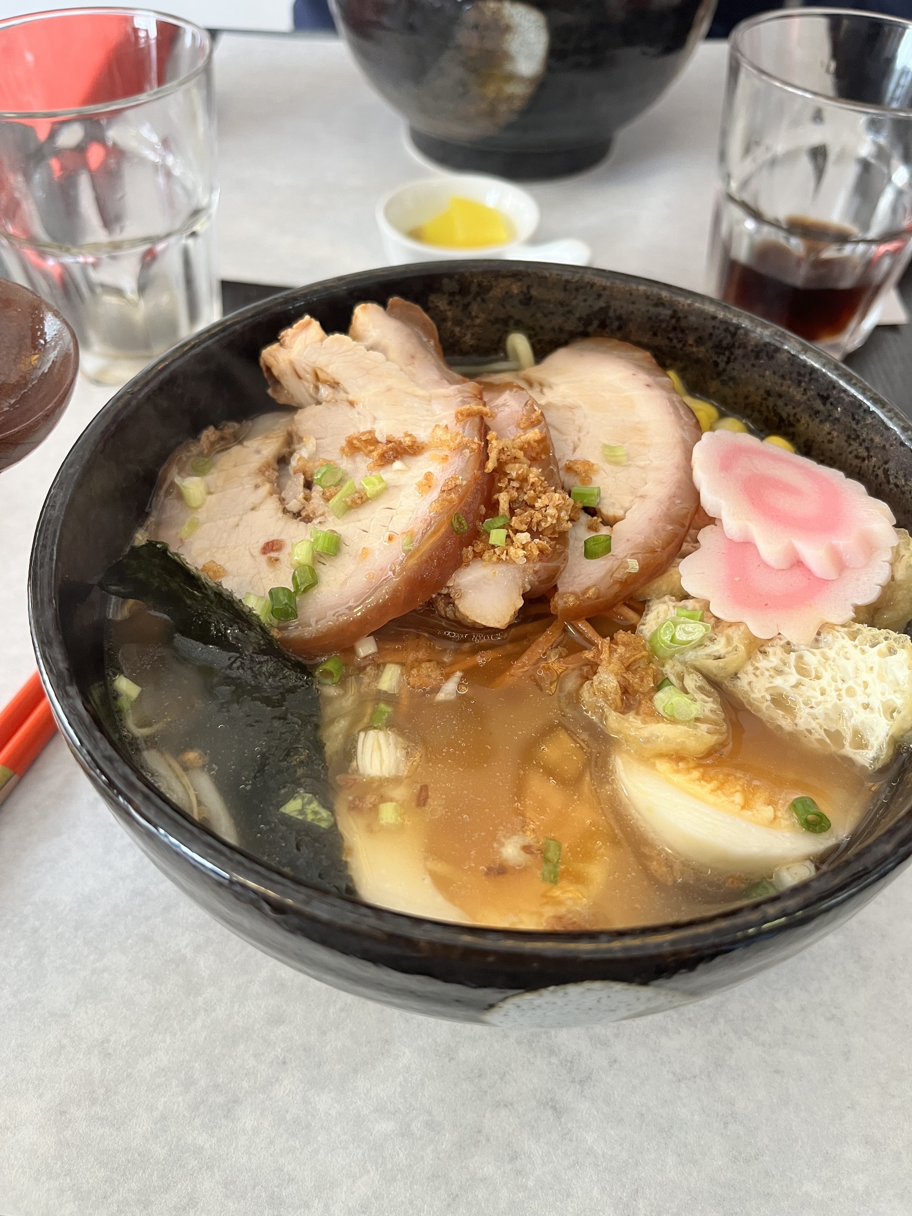 J’ai découvert le ramen au porc et le takoyaki c’était bon mais je n’ai pas de référence de comparaison c’était ma première expérience. L’accueil était très agréable côté ambiance bah nous étions que deux dans le restaurant donc très calme le service rien à redire.