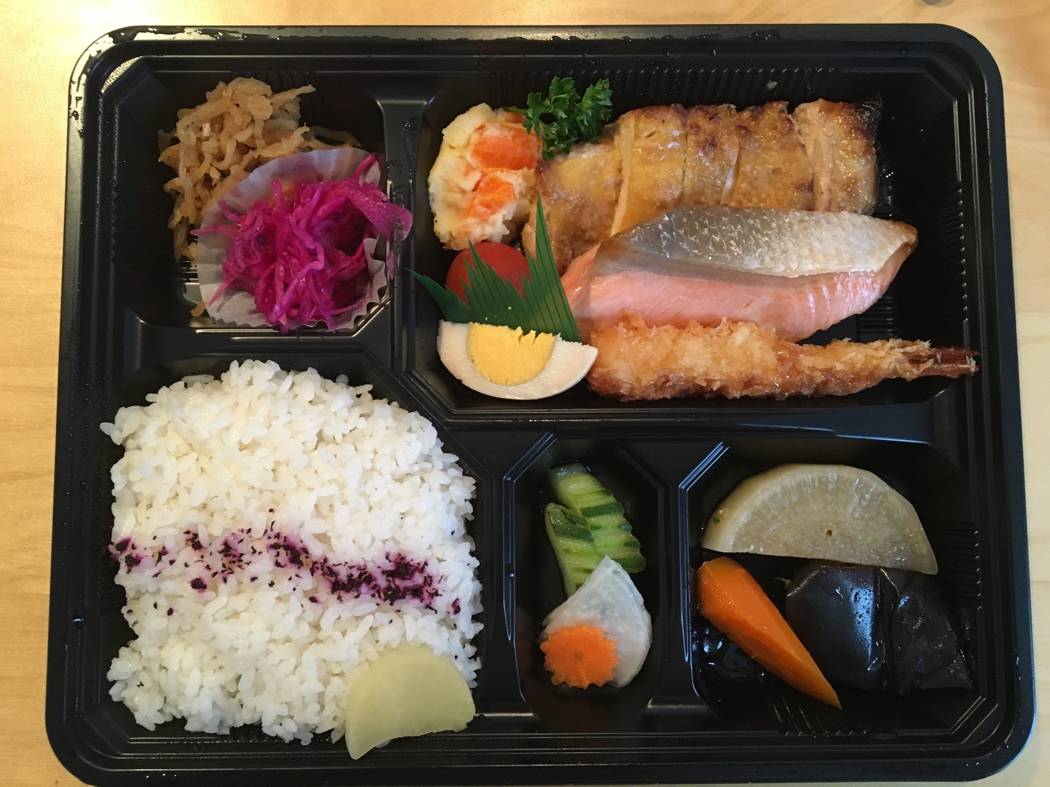 Quel délice ! C'est vraiment agréable de la cuisine japonaise faite maison! Les vendeuses sont tres gentilles. (Un bento version végétarien est disponible :) )