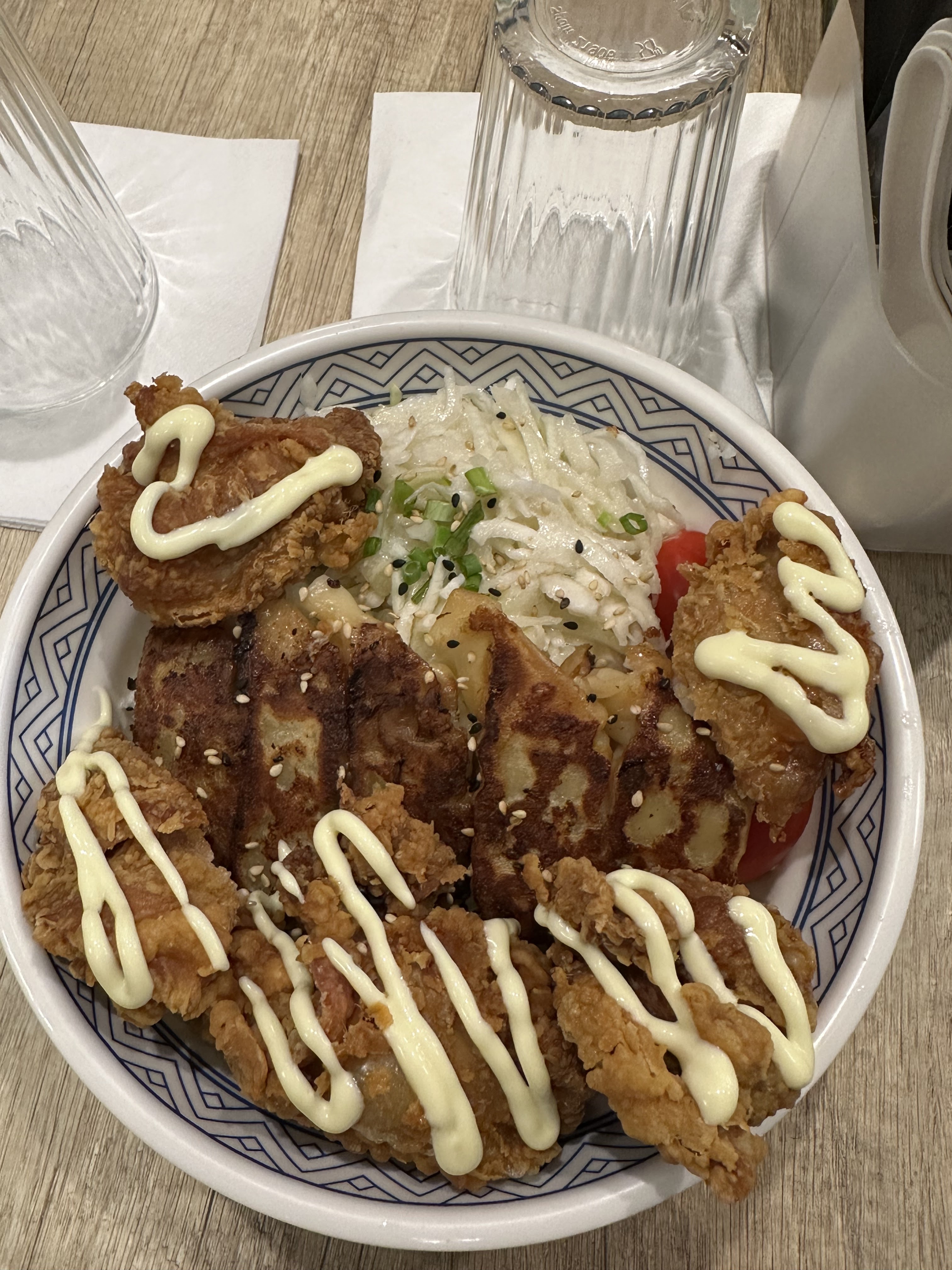 Gyōza et poulet frit ok pour un prix raisonnable. Les nouilles sont vraiment pas bonnes par contre. Texture toute molle, trop cuite, la sauce est collé. C'est dommage. Le riz est OK.