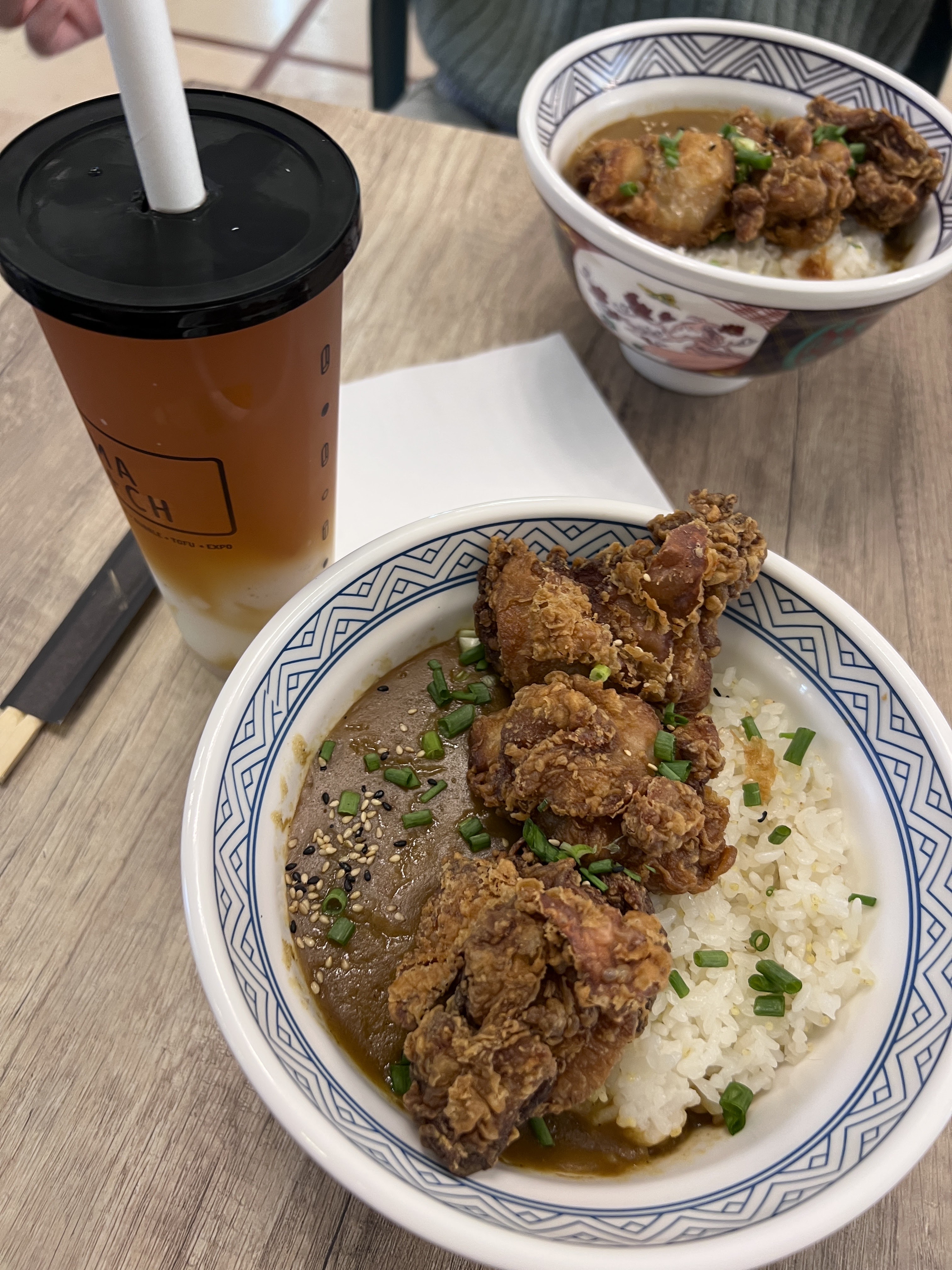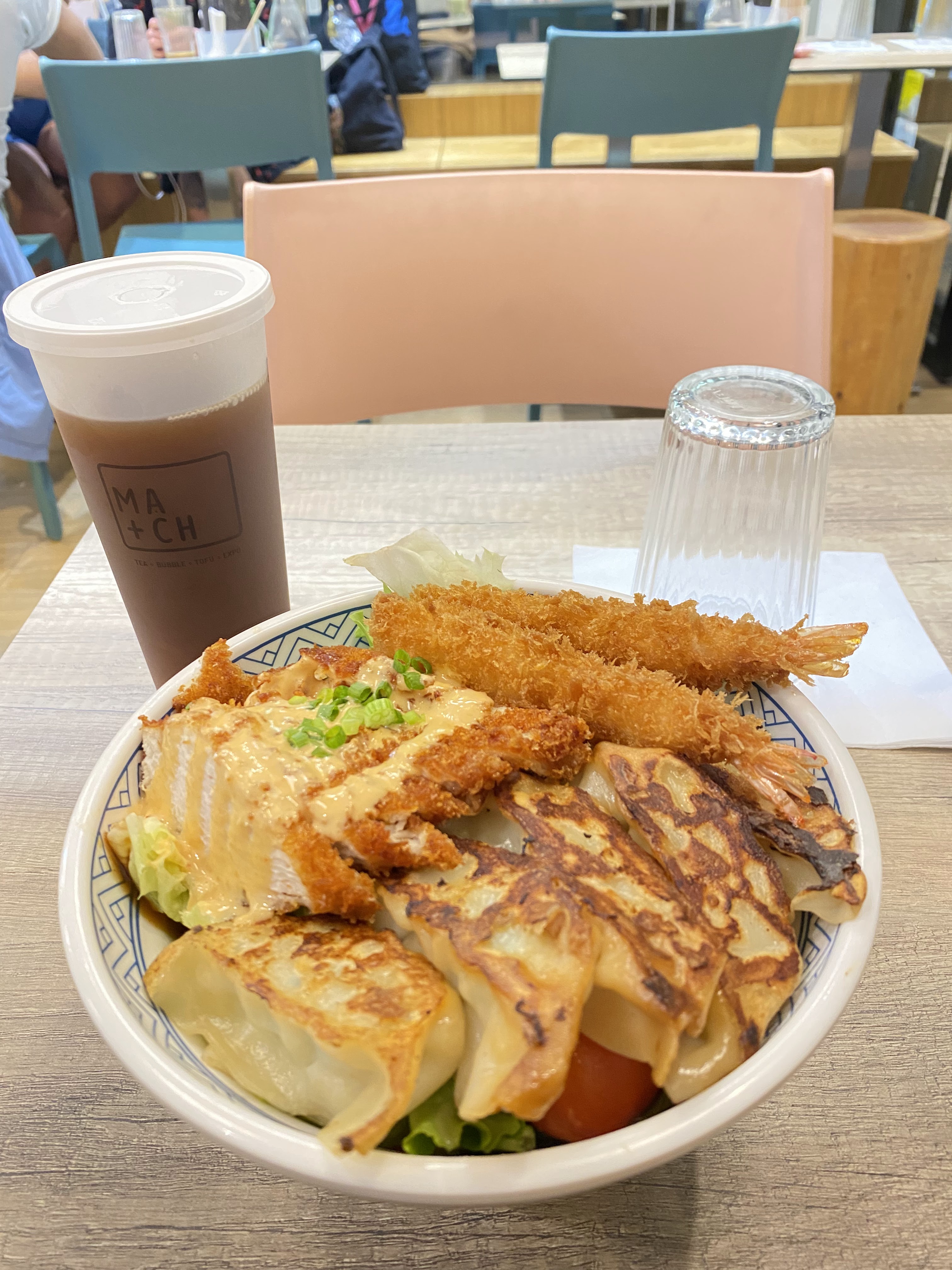 Nous avons d’abord essayé le Bubble Tea. Ensuite nous sommes revenus pour Donburi et Bao aux crevettes. C'était au-delà du ciel. Je reviendrai certainement. Donburi et 2 Baos que nous avons partagés pour deux adultes. Certainement assez. Le Bubble Tea était du Matcha Latte 🤤🤤