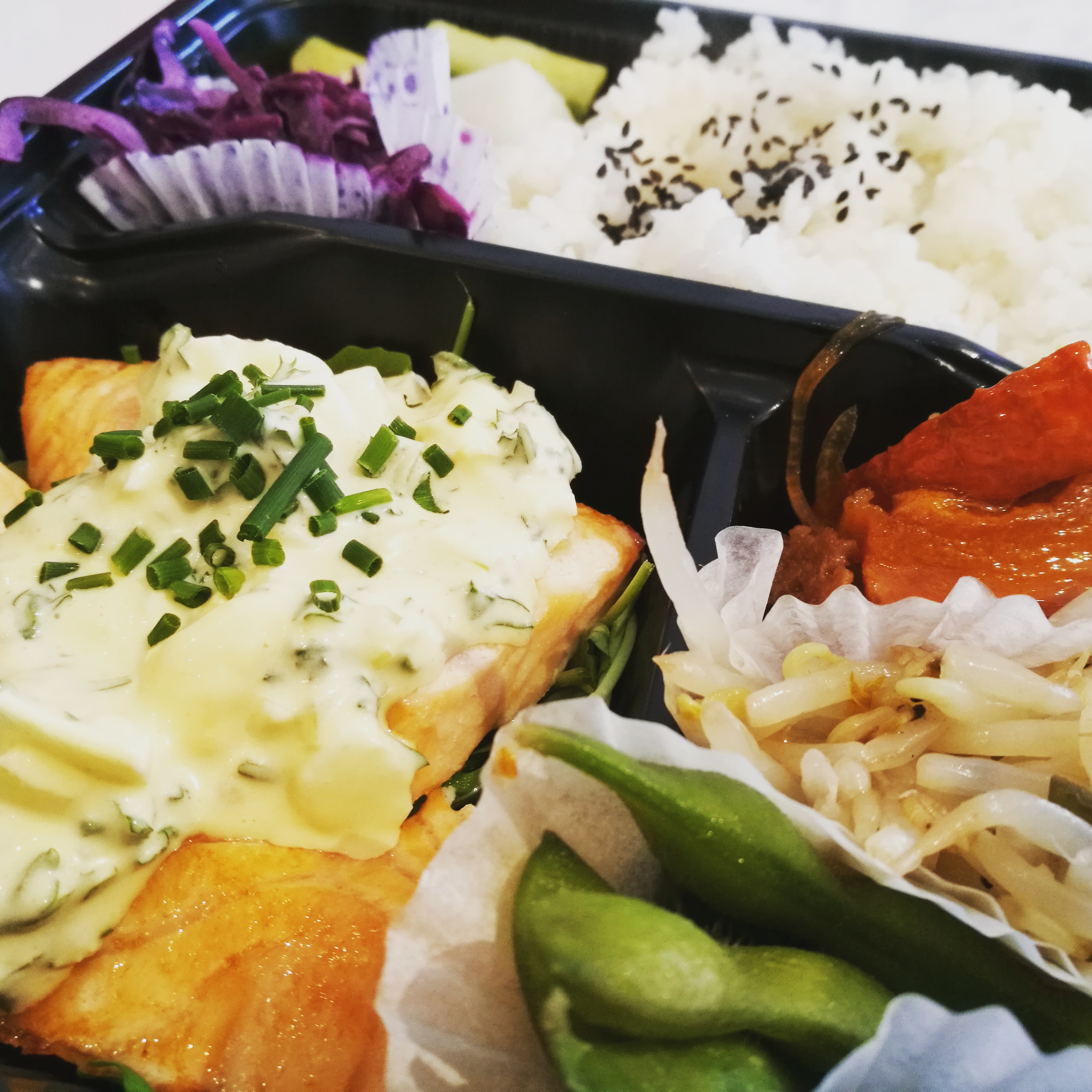 Très bon bento à emporter. déjeuner satisfaisant.