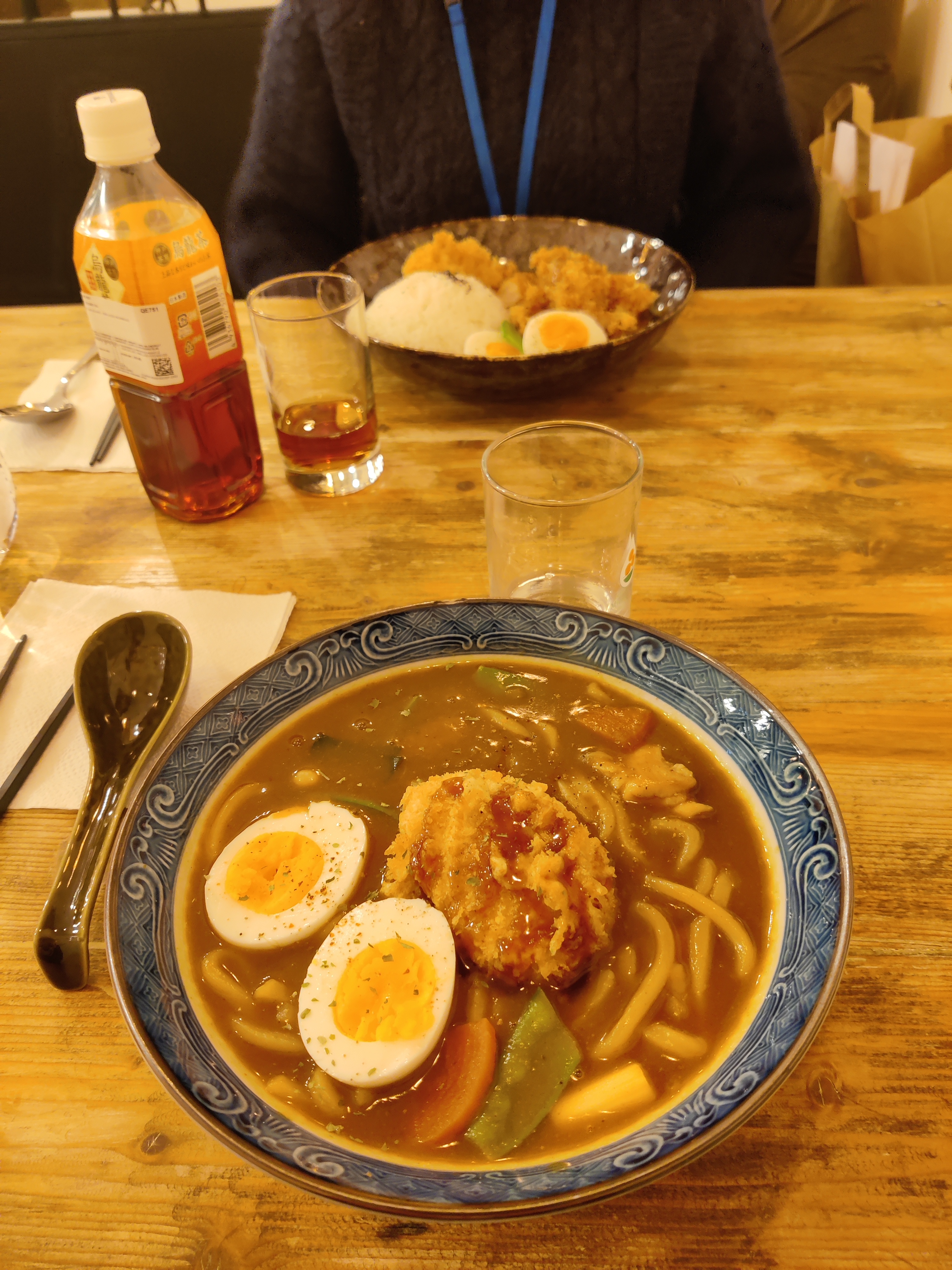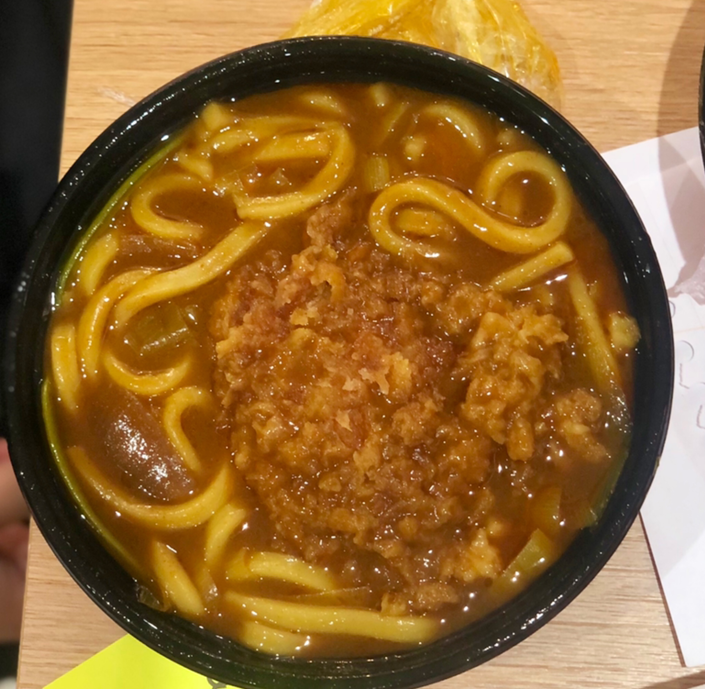 Nous avions passé une commande à emporter et cela fut livré très bien couvert puisque rien n’a été renversé! Le karaage piquant ne l’est pas beaucoup et est même un peu sucré ce qui le rend facile à manger. Le udon est très crémeux avec la sauce curry et la croquette de pomme de terre, on peut dire que ça glisse tout seul. La croquette est fondante, on dirait une purée de pomme de terre à la crème à l’intérieur. Et le curry au poulet pané est très généreux en poulet et le curry en lui même est bien assaisonné. Très bonne expérience, je vous le recommande vivement.