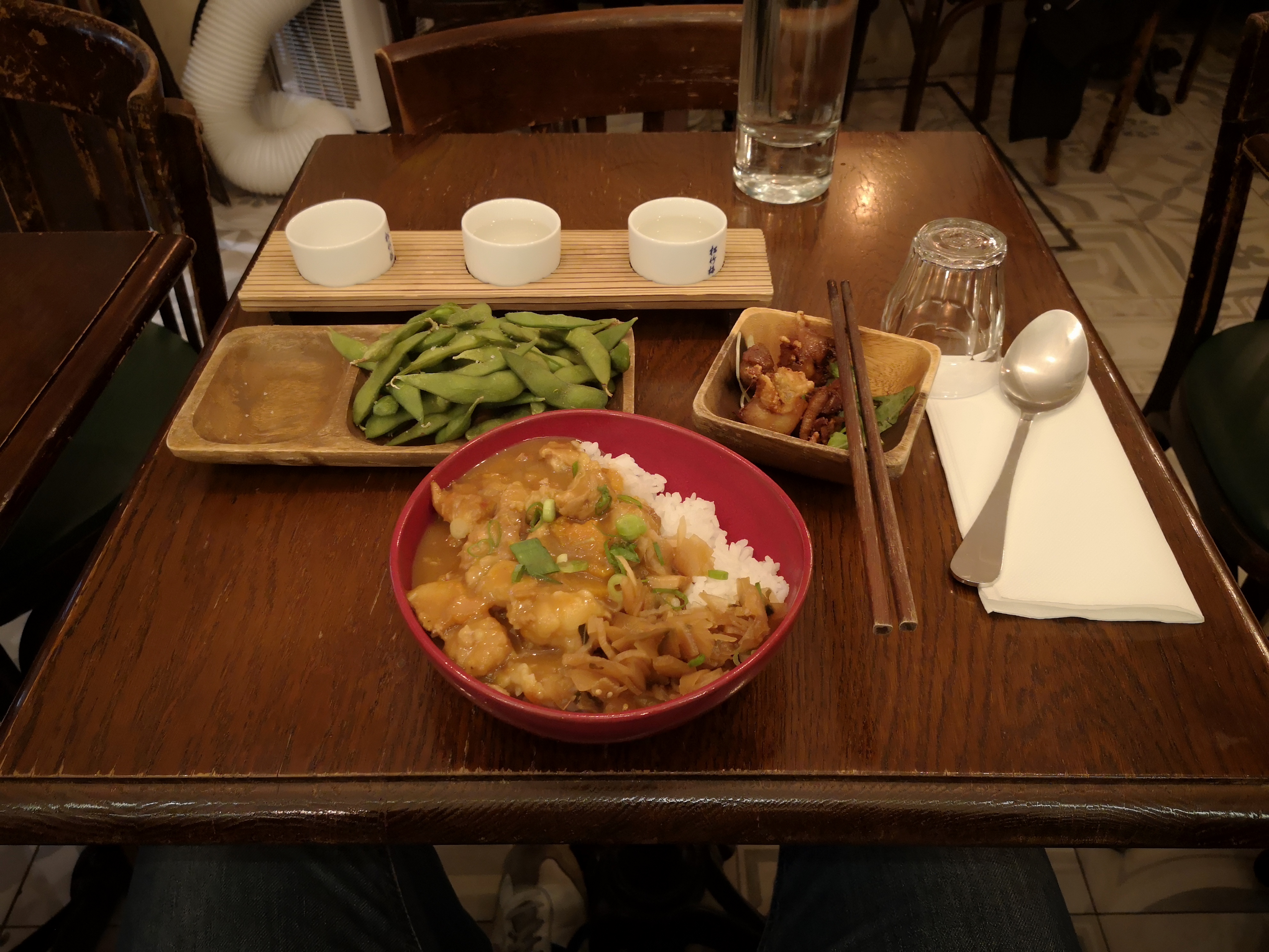 Street food japonais donc pas de sushis. Mais une cuisine simple et créative. Excellents produits. Merveilleux desserts. Sélection de sakés. Le lieu est sans chi-chi, un vieux bar-tabac. Réservation recommandée.