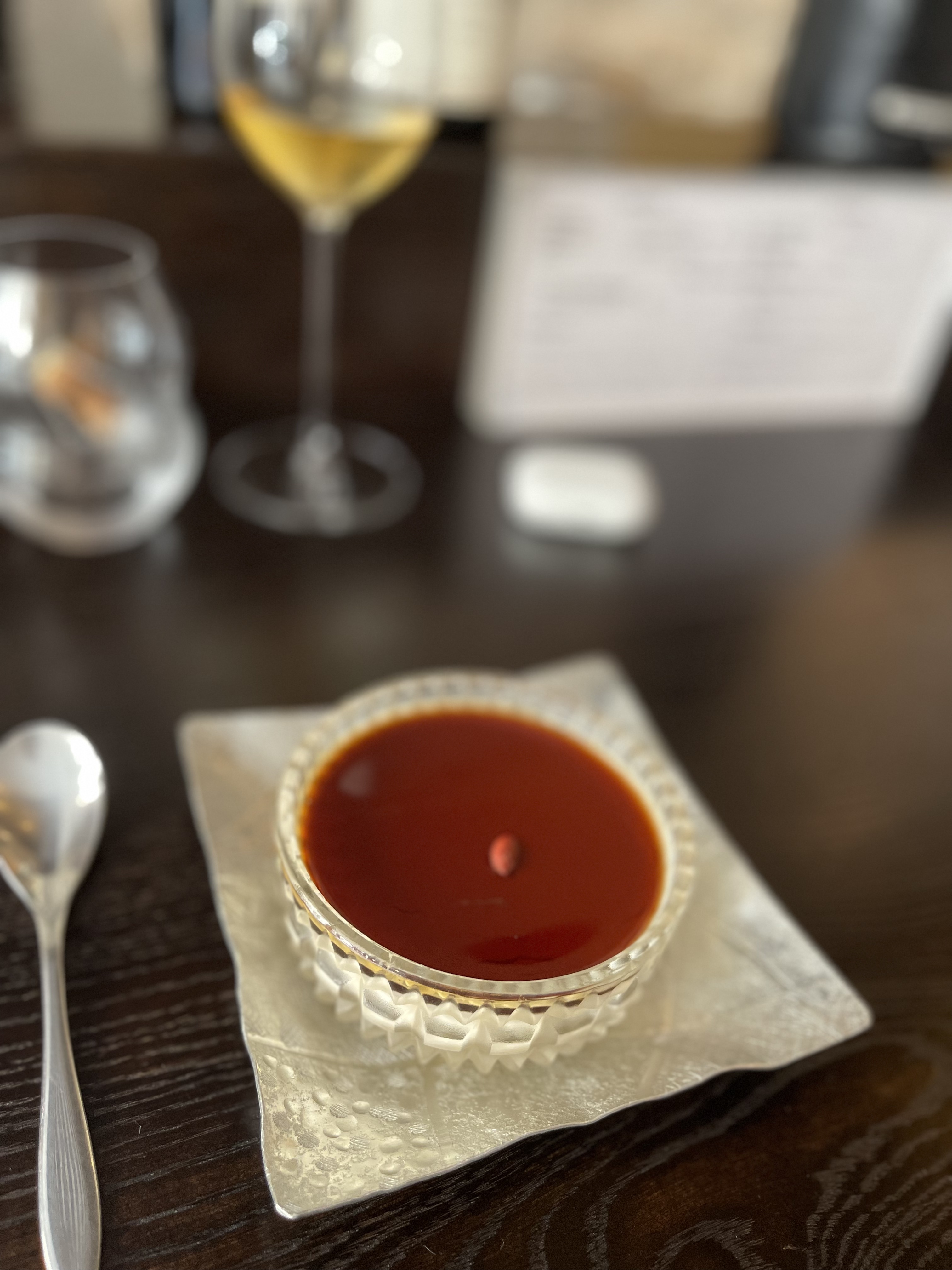 Je suis venu ici plusieurs fois et j'ai toujours eu une expérience formidable car ils proposent une carte des vins exceptionnelle ainsi que de la bonne nourriture. Cette fois, nous étions avec 2 autres amis et avons pris des vins extraordinaires du Coche Dury en rouge au meursault en blanc. Le serveur ne se souciait pas vraiment de nous et ne proposait même pas de digestif à la fin du repas car nous dépensions beaucoup d'argent. En gros, il a dit que tu devais partir maintenant. Aucune reconnaissance ni service, ce qui était triste.